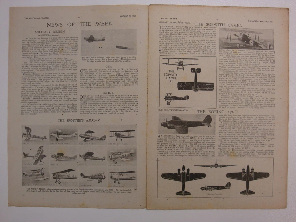Aeroplane Spotter # 35, 1941 (DH Albatross, Sopwith Camel, Blackburn Shark, RAF)