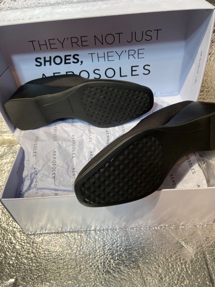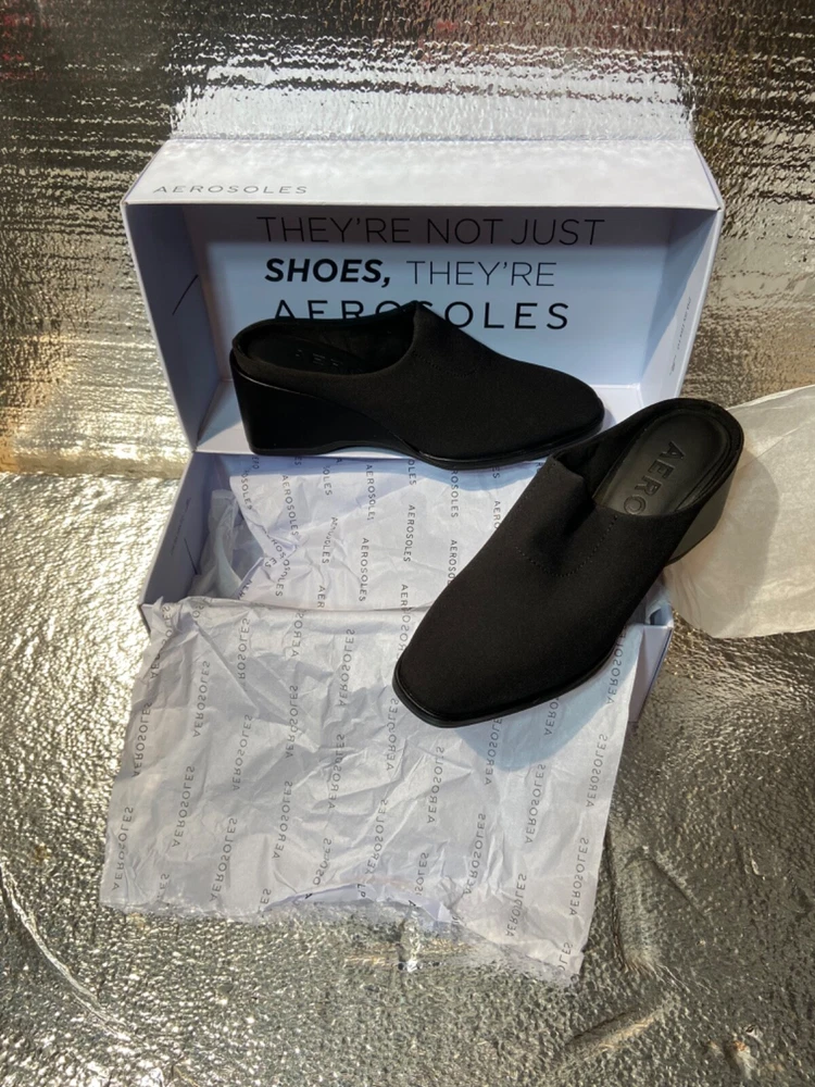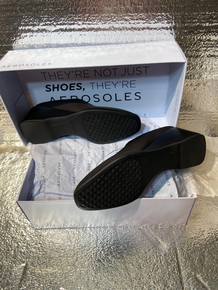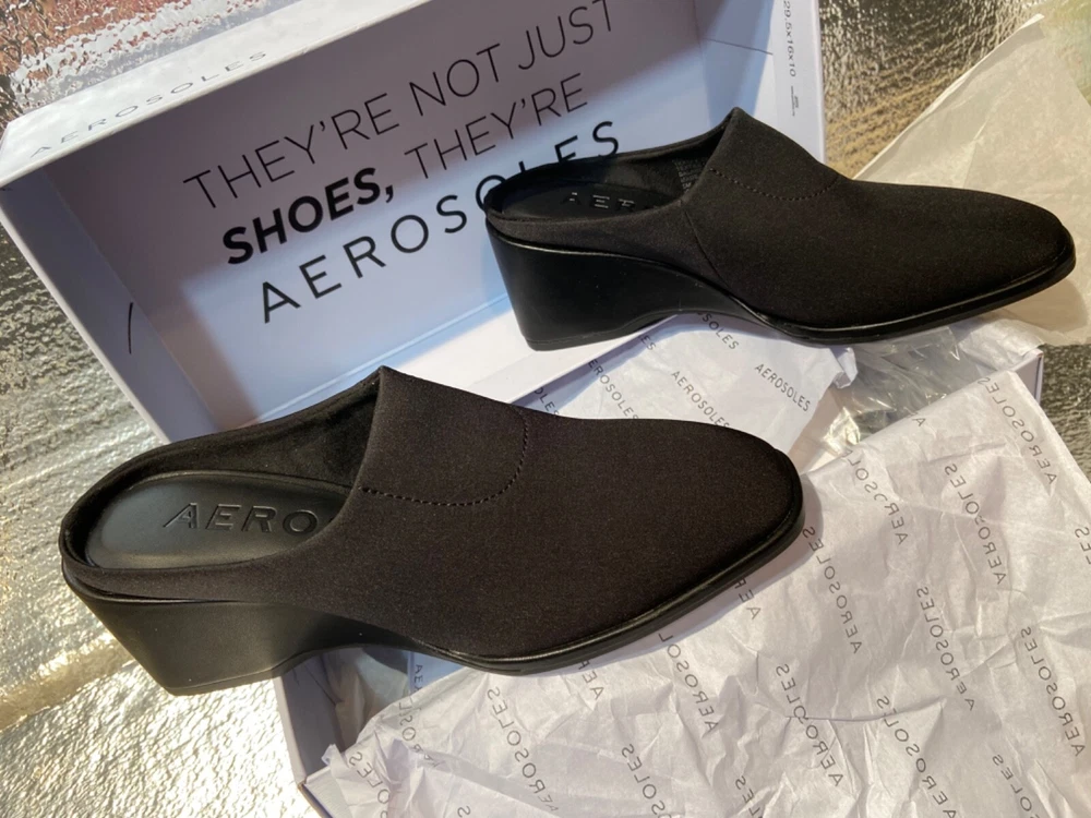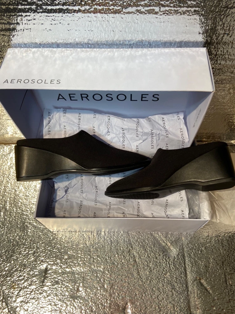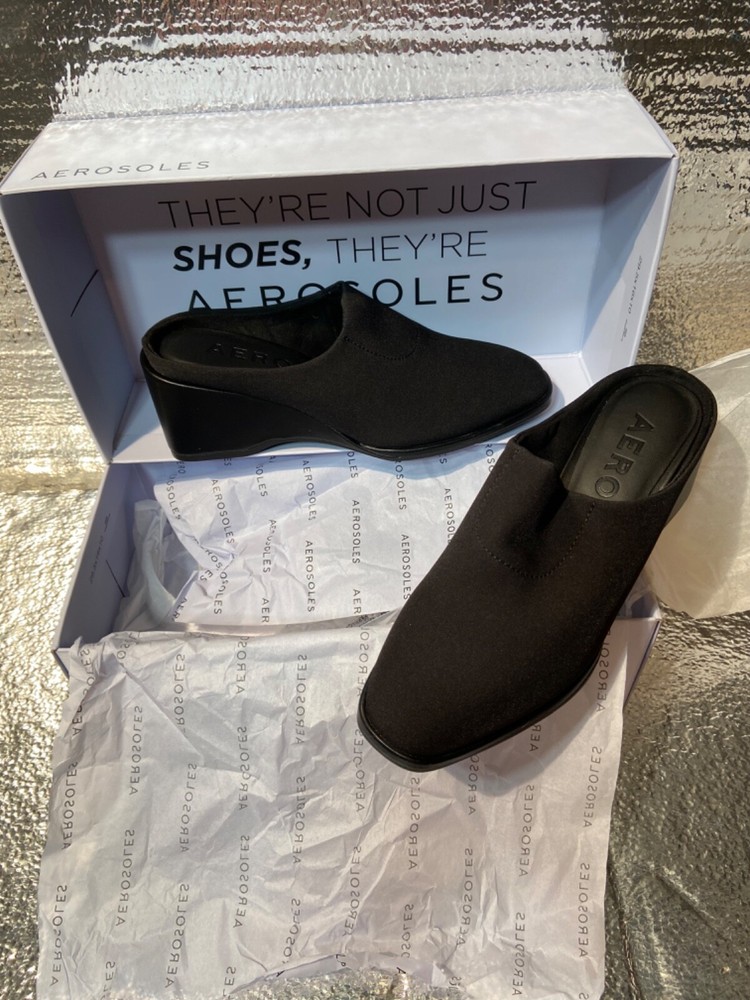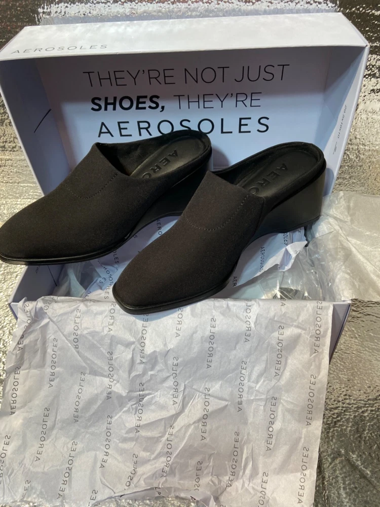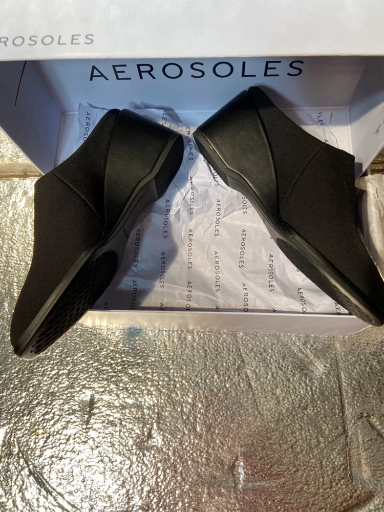 Style: wedge Upper Material: Synthetic Brand: Aerosoles Color: Black Department: Women US Shoe Size: 5m Features: Stretch Type: Heel