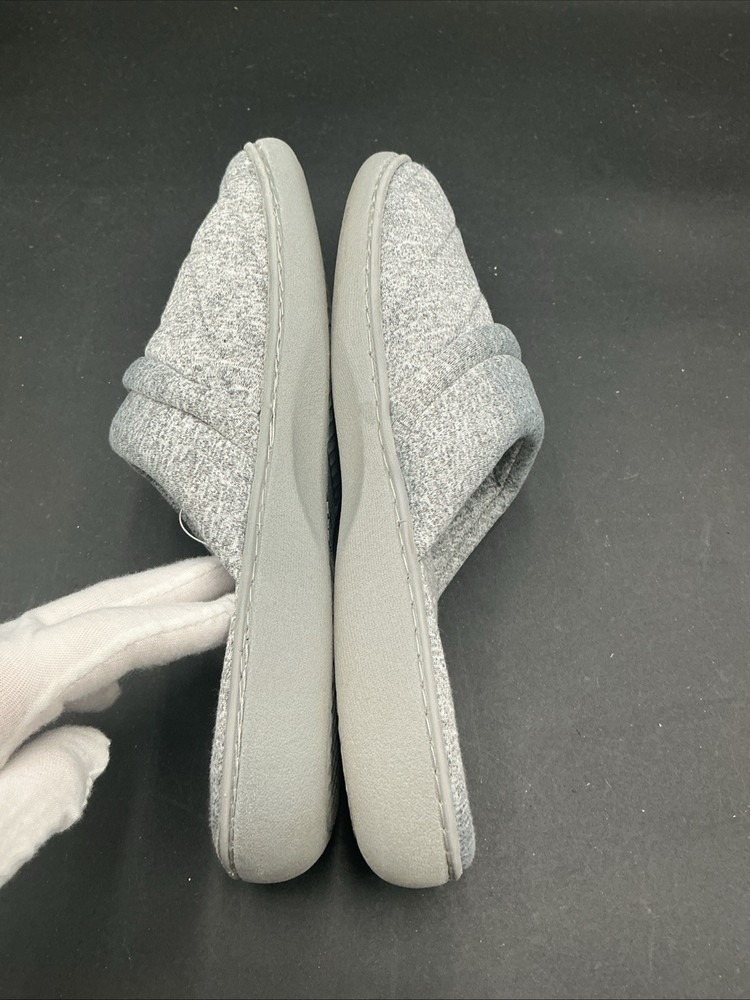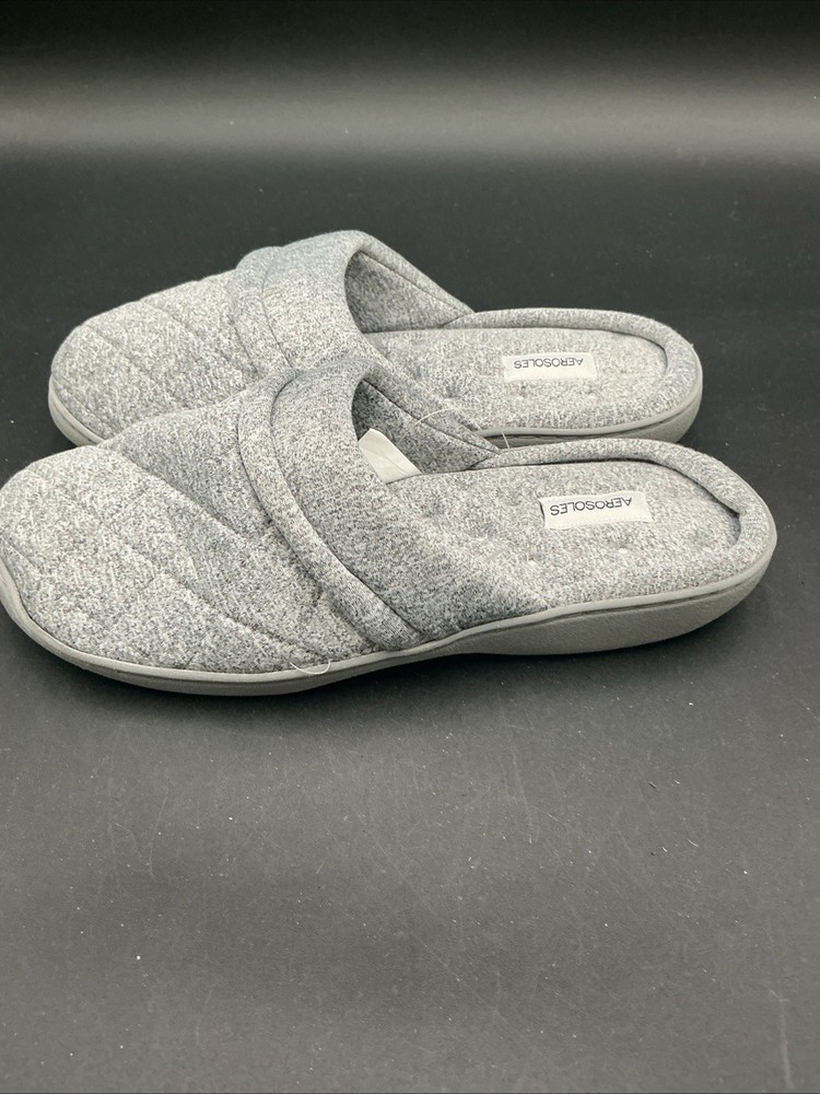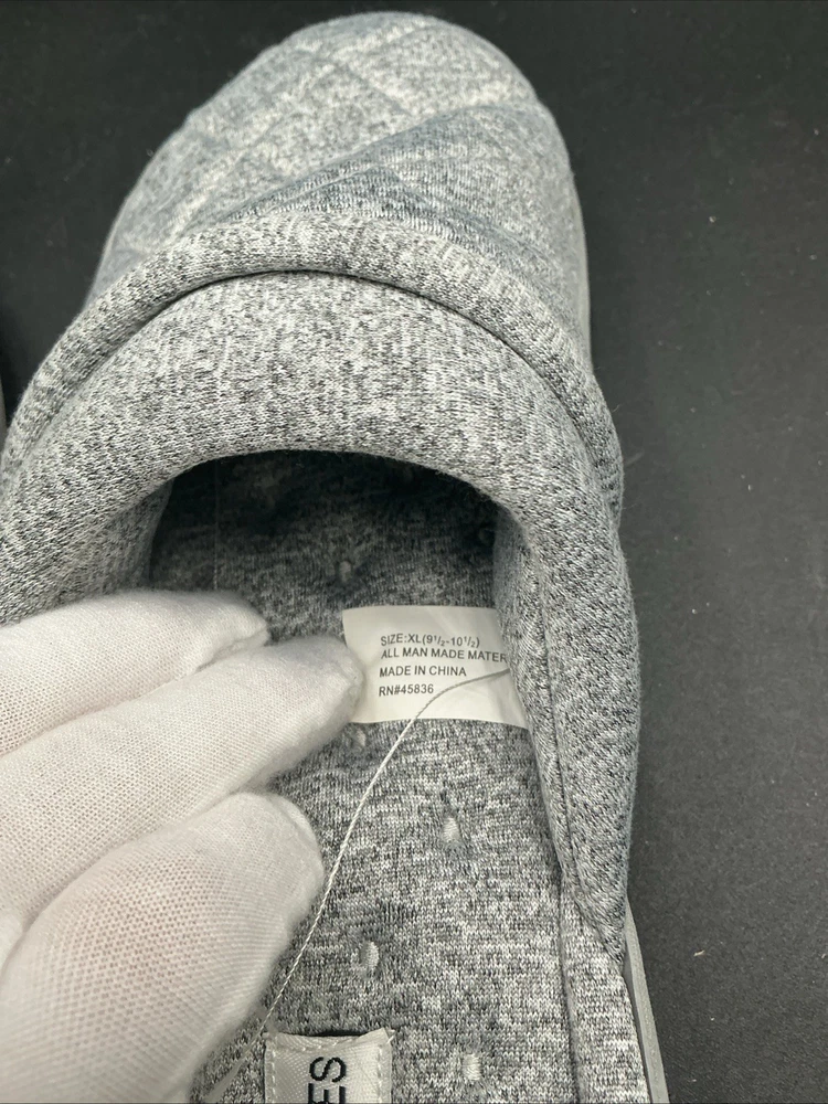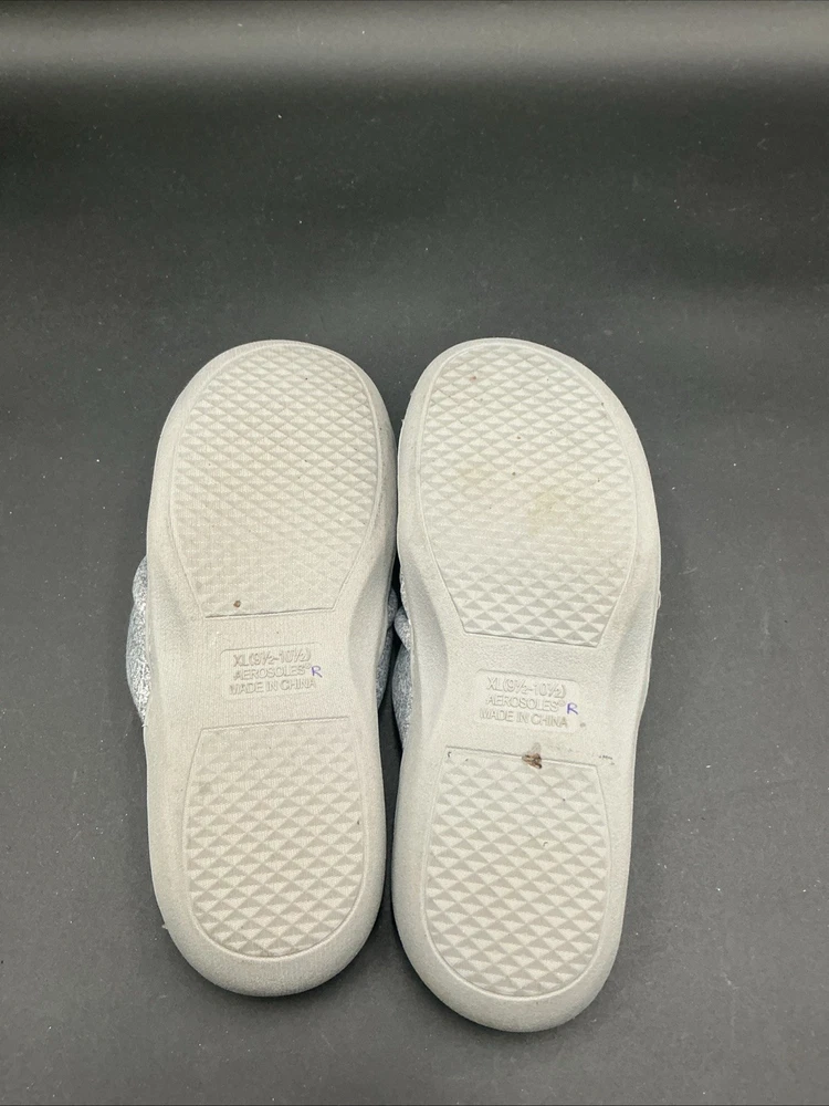 The Aerosoles Gray Quilted Slip-On Slippers in size XL (9.5-10.5) are a comfortable and stylish option for women looking for a slipper to relax in. The slip-on style and quilted accents add a touch of elegance, while the fabric upper material ensures softness and durability. Made in China by the brand Aerosoles, these slippers are designed for both comfort and style, perfect for lounging around the house or running quick errands. Size xl