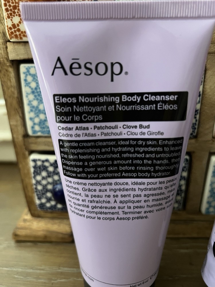 A Eleos aromatic body cleanser A gentle, hydrating cleanser with a comforting cream texture containing a blend of botanicals renowned for their purifying properties. Ideal for dry or dehydrated skin. Aroma Herbaceous, woody, spicy Skin feel Cleansed, soft, supple Key ingredients Cedar Atlas, Patchouli, Clove Bud Eleos Aromatique Hand Balm An intensely hydrating balm enriched with skin-softening botanical butters and oils. Ideal for weather-wearied, dry or distressed hands. Suited to Suitable for most skin types and ideal for dry skin Skin feel Nourished, soft and supple with a greaseless finish Key ingredients Cedar Atlas, Patchouli, Clove Bud