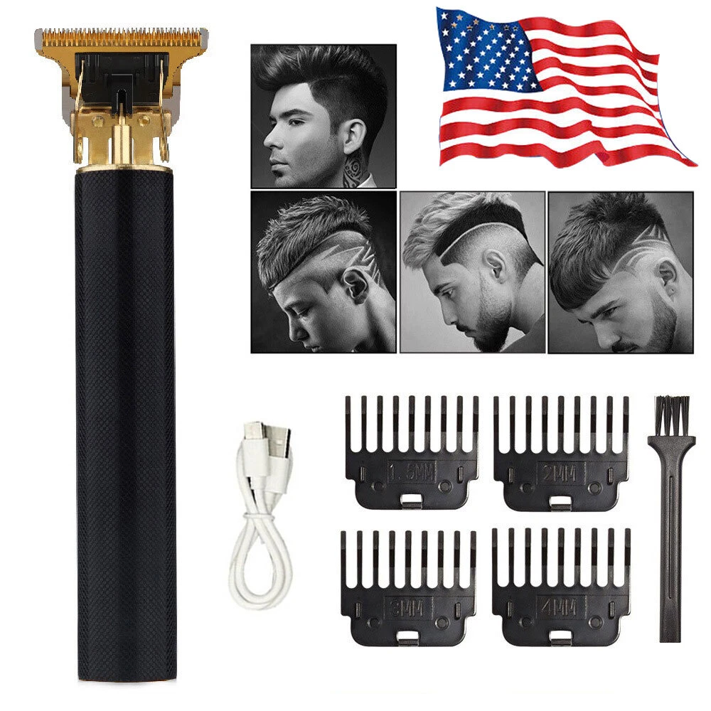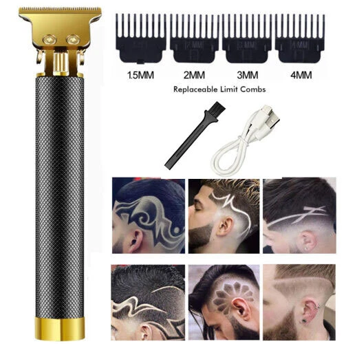 Professional Hair Clippers Trimmer Cutting Beard Cordless Barber Shaving Machine Features: T BLADE TRIMMER DESIGN: The T blade is made of carbon steel and ceramic, it's very sharp to cut your hair off without hurting your skin. USB CHARGING: The cordless design is convenient for you to carry with during your travel or for home use. ERGONOMIC METAL DESIGN: Slim body design makes it easy to handle with ,the all metal body design makes it sturdy and durable to use compared with traditional plastic hair clippers. WIDE APPLICATION: Used for cutting your hair and removing your beard, the hair under your arms , your hands, legs, or your body hairs. Perfect for men women children or elderly. Note: Due to manual measurement, there will be an error of +/- 5 mm. Due to the shooting angle and the display, the goods may have a color difference from the picture. Package Included: 1 x Hair clipper 1 x USB charging cable 1 x Cleaning brush 1 x Manual 4 x Limit combs