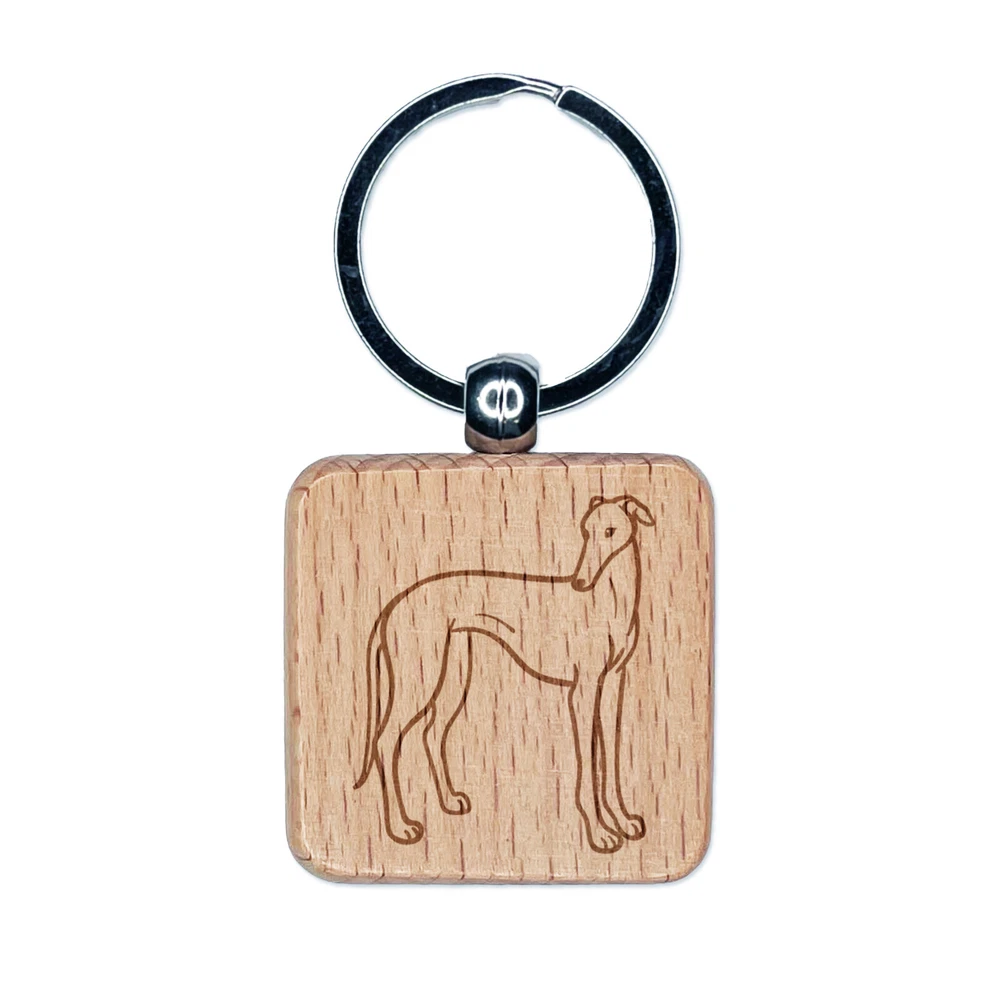 Affectionate Greyhound Pet Dog Engraved Wood Square Keychain Tag Charm