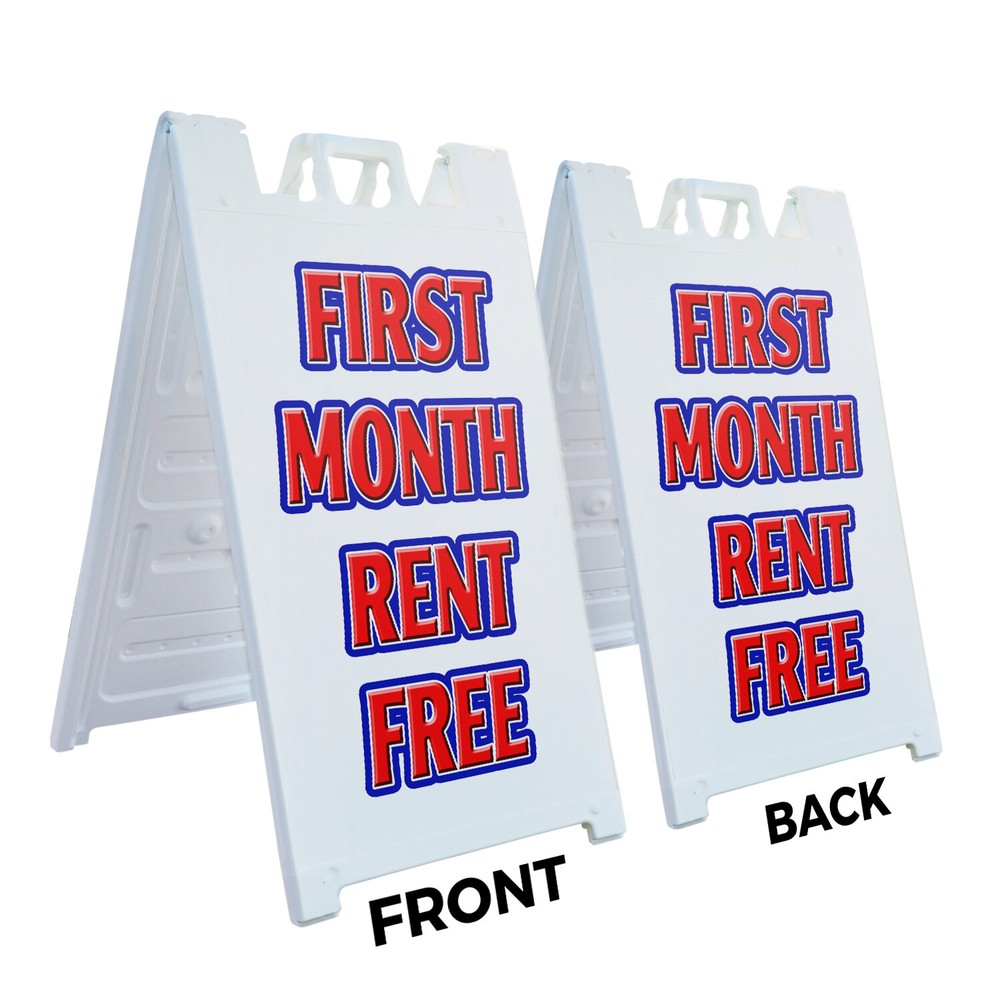 A-frame Sidewalk First Month Rent Free 24" x 36" Double Sided A-Frame Sidewalk Sign, Includes 2 Plastic Inserts | Foldable Portable White Signicade Sandwich Board Signs Universal 2 eBay Template by Finest Design Vinyl Banners Aluminum Signs Safety Signs Yard Signs Designer Aluminum Signs Novelty Signs Vinyl Banners Aluminum Signs Safety Signs Yard Signs Designer Aluminum Signs Novelty Signs Description A-frame Sidewalk First Month Rent Free 24" x 36" Double Sided A-Frame Sidewalk S PRODUCT DESCRIPTION: This listing has 2 variations. The different PRODUCT DESCRIPTIONS are listed below: Deluxe A-Frame Signs with (2) Plastic Signs (NAME) Portable Heavy-Duty A-Frame (2) 24” x 36” 4mm Corrugated Plastic Signs DOUBLE-SIDED - Display signs on both sides for maximize exposure CHANGE YOUR MESSAGE – Swap sign inserts and change your message PORTABLE AND STORABLE - Sign frame easily folds down for convenient transport and storage Heavy-Duty - Portable - Reusable - Weather Resistant Our Signicade deluxe A-Frame comes with 2 corrugated plastic sign inserts. The sign graphics are adhered to the frame using Velcro which is included with the deluxe A-Frame package. Order multiple signs and change the message in just a few minutes as often as you need! Just search for SignMission 24” x 36” sign inserts. (2) 4mm Corrugated Plastic Signs Self-Adhesive Velcro to Attached Signs White Heavy-Duty Frame 18 lbs. + 10 lbs. if Sand/Water Added 24” x 36” Removable Sign Graphics Indoor / Outdoor Use Double-Sided Deluxe A-Frame Signs with (2) Installed Vinyl Decals (NAME) Portable Heavy-Duty A-Frame (2) 24” x 36” Installed Vinyl Decals DOUBLE-SIDED - Display signs on both sides for maximize exposure CHANGE YOUR MESSAGE – Swap sign inserts and change your message PORTABLE AND STORABLE - Sign frame easily folds down for convenient transport and storage Heavy-Duty - Portable - Reusable - Weather Resistant Our Signicade deluxe A-Frame comes with 2 installed vinyl decals. Order multiple signs and change the message in just a few minutes as often as you need! Just search for SignMission 24” x 36” sign inserts. (2) Installed Vinyl Decals White Heavy-Duty Frame 18 lbs. + 10 lbs. if Sand/Water Added Indoor / Outdoor Use Double-Sided