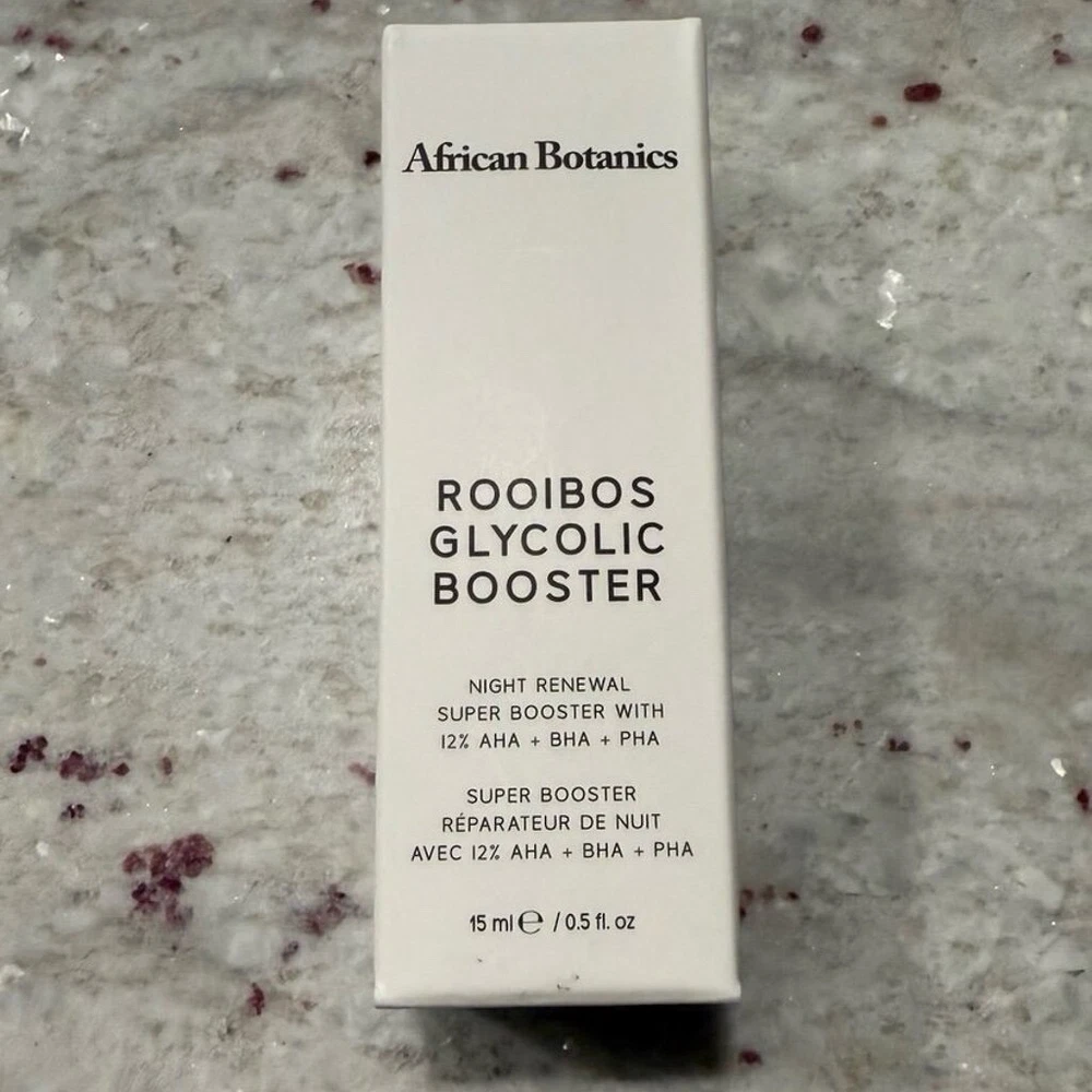 African Botanics Rooibos Glycolic Booster 15 ml/ 0.5 oz. African botanics rooibos glycolic booster , 12% aha bha pha Retails at Saks Fifth Avenue for $120 . New not used This multi-corrective, concentrated resurfacing booster stimulates epidermal growth and repair overnight. The advanced blend of active ingredients enhances existing skincare routines to promote cell renewal, fight glycation and increase collagen and elastin productionClean beauty , green beauty , boxwalla, vintners daughter, Ranavat, lilfox, laurel, May lindstorm, beauty heroes, live botanical, twelve, Sephora , ulta, tatcha, drunk elephant, lamer