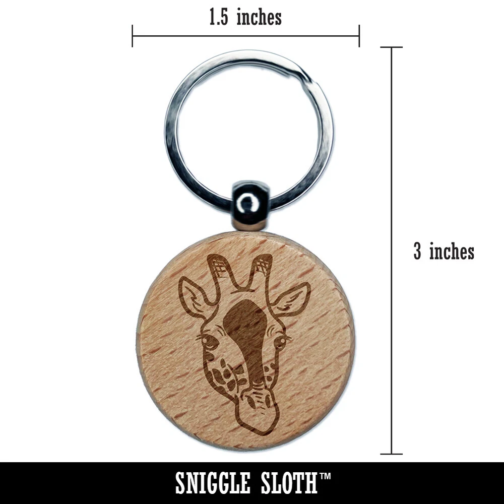 African Giraffe Head Engraved Wood Round Keychain Tag Charm