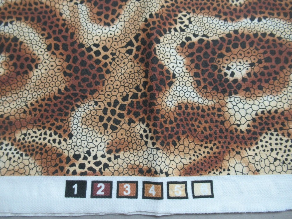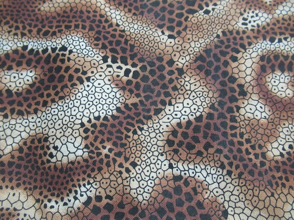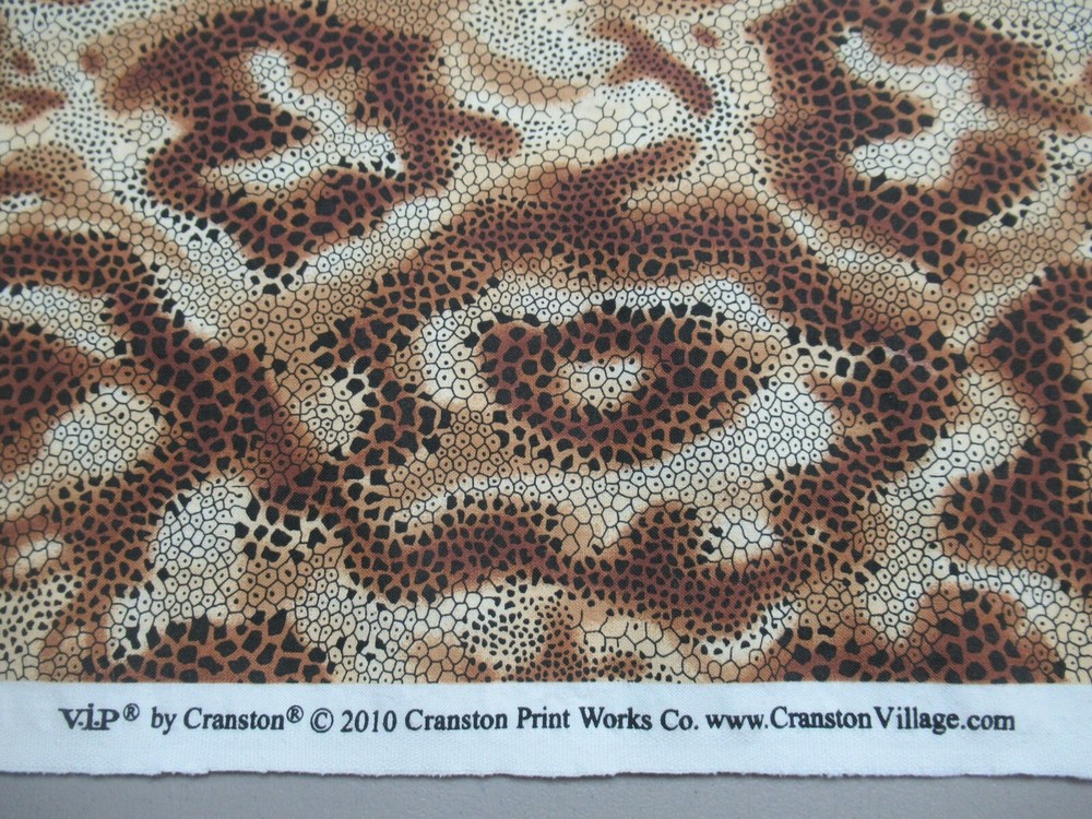 African Jungle Leopard Snakes V.I.P. by Cranston 2010 Cranston Print Works Co. Cotton Fabric Multicolor (The colors are shades of "Black, Brown & Tan". My photos look too white...amateur photographer!) Vintage 35" X 44" W NEW (I WILL COMBINE ORDERS AND "REFUND" THE DIFFERENCE IN SHIPPING!)