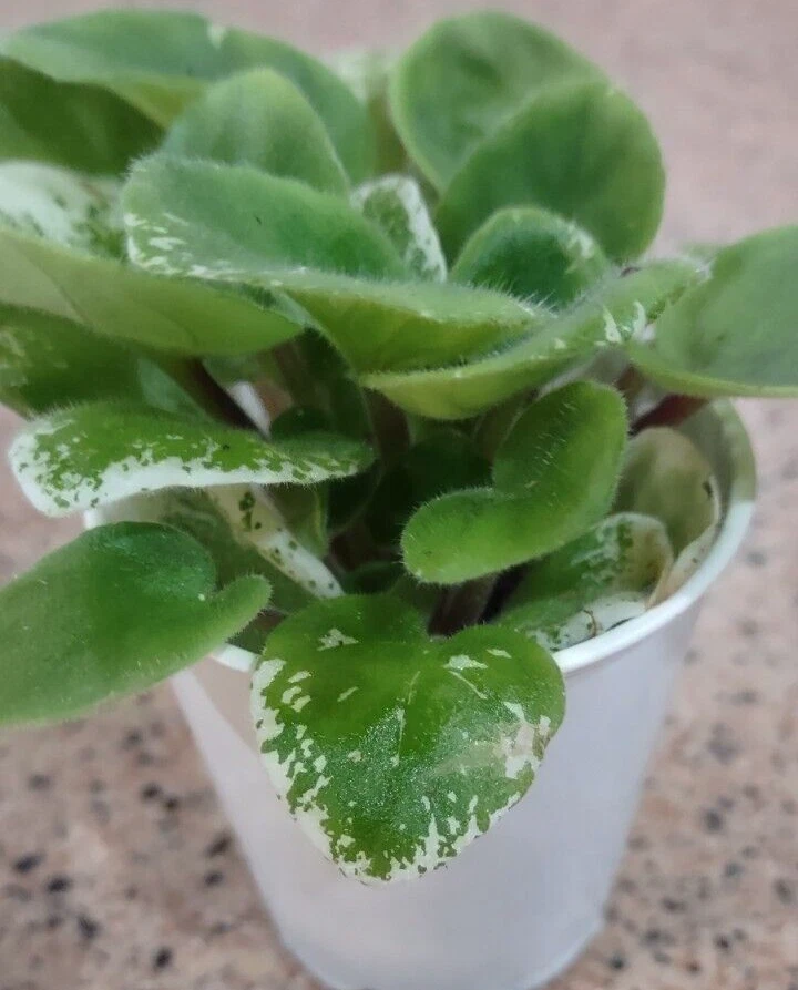 AV MURKA (AB-Mypka) (Fialkovod) Semidouble white pansy/fuschia to light lavender eye and on upper petals. Variegated light green and white. SEMI-MINIATURE I am a collector and hobby grower of African Violets. All plants are grown from leaves of my own plants using the best soil and additives. You are purchasing a LEAF POT which is a newly sprouted or very early propagated plant in a 2oz or 3oz cup. I have started the plant for you from a leaf under MY growing conditions. Your conditions will probably differ from mine. The tiny plant needs time to mature. No repotting, the plant will not survive. Very, very light moisture. If you are new to growing violets, I strongly urge you to find information on your specific variety from the AVSA website or from hundreds of videos available. The plant you will receive is the one in the picture (in the cup). When available, I will include a picture of my stock plant in bloom to give a better idea of bloom and leaf size, shape and color. This is NOT the plant you receive. The Leaf Pots are not in bud or in bloom. SHIPPING : Shipping is a flat fee of $12.00. All plants are shipped via USPS Priority Mail, using fiberglass insulation. ***** It is YOUR responsibility to monitor your weather. Need me to hold an order for a few days? Send a message. My plants are very carefully packed for shipping. Occasionally, there may be spilled soil or a broken leaf. Broken leaf? Snip the very edge of the stem and put it back in the soil. You will have a new plant in no time! This is not considered damage. If you receive a box that has been damaged during shipment, please message me with pictures UPON RECEIPT. Most issues can be resolved through good communication. Shipping is to the US only. Your tracking number indicates your delivery date. You will also receive emails updating the exact delivery date. You are responsible to ensure the box does not sit out in hot or cold temperatures. The plants will cook or freeze in extreme temperatures. This "damage" is your responsibility and is not refundable. Feel free to message me with any questions prior to purchase. Responses to inquiries are usually within one day. I am happy to share violet chat! THANK YOU AND ENJOY GROWING YOUR PLANTS!