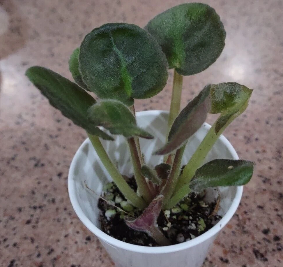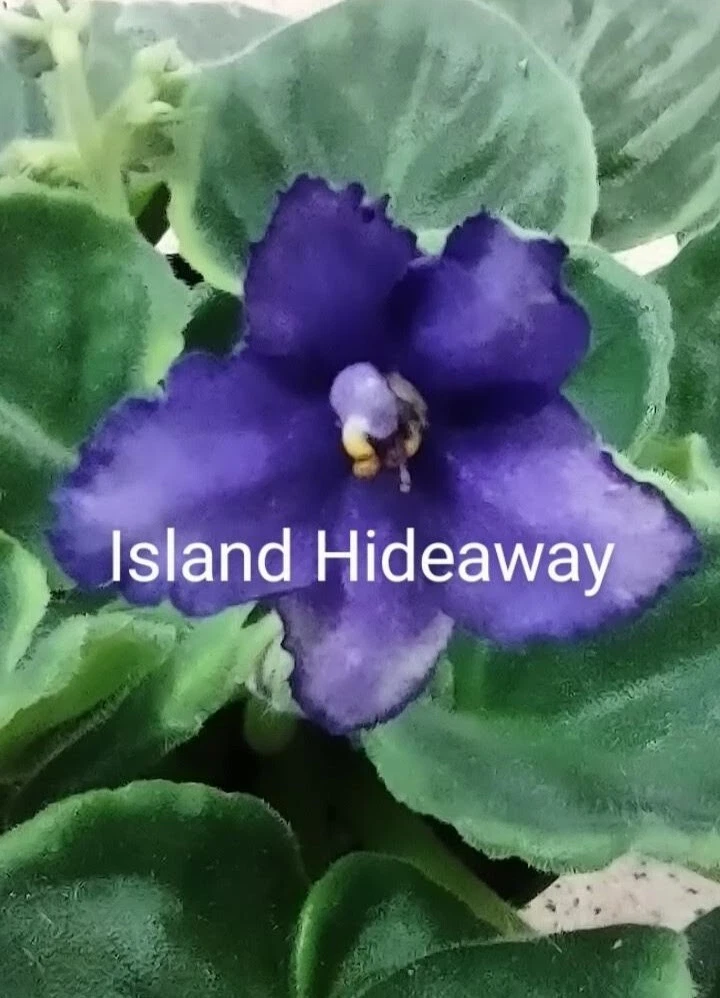 ISLAND HIDEAWAY (8518) 11/9/1996 (S. Sorano) Semidouble white ruffled pansy/blue-purple blushed eye, edge. Medium green, plain. STANDARD I am a collector and hobby grower of African Violets. All plants are grown from leaves of my own plants using the best soil and additives. You are purchasing a LEAF POT which is a newly sprouted or very early propogated plant in a 2oz or 3oz cup. I have started the plant for you from a leaf under MY growing conditions. Your conditions will probably differ from mine. The tiny plant needs time to mature. No repotting, the plant will not survive. Very, very light moisture. If you are new to growing violets, I strongly urge you to find information on your specific variety from the AVSA website or from hundreds of videos available. The plant you will receive is the one in the picture (in the cup). When available, I will include a picture of my stock plant in bloom to give a better idea of bloom and leaf size, shape and color. This is NOT the plant you receive. The Leaf Pots are not in bud or in bloom. SHIPPING : Shipping is a flat fee of $12.00. All plants are shipped via USPS Priority Mail, using fiberglass insulation. ***** It is YOUR responsibility to monitor your weather. Need me to hold an order for a few days? Send a message. My plants are very carefully packed for shipping. Occasionally, there may be spilled soil or a broken leaf. Broken leaf? Snip the very edge of the stem and put it back in the soil. You will have a new plant in no time! This is not considered damage. If you receive a box that has been damaged during shipment, please message me with pictures UPON RECEIPT. Most issues can be resolved through good communication. Shipping is to the US only. Your tracking number indicates your delivery date. You will also receive emails updating the exact delivery date. You are responsible to ensure the box does not sit out in hot or cold temperatures. The plants will cook or freeze in extreme temperatures. This "damage" is your responsibility and is not refundable. Feel free to message me with any questions prior to purchase. Responses to inquiries are usually within one day. I am happy to share violet chat! THANK YOU AND ENJOY GROWING YOUR PLANTS!
