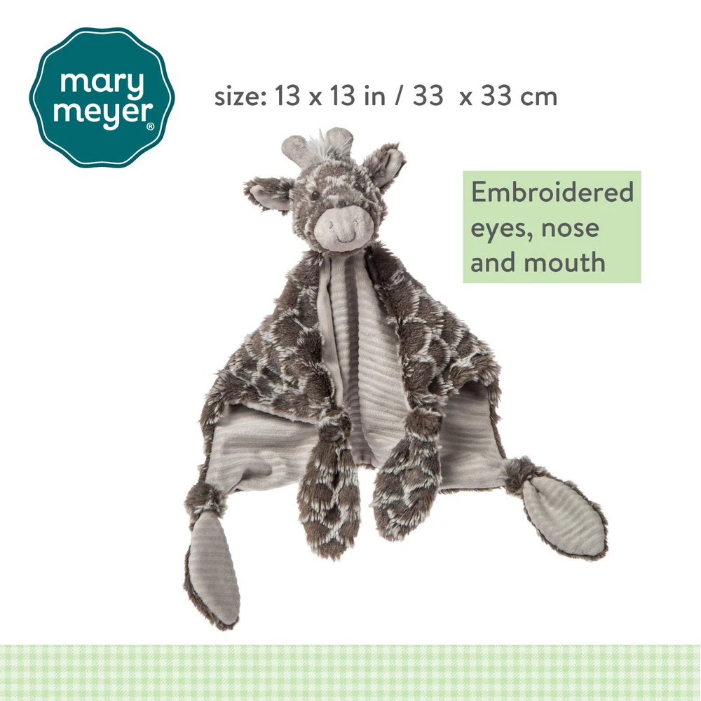 Afrique Giraffe Character Blanket features a sweet-faced giraffe attached to a 13 x 13-inch square blanket. The neutral colors enhance the uniquely soft fabric and grey ribbed lining. Each corner is tied with a fabric knot, giving little ones something easy to grab and hold onto. Machine washable; gentle cycle and air dry recommended. For almost 80 years has been making quality stuffed toys with the extra touches that show we care. The heart of our company is a family of people dedicated to producing beautiful, safe, educational toys and collectibles from the best materials and finest designs. At , we continually strive to design extraordinary products of outstanding quality, all the while keeping an eye on and value. Afrique Giraffe Character Blanket features a toy with an attached blanket 13 x 13-Inches; each corner tied with a fabric knot, features embroidered face details Features ultra-soft grey patterned fabric on top; lined with grey, soft ribbed fabric Machine washable in mesh laundry bag on gentle cycle, air dry products are all made to strict quality standards to meet or exceed us toy safety requirements