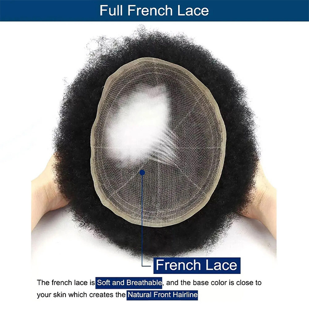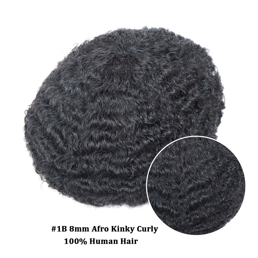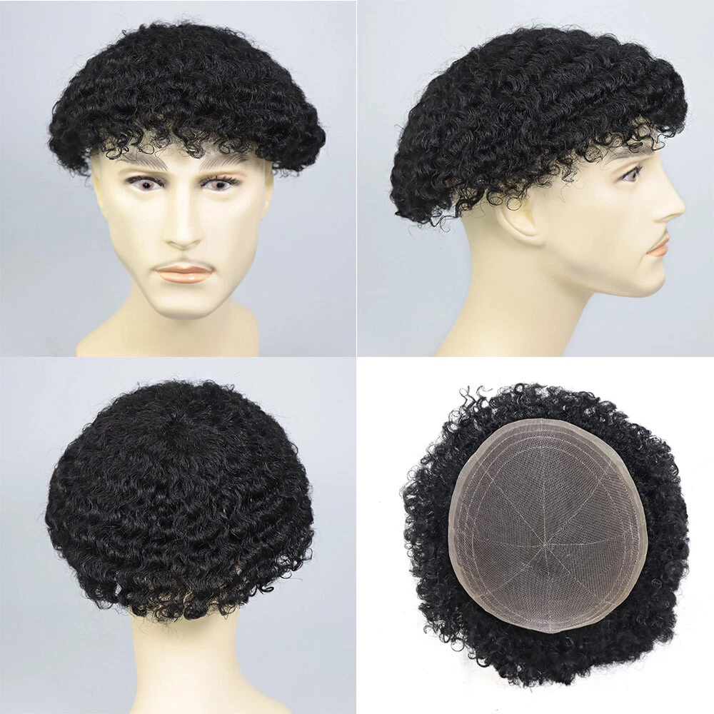 Afro Curly Human Hair Mens Toupee Hairpiece African Full Lace PU Hair System Hair Grade Remy Hair Virgin Hair Yes Weight 75g Toupee Texture 4mm/6mm/8mm Toupee Design Right, Left Toupee Density 130% Toupee Base Full Lace Hair Length 6inch Human Hair Toupee Men Type 100% Human Virgin Hair Toupee Base size 8x10 Base Material Swiss Lace Hair color #1B Hair type European Hair Toupee