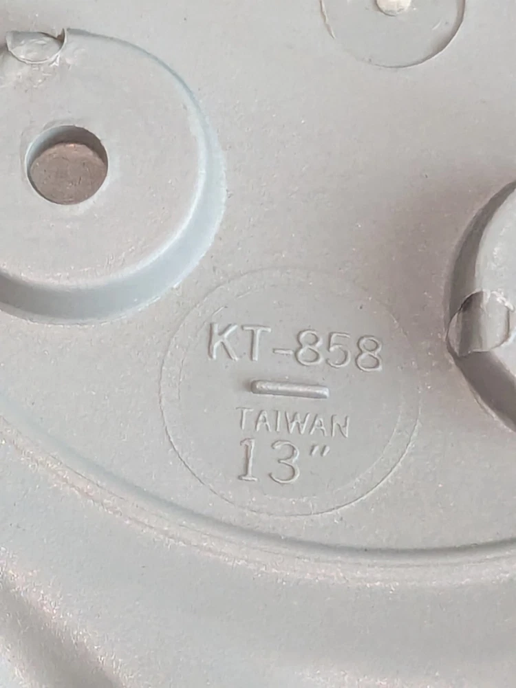 This aftermarket hubcap with the number KT-858 and patent 86218497 is a universal fit (?) for possibly multiple unknown vehicles. It is made of plastic with a metallic finish and features easy installation and car wash safety. I believe the hubcap is compatible with a 13-inch wheel diameter and can be placed on the upper, lower, rear, left, front, or right of the vehicle. I COULD BE WRONG . I mention 13" because the wire on the backside is approximately 12" in diameter. Please understand this fact. THERE ARE NO RETURNS . Also, I am assuming that this hubcap will work on several different makes / models. I do not know which ones. It is important to note that this hubcap may not fit all vehicles and may require modification, per statements on the backside, photos 9, 10 & 11, for proper installation. The photos are the description and they show the beautiful condition. The only mark I see on this hubcap tiny dings (?), shown in photos number 6 & 7. Otherwise gorgeous, IN MY OPINION . I don't think I am missing anything. Please use the zoom feature and ask any questions you may have.