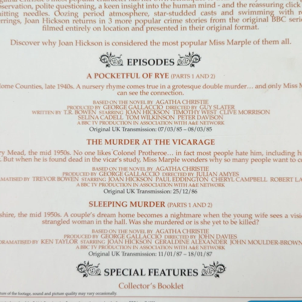 Get ready to solve thrilling mysteries with Agatha Christie's Miss Marple DVD BBC Collection Two. This standard edition collector's box set includes all episodes from the second season of the acclaimed TV series, starring the legendary Joan Hickson as the sharp-witted detective. With a very good condition and widescreen format, the DVD is in region 4 and suitable for Australia, New Zealand, and Latin America. Immerse yourself in the world of British mystery and enjoy the subtitled episodes in English and Latin. This DVD features a diverse range of genres, including psychological, action, adventure, horror, and thriller & mystery. Perfect for fans of Agatha Christie's Miss Marple, this DVD set is a must-have for any collector of classic crime dramas. Hello Ebay Family! We are a small family-run store from Melbourne Australia! we have a wide selection of items available for purchase, including clothing, DVDs and bric a-brac. We list new items daily and have thousands of items for you to choose from. Postage: All items are sent tracked through Australia Post, and tracking information will be sent to you as soon as possible. We are always happy to combine postage on all items in our store, so you can either add multiple items to your cart or send/accept offers and the price of postage should combine automatically for you! Offers: All reasonable ‘best offers’ will be considered, unreasonably low offers will respectfully be declined. We kindly ask you to recognise the care, attention and time invested in every aspect of our service when making an offer. Your understanding and respect for these efforts go a long way in supporting small businesses like ours. Clothing: All clothing is washed and packed neatly, sometimes, this doesn't always remove markings, stains and hair. Anything major, or an issue will be named. All measurements are taken with the item laid flat. Please compare these to your favourite similar garment to ensure a good fit. The tag size may differ from the measurements due to washing or drying. Returns: If you encounter any issues with your order (our mistake) please let us know and we will organize a return for you. We do our best to make note of any faults/flaws with all of our items, but we are still only human. If we happen to overlook something, don’t hesitate to get in touch with us first before leaving negative feedback so we can reach an amicable solution. If you have any questions or concerns, feel free to message us, and we'll do our best to help. We are a small family-run store and we are here to help YOU ! we don’t bite ! Thank you for stopping by!