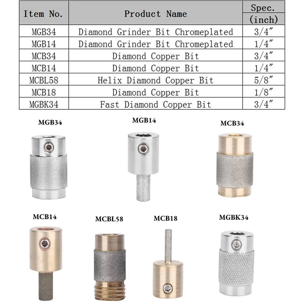Agatige Glass Grinder Bits, 3/4" Stained Glass Diamond Grinder Bit Head Tools Metal Core Stained Glass Grinder Bits & Diamond Grinder Bit Head Tools for Stained Glass, MGBK34, 31.9x17.8mm Specification: Optional Model: MGB34, MGB14, MCB34, MCB14, MCBL58, MCB18, MGBK34 Material: Metal Size:31.9*17.8mm Package List: 1 x Diamond Grinder Bit MULTI-SIZE TO CHOOSE: MGBK34, MCB14, MGB14, MCB18, MCB34, MGB34, MCBL58. Different models may have different functions, and you can choose according to your needs, matching allen wrench, different sizes and complete combination to fully meet your needs HIGH WORKING EFFICIENCY: These diamond drill bits make the glass grinding faster and help the work to be completed more efficiently, which are really practical and necessary tools in your toolbox, ideal for home use, and a great choice for crafting enthusiasts and designers DIAMOND MATERIAL: Diamond grinder bit is made of matal material, and the surface is plated with diamonds, the bonding surface is double-plated to ensure no peeling, high strength, and long life, allowing you to use them with confidence CHROME PLATING: Stained ceramic glass abrasive tool adopts a standard frosted design, Diamond drill bits are hardened by chrome plating, improve performance, strength and durability, and very practical WIDELY USE: Diamond drill bits are widely used to shape all types of glass, ceramic tiles, colored glass, stone and similar materials,suitable for all kinds of glass grinding machines, and the quality is great and work well for glass grinders of most brands Shipping from the USA All of our products are shipped from the USA, ensuring quick delivery to your destination. Payment We offer the following payment methods: PayPal, credit card, bank transfer, and eBay's secure payment system. Free Shipping & Free Returns Shipping within the USA is FREE. Additionally, any return is absolutely free for you. Risk-Free Purchase You have the option to return an item within 30 days without any justification. We cover the return shipping costs! Fast Shipping We ship immediately upon receipt of payment. Generally, the package is delivered within 2-3 days in the USA. If it takes longer, we will contact you. Quality and Costs Made in Europe, USA, China No customs fees or additional charges Total satisfaction guarantee Invoice with declared VAT available upon request in .pdf format Feedback Your feedback is very important to us. After you pay for your purchase, you will automatically receive positive feedback from us.