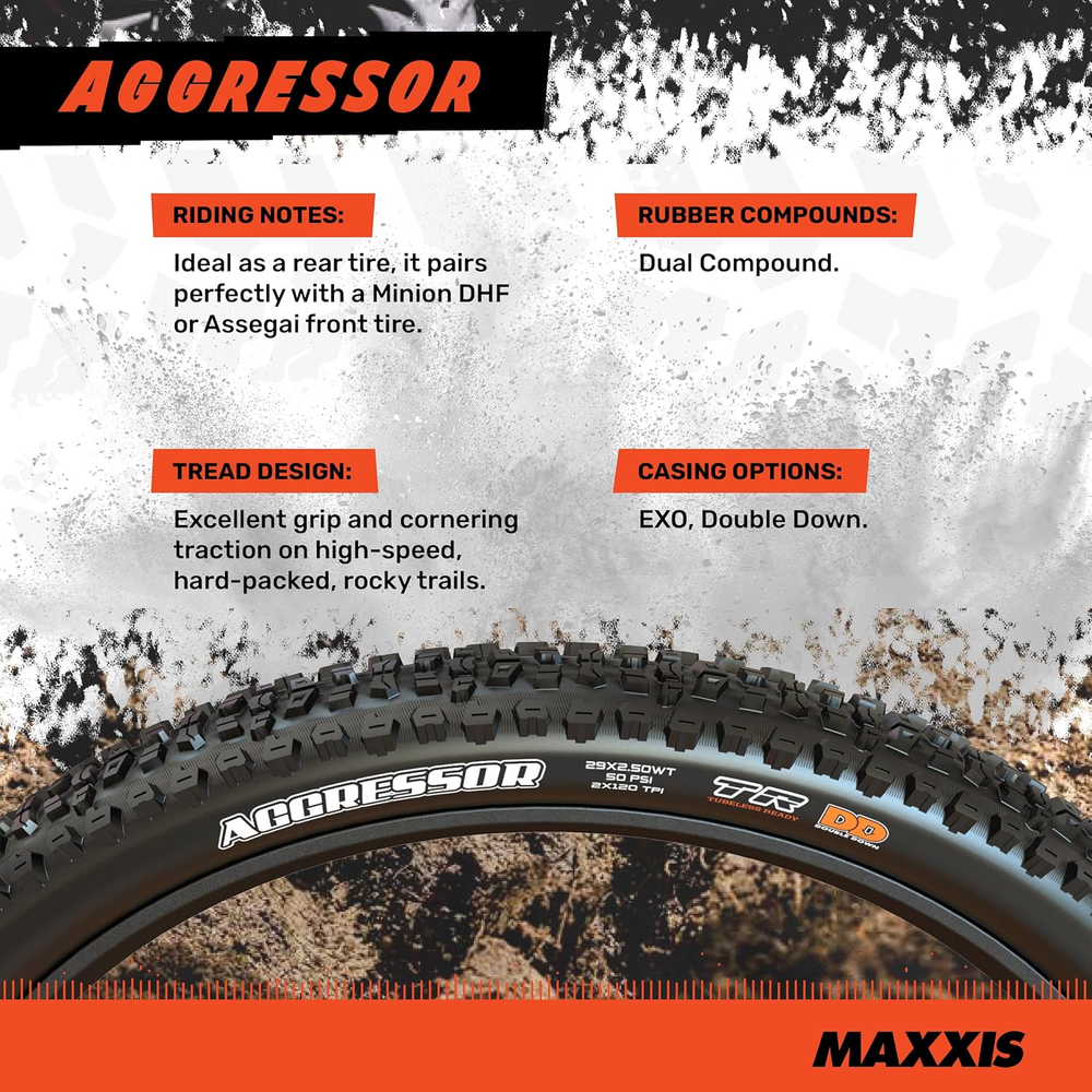 Store New Arrivals Add to Favorite View Feedback Contact Aggressor - Dual Compound - 29, 27.5, 26 - EXO, DD - E25 Rating, Tubeless | Primarily Intended for Rear Wheel Use Description Warranty Description warrants to the original retail purchaser of every new brand bicycle tire that the tire will be free from defect in material and workmanship for up to one year from date of purchase or until there is no serviceable original tread depth (as determined at the reasonable discretion of ) remaining on the Tire, whichever comes first. Exclusions apply. Number of Items 1 Item Width 2.3 Inches Item Weight 0.6 Kilograms Warranty Type Limited Package Weight 0.93 Kilograms Bike Type Mountain Bike Tire Type Tubeless Material Rubber Outer Material rubber Suggested Users unisex-adult Model Name Aero Wedge Strap On Micro Item Package Dimensions L x W x H 13.03 x 8.46 x 4.69 inches Style Aggressor Dual Compound Tensile Strength 60 PSI Sport Type Mountain Racing Grip Type Aggressor Dual Compound Part Number TB91009100 Item Dimensions LxWxH 16.14 x 7.87 x 7.09 inches Color Black Item Diameter 27.5 Inches Global Trade Identification Number 04717784030371 Tread Type Directional Grip Size 2.3 Included Components Aggressor Dual Compound Tire, Tubeless Ready, Black Sidewall, 27.5x2.30 - EXO, E25, TB91009100 Model Year 2018 Size 27.5x2.30 - EXO, E25 MAXXIS AGGRESSOR: The Maxxis Aggressor is designed for high-speed, hard- packed rocky trails. It works especially well as a rear tire paired with a Minion DHF or Assegai in the front. DUAL COMPOUND: Two distinct rubber compounds are used within the tread to offer a balance between rolling resistance and grip. EXO: A cut and abrasion-resistant material added to the sidewalls of many of our gravel and MTB tires. Suitable for use in a wide range of riding applications from gravel to XC to light trail duty. E25: Tires with an E25 rating are suitable for light duty e-bikes with assistance up to a maximum of 16.1 MPH. QUALITY : 1-Year Manufacturer's Product Description ABOUT US We offer the best prices around on high quality products. Our E-store includes media such as books, movies, music and games while offering electronics, toys, sporting apparel, clothing, tools, general home, garden items and more. SHIPPING We are always working hard to ensure your package arrives as soon as possible. Please understand that some factors like weather, high postal traffic, and the performance of shipping companies are outside of our control. We offer free shipping to the lower 48 states and ship within 2 business days of payment, usually sooner. We do not accept P.O. Boxes. Please provide a physical address. For shipping outside of the continental USA, we only use eBay's Global Shipping Program.The item is shipped to KY and then sent to the rest of the world. International customers are responsible for all duties and taxes. Continue to check out in order to calculate costs for shipping the item to your country. Messages regarding eBay's Global Shipping Program MUST be directed at eBay EXCLUSIVELY. RETURNS We offer a 30-Day Return Policy on items which you are not completely satisfied with. You have the option for a full-refund or an exchange of the item. No returns are available on items shipped outside of the USA. PAYMENT We accept PayPal. CONTACT US This page content is yet to come Please ad us to your favorite seller and visit again later Thank You CUSTOMER SATISFACTION We try our very best to make sure every customer is completely satisfied. If there's a problem, message us! We're happy to help. WE ACCEPT Copyright © 2021 AutoDS. | All Rights Reserved