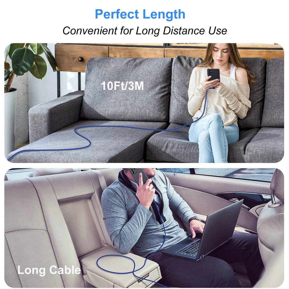 Agtray USB C Cable 10Ft, 4-Pack Long Braided USB-A to USB-C 90 Degree Plug Type C Right Angle Fast Charging Cord Compatible for Samsung Galaxy S23 S22 S21 Note 20 10, Pixel 7 7A (Black Grey Red Blue) ▷【Long Right Angle USB C Cable】- The USB-C 90 degree connector design is convenient to play games or watch videos while charging, reduce bending and prolong the service life of USB C cable. 10 feet extra-long length can let you play phones freely while charging, you can lie on the couch/bed or use in the car. *NOTE: Do NOT fit for thick phone case, allowed thickness of phone case is 0.05 inch. ▷【USB-C Broad Compatibility】- Works with USB-C port devices. Compatible for Samsung Galaxy S23/S22/S21/S20/S10/S9/S8, Galaxy Z Flip 3/Z Fold 3, Note 20/Note 10/Note 9/Note 8, Galaxy A51/A50s/A70/A70s/A71/A80/A90; LG G5/G6/G7/V20/V30/V40/V50, Stylo 4/5; Pixel 7/6/5/4/3/3a/2 XL, Moto Z/Z play/Z2/Z2 play/Z3; Also compatible with iPad Pro/iPad Air 5 4/iPad mini 6, Switch and more USB Type-C tablets/devices. ▷【Fast Charging Type C Cord】- This USB-A to USB-C cable supports safe and high-speed charging at up to 3A/60W max, much faster than normal cables. Data transfer speed of USB 2.0 port up to 480mb/s, can transfer large files like HD photos or movies quickly. *NOTE: Charging with a Fast Charge Adapter or Original Adapter is recommended. ▷【Durable & Reliable Cable】- Premium nylon braided threading around the cable so that adds additional durability and tangle-free. Metal end and strengthen tail of connectors are of decent quality with a 10000+ bend tested, no easy to break and crack. ▷【What You Get】- 4 pack 10 feet braided USB-A to USB-C 90 degree angle cables, our friendly customer support. If you have any concerns about our product please tell us directly via Amazon. ▷【Long Right Angle USB C Cable】- The USB-C 90 degree connector design is convenient to play games or watch videos while charging, reduce bending and prolong the service life of USB C cable. 10 feet extra-long length can let you play phones freely while charging, you can lie on the couch/bed or use in the car. *NOTE: Do NOT fit for thick phone case, allowed thickness of phone case is 0.05 inch. ▷【USB-C Broad Compatibility】- Works with USB-C port devices. Compatible for Samsung Galaxy S23/S22/S21/S20/S10/S9/S8, Galaxy Z Flip 3/Z Fold 3, Note 20/Note 10/Note 9/Note 8, Galaxy A51/A50s/A70/A70s/A71/A80/A90; LG G5/G6/G7/V20/V30/V40/V50, Stylo 4/5; Pixel 7/6/5/4/3/3a/2 XL, Moto Z/Z play/Z2/Z2 play/Z3; Also compatible with iPad Pro/iPad Air 5 4/iPad mini 6, Switch and more USB Type-C tablets/devices. ▷【Fast Charging Type C Cord】- This USB-A to USB-C cable supports safe and high-speed charging at up to 3A/60W max, much faster than normal cables. Data transfer speed of USB 2.0 port up to 480mb/s, can transfer large files like HD photos or movies quickly. *NOTE: Charging with a Fast Charge Adapter or Original Adapter is recommended. ▷【Durable & Reliable Cable】- Premium nylon braided threading around the cable so that adds additional durability and tangle-free. Metal end and strengthen tail of connectors are of decent quality with a 10000+ bend tested, no easy to break and crack. ▷【What You Get】- 4 pack 10 feet braided USB-A to USB-C 90 degree angle cables, our friendly customer support. If you have any concerns about our product please tell us directly via Amazon. Shipping from the USA All of our products are shipped from the USA, ensuring quick delivery to your destination. Payment We offer the following payment methods: PayPal, credit card, bank transfer, and eBay's secure payment system. Free Shipping & Free Returns Shipping within the USA is FREE. Additionally, any return is absolutely free for you. Risk-Free Purchase You have the option to return an item within 30 days without any justification. We cover the return shipping costs! Fast Shipping We ship immediately upon receipt of payment. Generally, the package is delivered within 2-3 days in the USA. If it takes longer, we will contact you. Quality and Costs Made in Europe, USA, China No customs fees or additional charges Total satisfaction guarantee Invoice with declared VAT available upon request in .pdf format Feedback Your feedback is very important to us. After you pay for your purchase, you will automatically receive positive feedback from us.