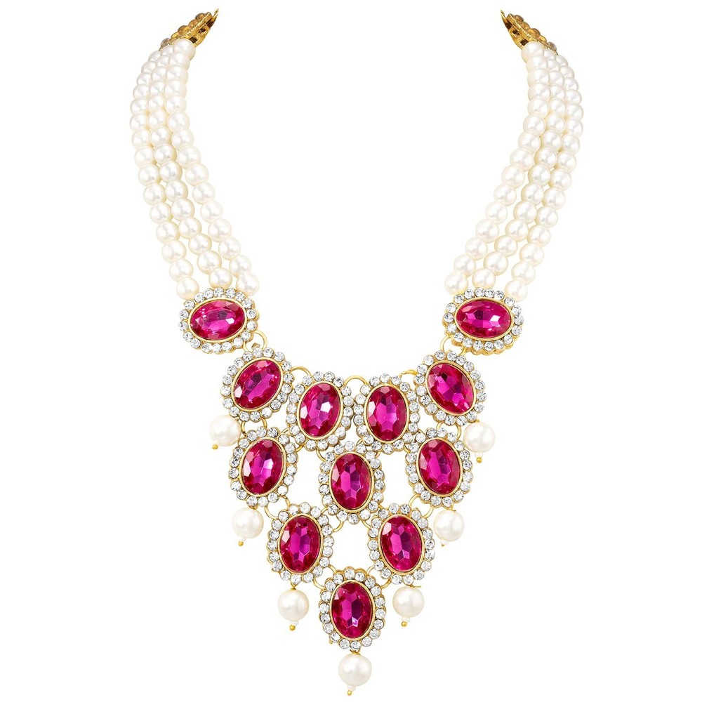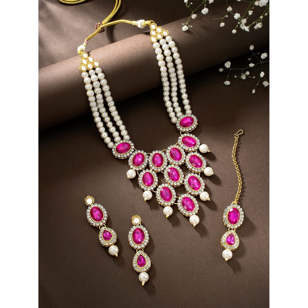 Aheli Traditional Gold Plated Pearl Necklace with Drop Earrings and Maang Tikka Ethnic Jewelry Set Gift for Women Product Details Color: Rani Pink Brand: Aheli MPN: AH-PF28N225 UPC: Does not apply EAN: Does not apply Item model number : AH-PF28N225 Department : womens Date First Available : May 16, 2024 Brand, Seller, or Collection Name: Aheli Metal stamp: no metal stamp Metal: Zinc Material: Metal Gem Type: No Gemstone Clasp: Lobster Clasp Ring size: adjustable