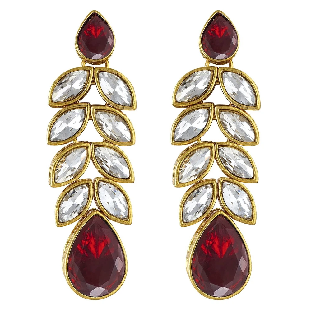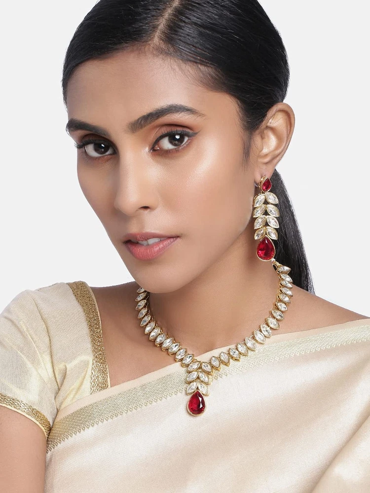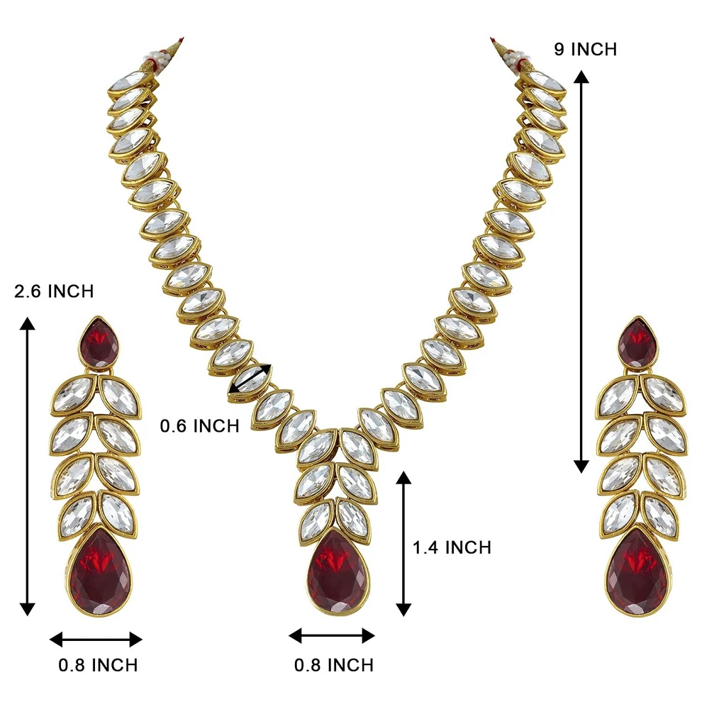 Aheli Gold Plated Traditional Crystal Studded Long Necklace Earrings Jewellery Set Gift for Women Product Details Color: Maroon Crystal Studded Brand: Aheli MPN: AH-PF24N15 UPC: Does not apply EAN: Does not apply Item model number : AH-PF24N15 Department : womens Date First Available : March 9, 2022 Brand, Seller, or Collection Name: Aheli Metal stamp: no metal stamp Metal: No Metal Type Material: Zinc Gem Type: No Gemstone Item Length: 7.87 inches Clasp: Lobster Clasp Number of stones: 5