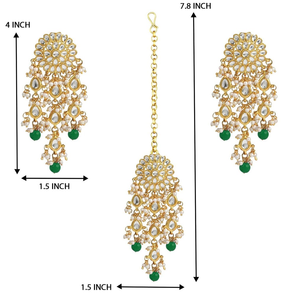 Aheli Kundan Studded Beaded Chandelier Classic Drop Earrings Maang Tikka Indian Traditional Bollywood Jewelry Set Gift for Women Product Details Color: Green Brand: Aheli MPN: AH-PF26ET114 UPC: Does not apply EAN: Does not apply Item model number : AH-PF26ET114 Department : womens Date First Available : May 16, 2024 Brand, Seller, or Collection Name: Aheli Metal stamp: no metal stamp Setting: other setting type Item Length: 4.72 inches Chain: Bead Clasp: Lobster Clasp Ring size: adjustable Number of stones: 5 Model number: AH-PF26ET114G