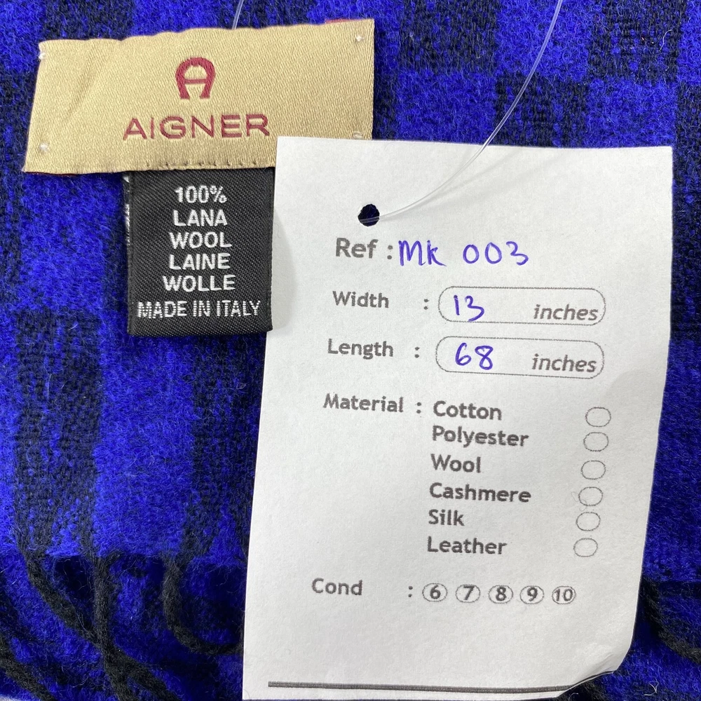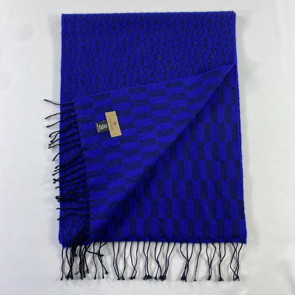 Country/Region of Manufacture: Japan Color: Blue Theme: Christmas, Hippie, Motorcycle, Music, Punk, Retro, Rock, USA, Designer Character Family: None Features: Multifunctional Item Width: 13 inches MPN: Does Not Apply Character: Hippie, Skater Girl, None Seller Notes: “This is used item, please don't expected it to be like "new" or in "pristine" condition, Thank You.” Type: Scarf Personalize: No Fabric Type: Tweed Garment Care: Dry Clean Only Department: Unisex Style: Square Scarf Season: Fall, Spring, Summer, Winter Brand: Aigner Item Length: 68 inches Accents: Crochet, Embroidered, Fringe, Fur Trim, Logo Handmade: No Material: Cashmere, Wool Pattern: Floral Vintage: No