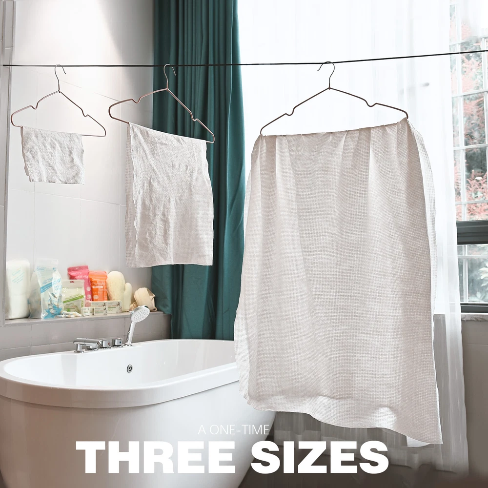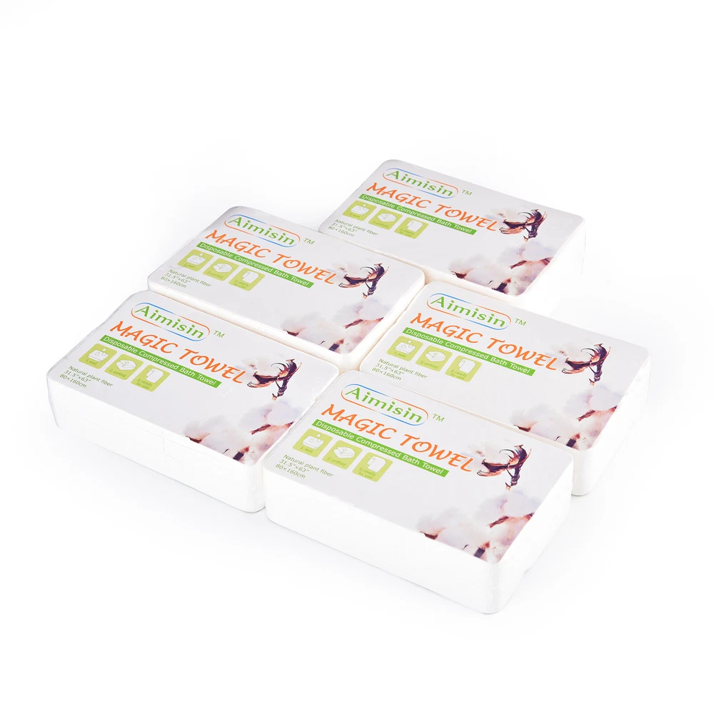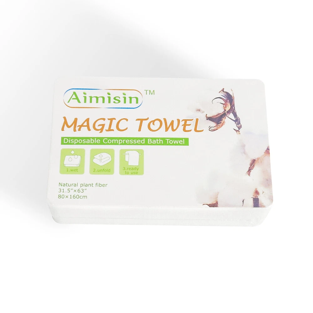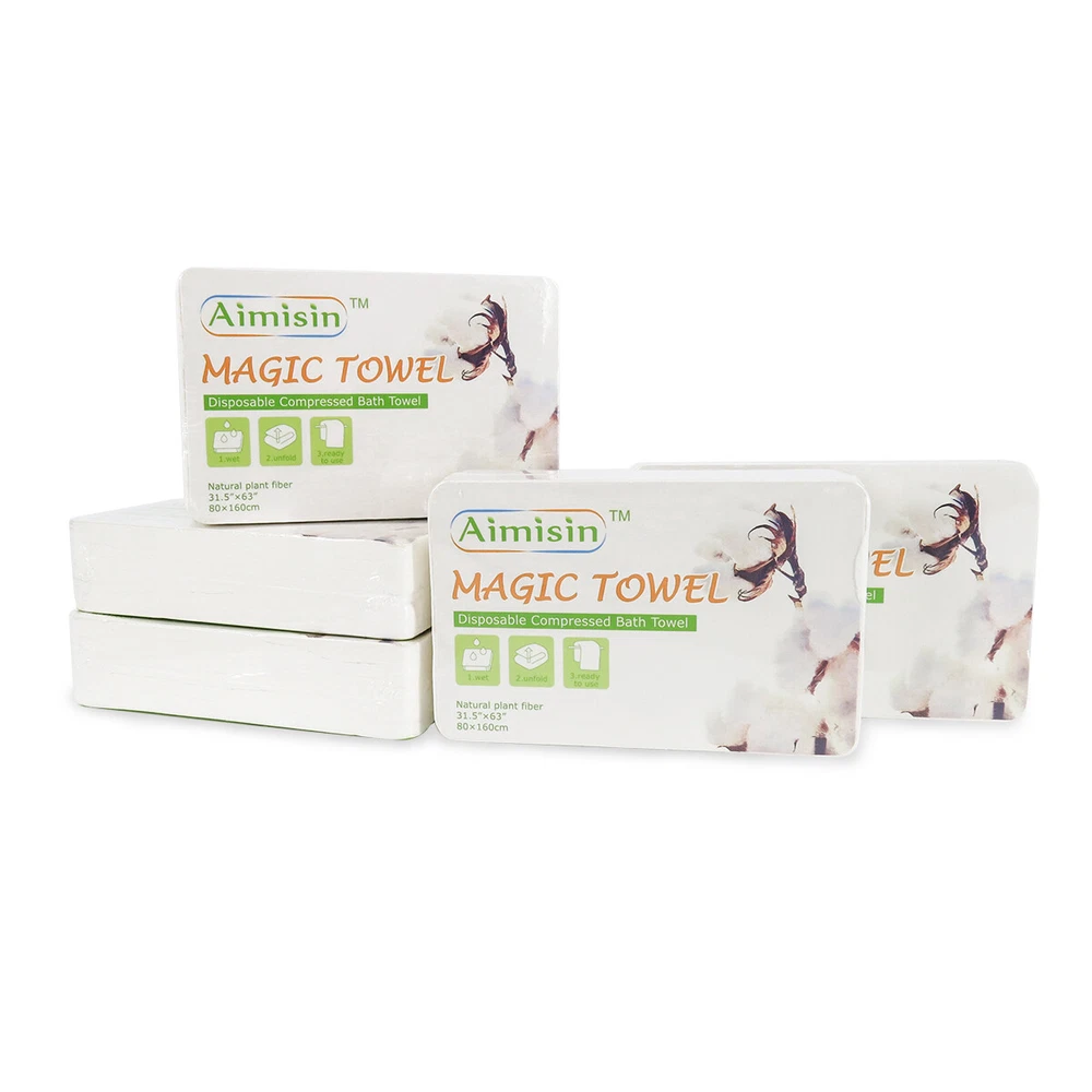 Aimisin Compre ssed Towel Video: Size: Bath Towel(L): Compressed Size: 3.9''x2.6'' Expanded Size: 31.5''x63'' Product Description: A imisin disposable compressed towels are made of 100% non-woven cotton fibers, so these magic towels are biodegradable and friendly to the environment. Our products are of good quality with SGS certificates, which include micro tests contamination tests, fluorescent whitening agents tests, and skin irritation tests. 90gsm non-woven cotton makes it thicker and more durable than common compressed towels. Individual packaging makes it portable so that you can take it anywhere. Compressed towels are easy to use, with a little bit of water the compressed towel will expand and unfold. It is great for indoor and outdoor use. Also, it is a perfect gift for your family and friends, they'll love the convenience. Aimisin Magic Towel Features: -Soft & Durable: Super soft fabric makes people feel comfortable. 90gsm non-woven cotton makes it thicker and more durable than common compressed towels. So in fact, you can use it multiple times. -Ultra Absorbent & Skin Safe: Absorbent enough for daily use. No chemicals or detergent, natural friendly for baby and kids even fit for sensitive skin. -100% Cotton & ECO-friendly: Aimisin compressed towels are made of 100% non-woven cotton fibers, Biodegradable and ECO-friendly. -Individual Package & Portable: Candy packaging, compact and portable. Every compressed towel is individually packaged, easy to take it out. -Easy to use: Just add water! the compressed towel will expand and unfold, then you can use it to wipe your body. -Multifunction: Compressed magic towel is ideal for bathroom, office, business trip, travel, camping, hotel, hydrotherapy center, and any place you can imagine. After cleaning the face can also be used to clean the surface of the kitchen, refrigerator, furniture, and glass items. Detail Pictures: SGS Certificates: Microbial Contamination Te st: Fluorescent Whitening Agents Test: Skin Irritation Test: Precautions: 1. The towel after use can not be dissolved, do not throw it in the toilet. 2. Manual measurement, there may be 1-2 cm error, thank you for your understanding!