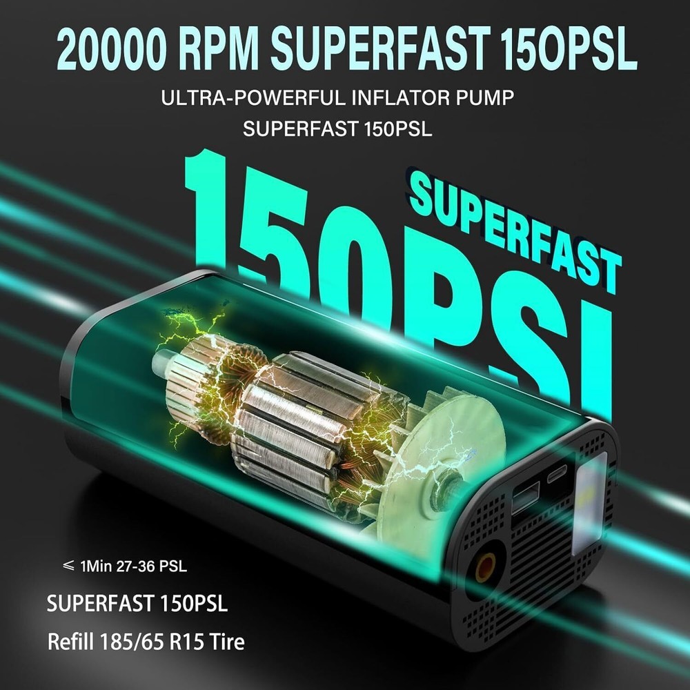 Portability: Portable Tank Material: ABS UPC: Does not apply Display Mode: LCD display Working temperature: -15-50℃ Maximum current: 12A/30A Material: pc Type: LCD Display Set Includes: Tire Inflator, Inflatable Nozzle Application: can pump bicycles, motorcycles, automobiles,etc Horse Power: 150psi MAX Manufacturer Part Number: Does Not Apply Power Source: Cordless Power Voltage: 12 V Feature1: Portable and Multi-purpose Inflator Tube Length: 7.28 in Features: Easy to operate, Portable & Easy To Carry, Portable and Multi-purpose, Real-time Precise Positioning Brand: Unbranded Flow Rate: Less than 100 L/min Tank Capacity: 10000mAh Power Cord Length: 118.11 in MPN: Does not apply Feature: Easy to operate, Portable & Easy To Carry gtin13: Does not apply Working Voltage: 12 V Lubrication Type: Oil-Free Color: Black Maximum Power: 120W Maximum Working Pressure: 150 Psi Size: 6.8" x 2.9" x 2.1"