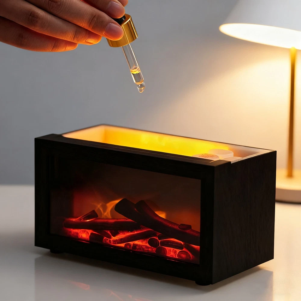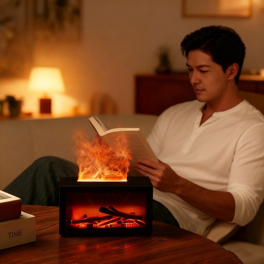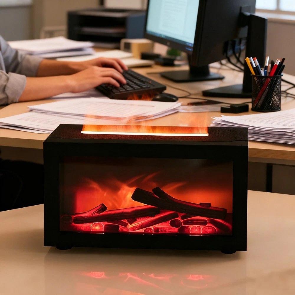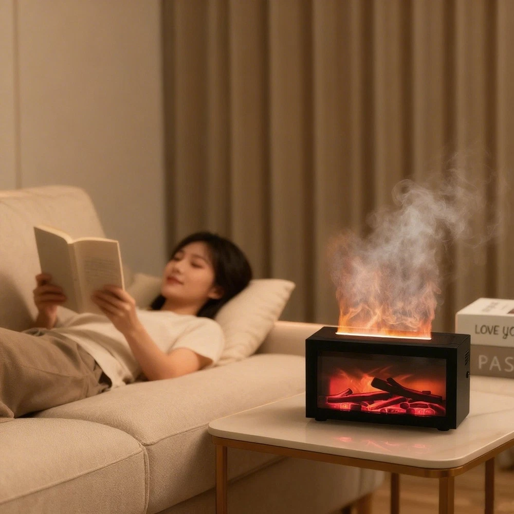 Air Diffuser Aroma Oil Humidifier Fireplace Flame Effect Home Relax Defuser US