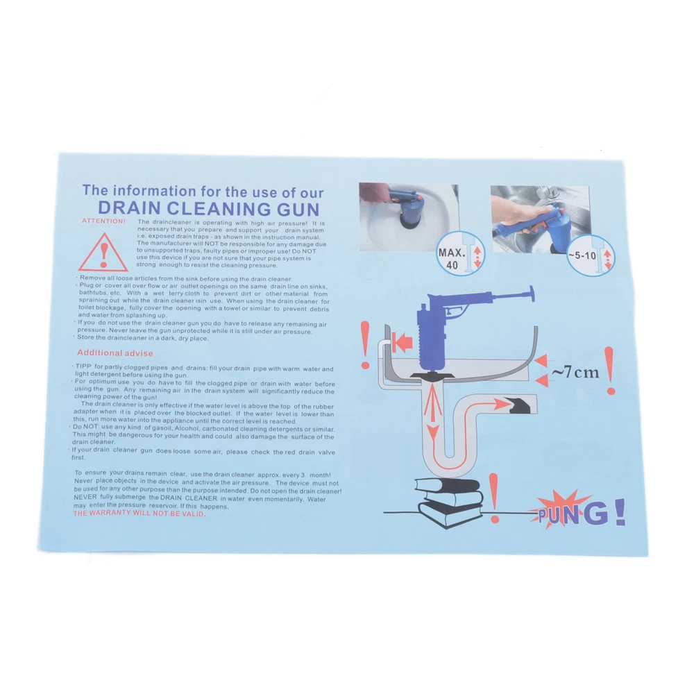 Description: Name:Sewer dredge pipe toilet toilet kitchen dredge Item Dimensions:29*29*9cm/11.4*11.4*3.5in Item Weight:0.85kg Material:ABS,rubber Color: gray Applicable Scene:Bath/Toilet/Sink/Floor Drain/Kitchen Clogged Pipe Feature: 💛 Drainpipe blasters use the force of high-pressure compressed air to blow away the hardest blockage (water) in just a few seconds 💛 Four different types of suction cups, can deal with toilet, bath, wash basin, floor drain and other garbage caused by hair, cloth, tea leaves, leaves, grease, oil stains, etc. 💛 Avoid harmful chemicals that could corrode pipes or endanger your family. It's reusable and can last for years Packing List: suckers *4 body*1 user guide*1 Weights&Dimensions: Package Size:29*29*9cm/11.4*11.4*3.5in Packing Weight:0.85kg Air Drain Blaster High Pressure Gun Pump Plunger Toilet Sink Pipe Clog Remover Description: Name: Sewer dredge pipe toilet toilet kitchen dredge Item Dimensions:29*29*9cm/11.4*11.4*3.5in Item Weight:0.85kg Material:ABS, rubber Color: gray Applicable Scene: Bath/Toilet/Sink/Floor Drain/Kitchen Clogged Pipe Feature: 💛 Drainpipe blasters use the force of high-pressure compressed air to blow away the hardest blockage (water) in just a few seconds 💛 Four different types of suction cups, can deal with toilet, bath, wash basin, floor drain and other garbage caused by hair, cloth, tea leaves, leaves, grease, oil stains, etc. 💛 Avoid harmful chemicals that could corrode pipes or endanger your family. It's reusable and can last for years 💛 ABS material exhibits impact resistance, structural strength and stiffness.The natural rubber material is environmental,tough and durable for long-lasting use.Also it is easy to clean up. Packing List: suckers *4 body *1 user guide *1 Weights&Dimensions: Package Size:29*29*9cm/11.4*11.4*3.5in Packing Weight:0.85kg Payment Delivery details Terms of sales About us Contact us Payment We accept ebay payment 。 Fees such as import duties, taxes are not included in the item price or shipping costs. These charges are the buyer's responsibility. Delivery details Shipping: 2-9 working days to: USA Terms of sales We maintain high standards of excellence and strive for hundred percent customer satisfaction. Feedback is very important to us. We hope that you contact us immediately before you give neutral or negative feedback, so that we can address your concerns. It is impossible to address issues if we do not know about them! About us Your satis faction is our ultimate goal. We work hard to earn your trust and future business. Our certified technicians have tested each item before shipping. The unit comes with 1 year limited warranty on all manufacturing defects. a) If you receive a defective item, you may return it or ask for a discount. Please contact us within 14 days after you receive the package. b) What you returned must be intact and in its original packaging as re? u. Customer is responsible for shipping costs of the returned item. c) We will cover the cost of shipping back t with the shipping rate indicated in the registration page. We will send you a new unit or refund the full payment you paid. Thank you. Contact us Business Hour Business Hour: Monday To Friday: 8:30 AM to 5:00 PM (Beijing China time) Due to time zones, our reply to your questions may not be immediately. But within above working time, we will reply your email within 24 hours. If it's non-workdays, please kindly be patient and wait till Monday. Please contact us with ebay message. Please feel free to contact us if you have any questions. Monday To Friday: 8:30 AM to 5:00 PM (Beijing China time) Due to time zones, our reply to your questions may not be immediately. But within above working time, we will reply your email within 24 hours. If it's non-workdays, please kindly be patient and wait till Monday. Please contact us with ebay message. Please feel free to contact us if you have any questions.