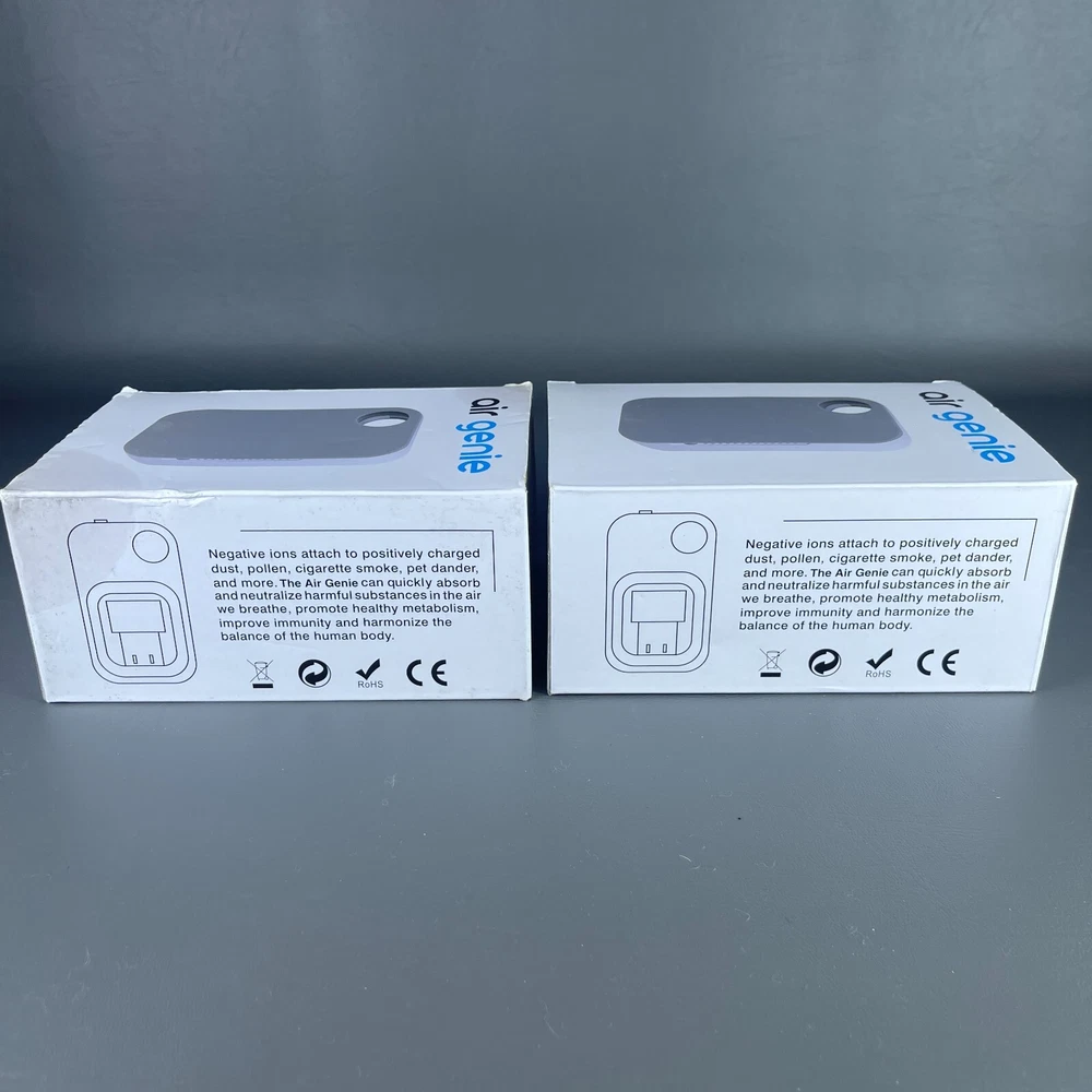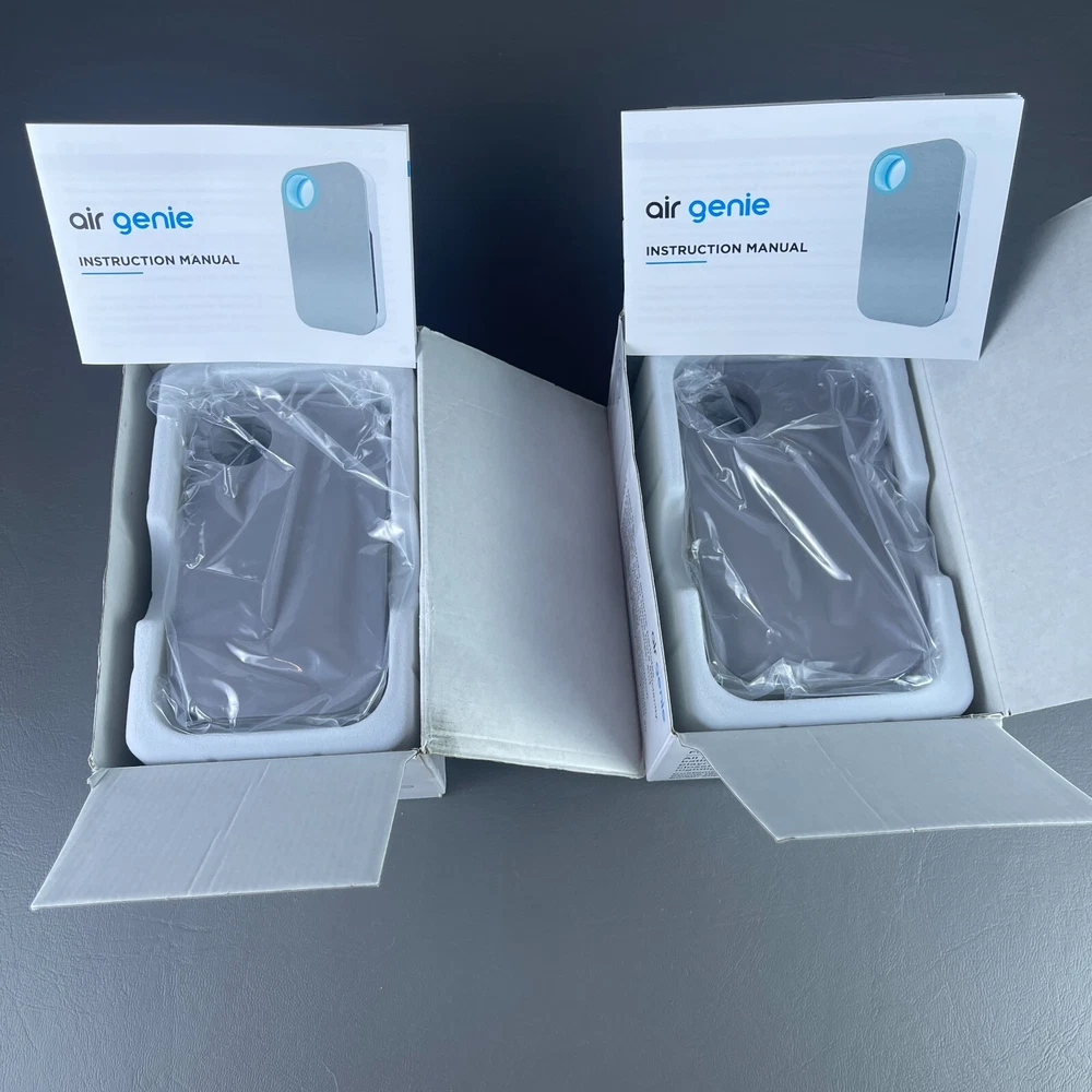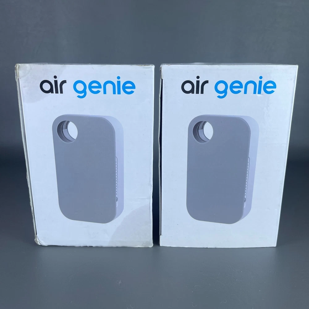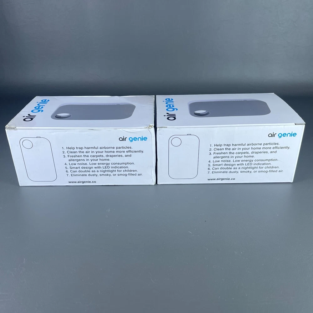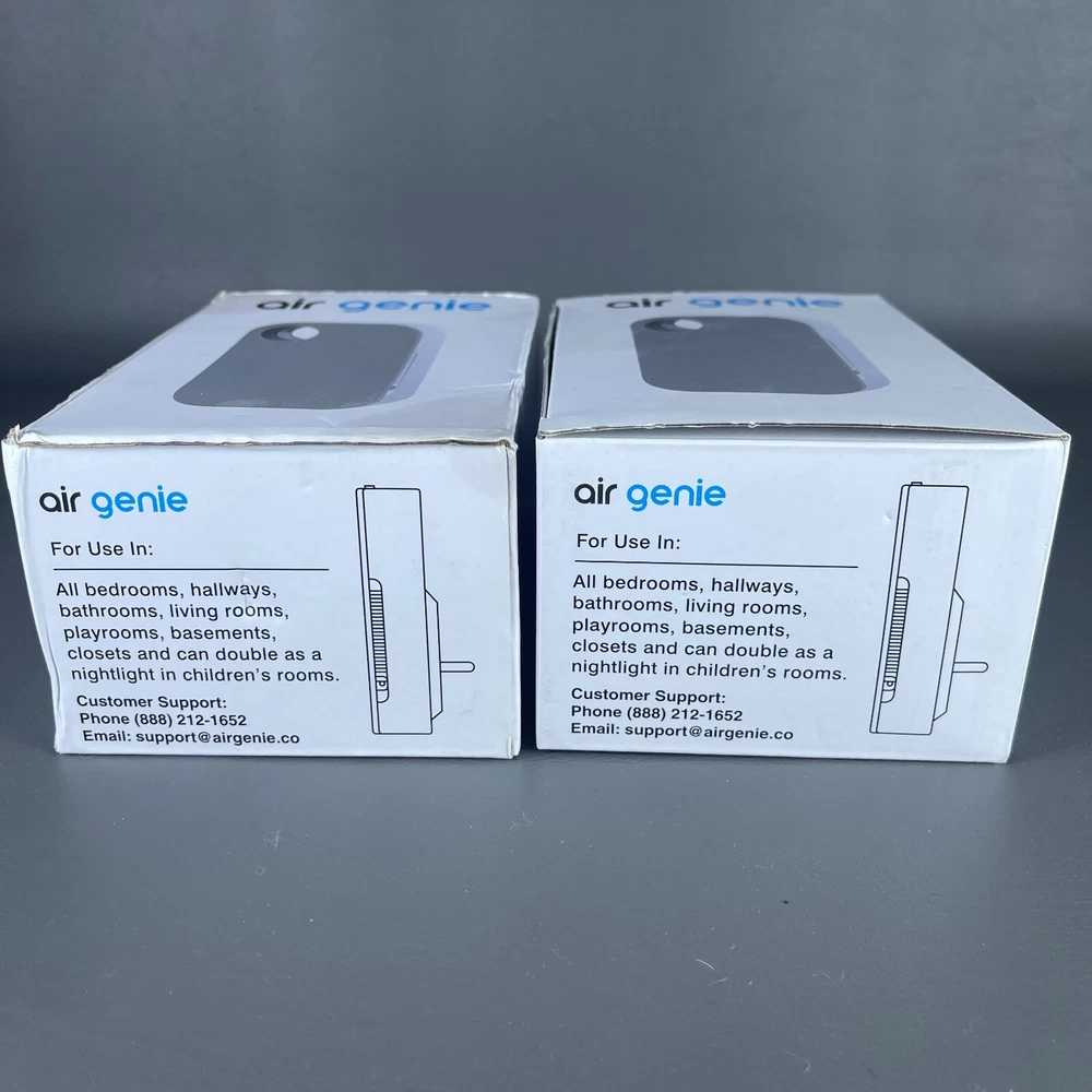 2 - Air Genie Plug N' Pure Smoke Dust Pet Odor Eliminator Plug in Air Freshener Both are New Open Box condition. One box has some kind of stain or got a bit wet but the actual unit inside is fine. • P lease see all pictures for details on condition. • Pictures are part of the description. • You will receive the exact items you see in the photos. • Please ask any questions you have. • We offer combined shipping for multiple orders. • Ships quickly Monday-Friday with USPS