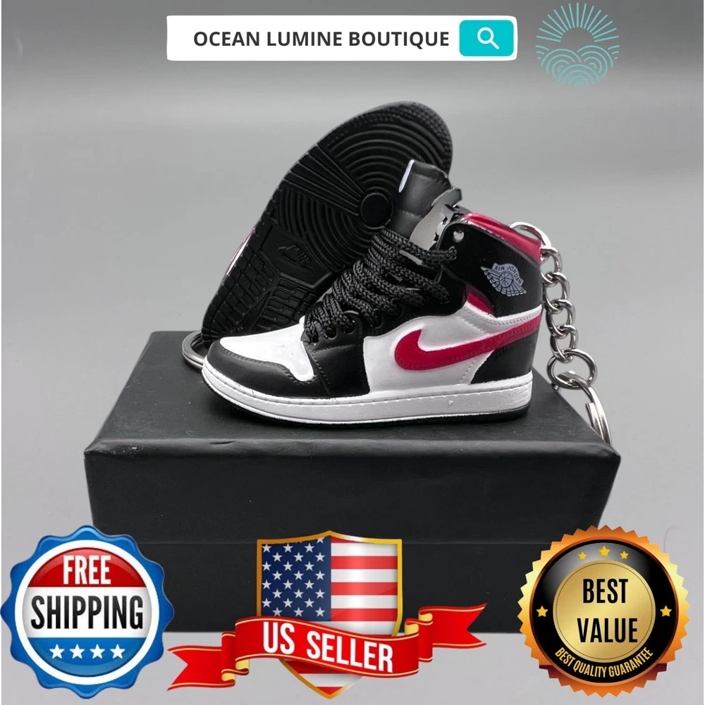 PLEASE READ BEFORE YOU PURCHASE You get the style in the very first pic, if you searching for more styles plz visit my page This is the best quality you can get, many other cheaper ones have poor quality, I know all the factories trust me, some really be making crap and you can not tell from the pictures. Handcrafted and hand-painted 3D Mini Sneaker Keychains inspired some of the most coveted sneakers ever produced Materials as ABS Plastic (Soft Plastic) Jordan pin color will be given randomly (If chosen) All Shoe keychain size is about 2 1/2 (L) x 1" (W) x 2" (H) The shoe Tongue is movable, it is not cracked or broken. Random shoe box styles will be given, if you have a preference please get in touch with me. These are all handmade and hand-painted with better paint, if you want to find a lower price please seek lower quality, my key chains are the best quality you can find. We've been selling these key chains for 3+ years, and have the most styles & best quality with super fast shipping. Search OCEAN LUMINE BOUTIQUE on any search engine to visit us! CLICK ME FOR MORE STYLES Disclaimer Product packaging, specifications, and prices are subject to change without notice. All information about the products is provided for information purposes only. Please always read labels, warnings, and directions provided with the product before use. Shipping We will ship all orders within 2 business days of payment, we provide free upgrade USPS shipping service up to 2-DAY Priority if Urgent Contact We can be contacted at any time through eBay messages if you have any questions, comments or product requests. We will respond to you within 24 hours and do our best to help you out! Features and further details 3000+ keychains in stock with up to 400+ styles We do bulk orders with discounts and provide long-term business relationships More styles are available in my shop PP WORLD