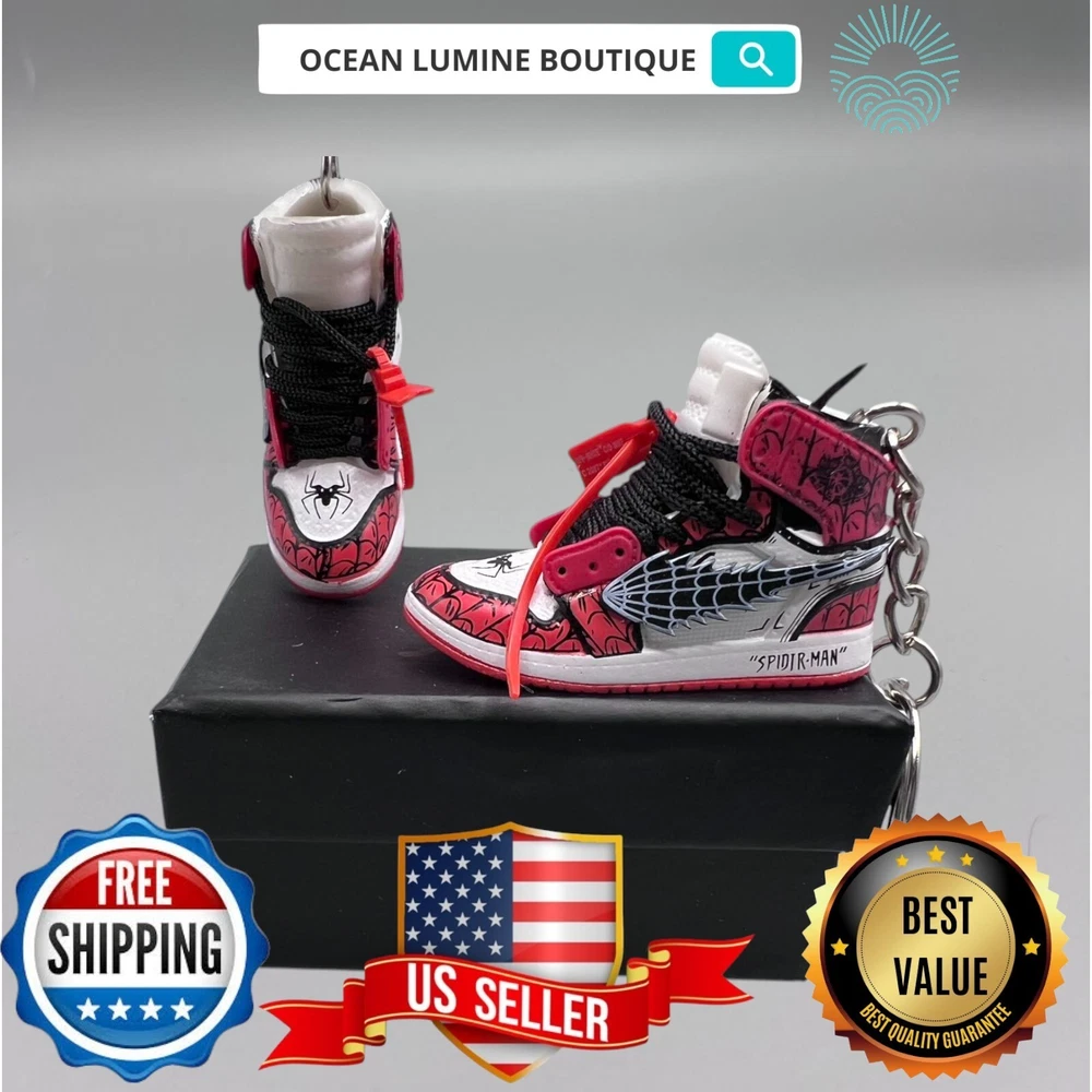 PLEASE READ BEFORE YOU PURCHASE You get the style in the very first pic, if you searching for more styles plz visit my page This is the best quality you can get, many other cheaper ones have poor quality, I know all the factories trust me, some really be making crap and you can not tell from the pictures. Handcrafted and hand-painted 3D Mini Sneaker Keychains inspired some of the most coveted sneakers ever produced Materials as ABS Plastic (Soft Plastic) Jordan pin color will be given randomly (If chosen) All Shoe keychain size is about 2 1/2 (L) x 1" (W) x 2" (H) The shoe Tongue is movable, it is not cracked or broken. Random shoe box styles will be given, if you have a preference please get in touch with me. These are all handmade and hand-painted with better paint, if you want to find a lower price please seek lower quality, my key chains are the best quality you can find. We've been selling these key chains for 3+ years, and have the most styles & best quality with super fast shipping. Search OCEAN LUMINE BOUTIQUE on any search engine to visit us! CLICK ME FOR MORE STYLES Disclaimer Product packaging, specifications, and prices are subject to change without notice. All information about the products is provided for information purposes only. Please always read labels, warnings, and directions provided with the product before use. Shipping We will ship all orders within 2 business days of payment, we provide free upgrade USPS shipping service up to 2-DAY Priority if Urgent Contact We can be contacted at any time through eBay messages if you have any questions, comments or product requests. We will respond to you within 24 hours and do our best to help you out! Features and further details 3000+ keychains in stock with up to 400+ styles We do bulk orders with discounts and provide long-term business relationships More styles are available in my shop PP WORLD