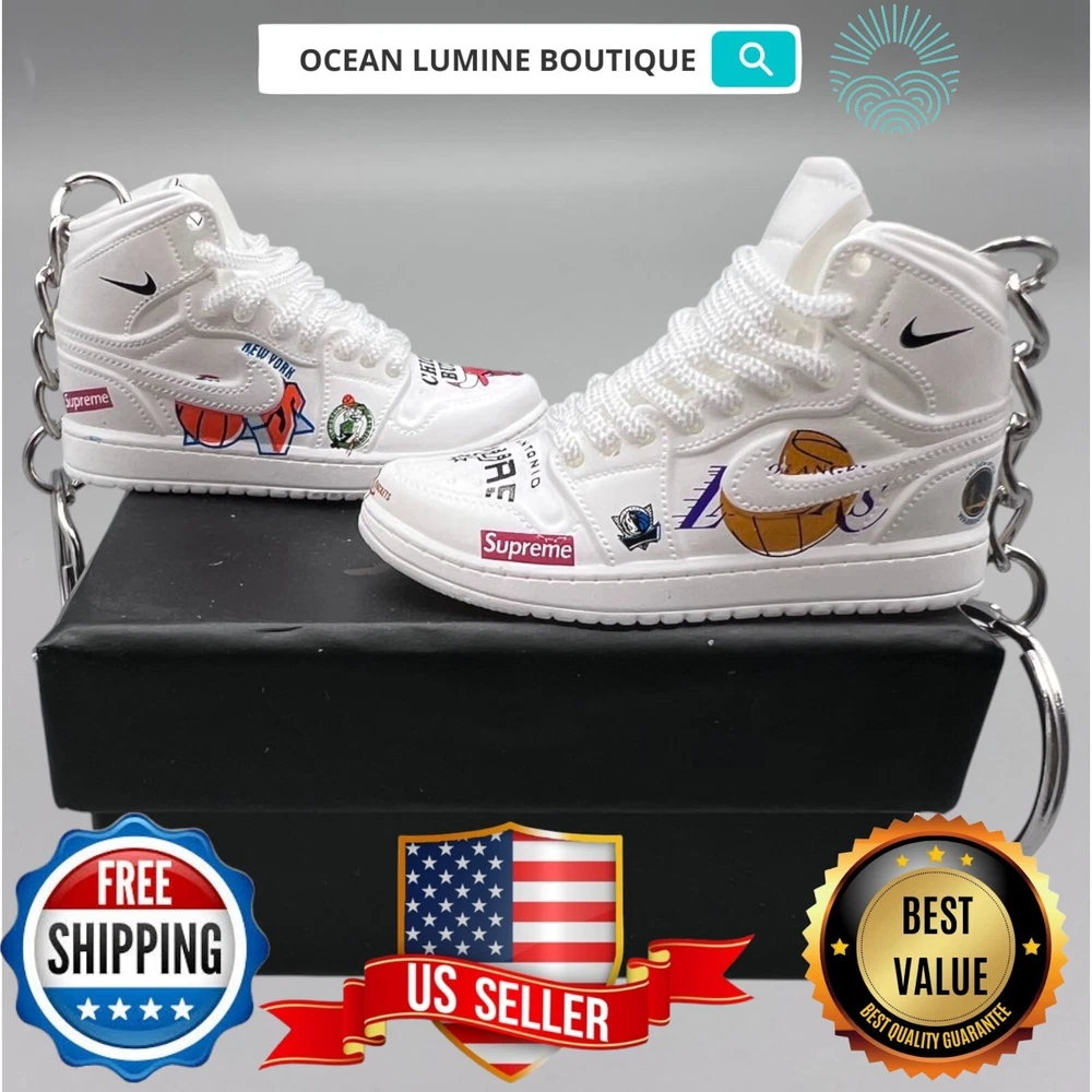 PLEASE READ BEFORE YOU PURCHASE You get the style in the very first pic, if you searching for more styles plz visit my page This is the best quality you can get, many other cheaper ones have poor quality, I know all the factories trust me, some really be making crap and you can not tell from the pictures. Handcrafted and hand-painted 3D Mini Sneaker Keychains inspired some of the most coveted sneakers ever produced Materials as ABS Plastic (Soft Plastic) Jordan pin color will be given randomly (If chosen) All Shoe keychain size is about 2 1/2 (L) x 1" (W) x 2" (H) The shoe Tongue is movable, it is not cracked or broken. Random shoe box styles will be given, if you have a preference please get in touch with me. These are all handmade and hand-painted with better paint, if you want to find a lower price please seek lower quality, my key chains are the best quality you can find. We've been selling these key chains for 3+ years, and have the most styles & best quality with super fast shipping. Search OCEAN LUMINE BOUTIQUE on any search engine to visit us! CLICK ME FOR MORE STYLES Disclaimer Product packaging, specifications, and prices are subject to change without notice. All information about the products is provided for information purposes only. Please always read labels, warnings, and directions provided with the product before use. Shipping We will ship all orders within 2 business days of payment, we provide free upgrade USPS shipping service up to 2-DAY Priority if Urgent Contact We can be contacted at any time through eBay messages if you have any questions, comments or product requests. We will respond to you within 24 hours and do our best to help you out! Features and further details 3000+ keychains in stock with up to 400+ styles We do bulk orders with discounts and provide long-term business relationships More styles are available in my shop PP WORLD