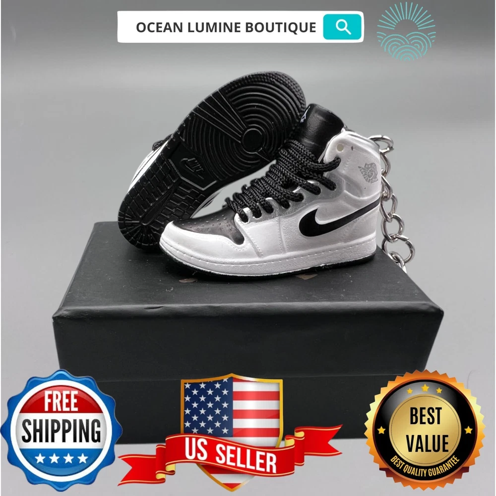 PLEASE READ BEFORE YOU PURCHASE This is the best quality you can get, many other cheaper ones have poor quality, I know all the factories trust me, some really be making crap and you can not tell from the pictures. Handcrafted and hand-painted 3D Mini Sneaker Keychains inspired some of the most coveted sneakers ever produced Materials as ABS Plastic (Soft Plastic) Jordan pin color will be given randomly (If chosen) All Shoe keychain size is about 2 1/2 (L) x 1" (W) x 2" (H) The shoe Tongue is movable, it is not cracked or broken. Random shoe box styles will be given, if you have a preference please get in touch with me. These are all handmade and hand-painted with better paint, if you want to find a lower price please seek lower quality, my key chains are the best quality you can find. We've been selling these key chains for 3+ years, and have the most styles & best quality with super fast shipping. Search OCEAN LUMINE BOUTIQUE on any search engine to visit us! CLICK ME FOR MORE STYLES Disclaimer Product packaging, specifications, and prices are subject to change without notice. All information about the products is provided for information purposes only. Please always read labels, warnings, and directions provided with the product before use. Shipping We will ship all orders within 2 business days of payment, we provide free upgrade USPS shipping service up to 2-DAY Priority if Urgent Contact We can be contacted at any time through eBay messages if you have any questions, comments or product requests. We will respond to you within 24 hours and do our best to help you out! Features and further details 3000+ keychains in stock with up to 400+ styles We do bulk orders with discounts and provide long-term business relationships More styles are available in my shop PP WORLD
