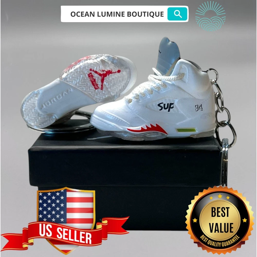 PLEASE READ BEFORE YOU PURCHASE You get the style in the very first pic, if you searching for more styles plz visit my page Handcrafted and hand-painted 3D Mini Sneaker Keychains inspired some of the most coveted sneakers ever produced Materials as ABS Plastic (Soft Plastic) Jordan pin color will be given randomly All Shoe keychain size is about 2 1/2 (L) x 1" (W) x 2" (H) The shoe Tongue is movable, it is not cracked or broken. Random shoe box styles will be given, if you have a preference please get in touch with me. These are all handmade and hand-painted with better paint, if you want to find a lower price please seek lower quality, my key chains are the best quality you can find. We've been selling these key chains for 3+ years, and have the most styles & best quality with super fast shipping. Search OCEAN LUMINE BOUTIQUE on any search engine to visit us! CLICK ME FOR MORE STYLES Disclaimer Product packaging, specifications, and prices are subject to change without notice. All information about the products is provided for information purposes only. Please always read labels, warnings, and directions provided with the product before use. Shipping We will ship all orders within 2 business days of payment, we provide free upgrade USPS shipping service up to 2-DAY Priority if Urgent Contact We can be contacted at any time through eBay messages if you have any questions, comments or product requests. We will respond to you within 24 hours and do our best to help you out! Features and further details 3000+ keychains in stock with up to 400+ styles We do bulk orders with discounts and provide long-term business relationships More styles are available in my shop PP WORLD