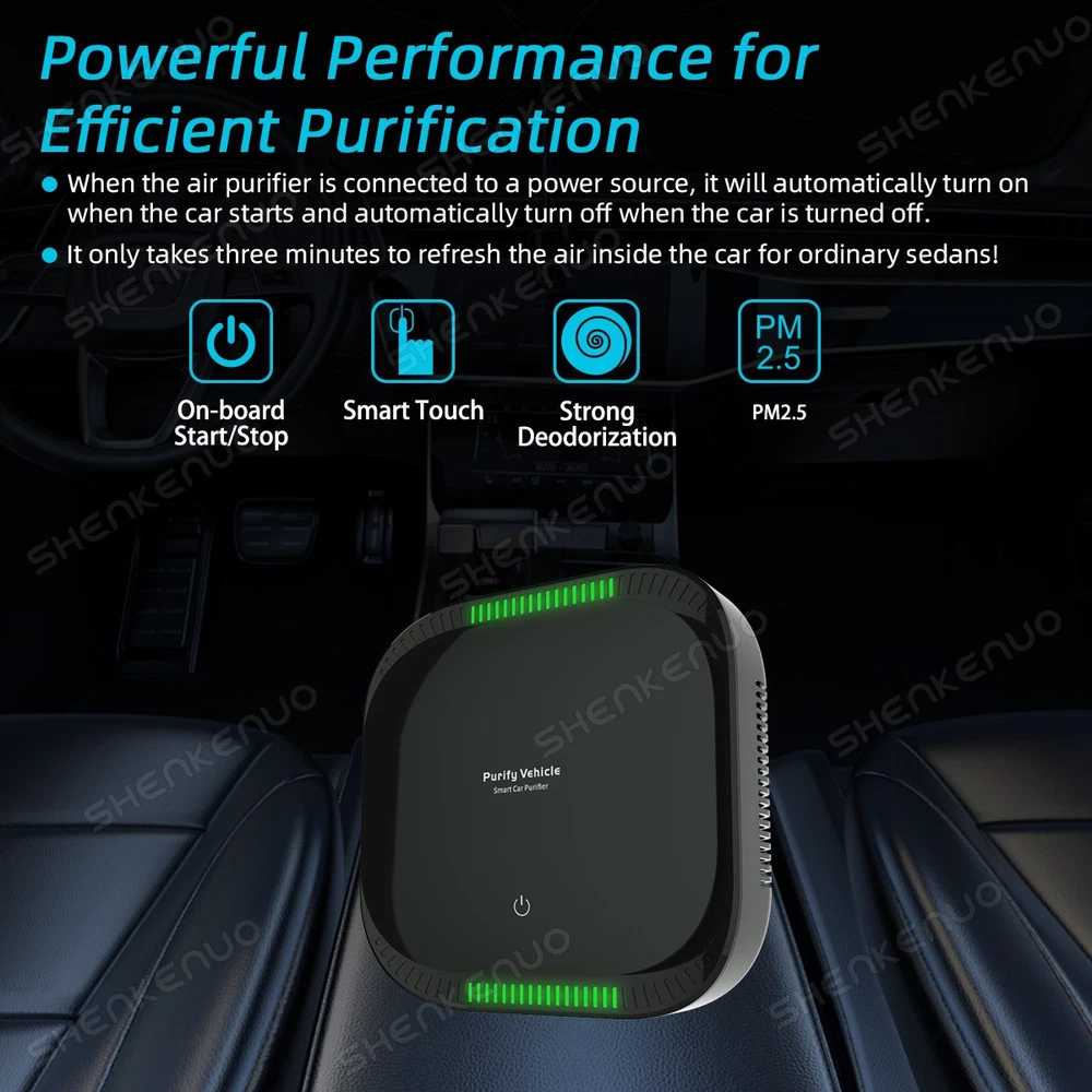 This high-performance car air purifier is engineered to create a healthier and more comfortable cabin environment. Utilizing an advanced HEPA filtration system, effectively captures airborne particles, allergens, and dust. Its core strength lies in providing large space coverage and fast air circulation, resulting in more powerful purification capability. Specifications: • Product Name: Car Air Purifier • Material: PC/ABS • Power Source: USB / Car Cigarette Lighter • Product Weight: 500 g • Color: Black • Operating Voltage: 5V • Rated Power: 3W • Suitable Area: 10-20 m² • Noise Level: <30 dB • Purification Technology: HEPA • Cable Length: 1.2 m • Package Dimensions: 205 * 205 * 70 mm Key Features: ✅ Smart Display & Touch Control Easily monitor air quality and control settings via an intuitive smart display with touch-sensitive buttons. ✅ Effective PM2.5 Purification Actively monitors and captures harmful PM2.5 particles, ensuring cleaner air inside your vehicle. ✅ Powerful 10cm Fan Enables rapid air circulation and a fast purification cycle for large spaces. ✅ Convenient Auto Start/Stop Powers on and off automatically with your vehicle's ignition for a truly hassle-free experience. ✅ Sleek, Ultra-Thin Design Its compact form factor fits seamlessly into any car interior without being obtrusive. ✅ Multi-Action Performance Features powerful odor elimination and rapid defrosting capabilities for enhanced comfort. On Nov 19, 2025 at 16:54:22 PST, seller added the following information: