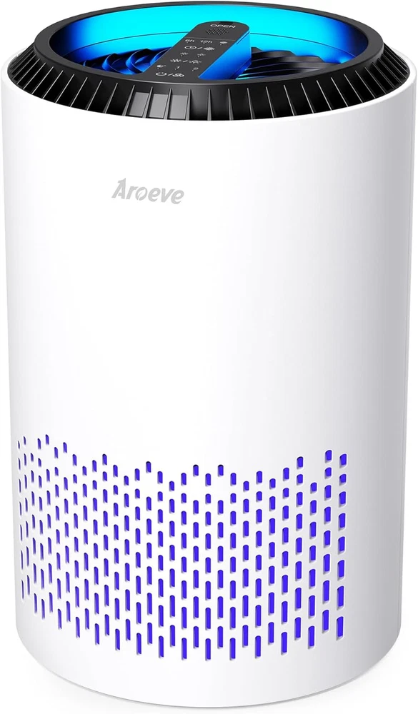 Impressive Particle Filtration: AROEVE air purifier utilizes filter that can filter out particles such as smoke, pollen, dander, hair, and more, potentially improving air quality and promoting better health and well-being for you. High Circulation Rate: With dual-channel and 360-degree air inlets technology, AROEVE air purifier refreshes the air per hour in rooms up to 287 ft² / 25 m², covering every corner of the room to promote better health for you. Low Decibel Operation: AROEVE air purifier operates quietly, especially when the sleep mode is activated, which reduces the fan speed to the lowest setting, effectively eliminating any noticeable sound. The filtered air noise is as low as 22 dB, making it ideal for creating a peaceful and relaxing indoor environment while still providing impressive purification. Enjoy Fragrant Air: It features an aroma pad located below the air outlet that allows you to add 4-5 drops of your favorite essential oil (not included). As the purifier circulates fresh air, the fragrance spreads throughout the room, creating a pleasant and healthy environment for you and your family to enjoy. Notice: To ensure the health and safety of you and your family, our AROEVE air purifiers are equipped with replacement reminder. A red indicator light will turn on to remind you to replace the filter cartridge. For optimal performance, we recommend replacing the filter cartridge once every 3-6 months. (Note: The voltage of the air purifier is 120V and is suitable for use only in the United States.) Product Description About Our Products Add to Cart Add to Cart Add to Cart Add to Cart Add to Cart Add to Cart Add to Cart Customer Reviews 4.5 out of 5 stars 37,114 4.8 out of 5 stars 4,176 4.5 out of 5 stars 175 4.6 out of 5 stars 887 4.7 out of 5 stars 1,141 4.5 out of 5 stars 11,011 4.5 out of 5 stars 12,347 Price $37.97 $ 37 . 97 $22.99 $ 22 . 99 $9.99 $ 9 . 99 $89.99 $ 89 . 99 $39.99 $ 39 . 99 $71.98 $ 71 . 98 $29.99 $ 29 . 99 Color White Blue White White White White White Item Dimensions 6.1 x 6.1 x 9.7 inches 5.2 x 5.2 x 3.7 inches 1.02 x 1.02 x 0.2 inches 12.4 x 16.2 x 6.7 inches 11.8 x 5.9 x 15.7inches 13.5 x 7.5 x 17.25 inches 6.1 x 6.1 x 9.6 inches Weight 3 pounds 6.8 ounces 0.3 ounces 8.3 pounds 6.88 pounds 8.63 pounds 3 pounds Decibel 22dB 22dB 22dB 23dB 22dB 22dB 20dB Coverage Area Up to 215 sq.ft Up to 215 sq.ft Up to 215 sq.ft Up to 1504 sq.ft Up to 1095 sq.ft Up to 1095 sq.ft Up to 215 sq.ft Filter Lifespan 3-6 months 3-6 months 3-6 months 4-8 months 3-6 months 3-6 months 3-6 months Application Home/ Office Home/ Office Home/ Office Home/ Office Home/ Office Home/ Office Home/ Office