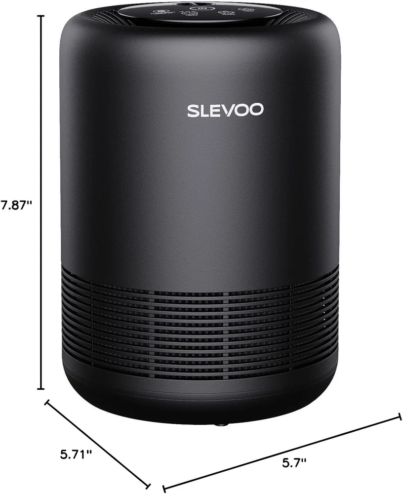 【Advanced 3 Stages Filtration】Slevoo air purifier for home has 3-stage filtration system: Pre-filter; H13 ture HEPA filter; Activated carbon filter. Effectively Clean air pollutants, like dust, pet dander, smoke, and house odor 【Efficient and 20dB Operating Quietly】The air purifier for room desk features 360° air intake and a powerful brushless motor, which can clean up to 86 ft² in 25 minutes, and 215 ft² in an hour, and adopts advanced and noise reduction fan blade design. lowest fan speed (20dB) to create a sleep-friendly space that's as quiet as falling leaves 【Aromatherapy Design】Not only can this air purifier for dust get rid of air pollutants, but also available to add essential oils ( Not Included) for a pleasant scent. Add drops of your favorite essential oils on the aroma pad (including 5 pieces of replacement sponge) and promote long-term memory and a good mood 【User-Friendly】1, A timer for 2/4/6/8/10H hours auto shut-off when you are going to sleep or going outside. 2, The blue light is optional (it serves as a nice, calming night light). 3, Filter lifetime indicator for your convenience. 4, Display light can be turned off to enjoy a perfect night of sleep without the effect of light 【Fully Certified for Safety】Note: Only use genuine Slevoo replacement filters for best results and product performance Product Description Why Do We Need Air Purifiers to Accompany Us? What the SLEVOO Air Purifier Will Do for Your Home! How to Get it Effectively clean 99.97% of air pollutants, longer filter life. Suitable for any space from desk to floor, bedroom to living room. BS-01 Air Purifier SLEVOO HEPA Air Purifiers bedroom/living room Recommended Room bedroom/living room 107ft²/10㎡ Coverage (2x/h) 130ft²/12㎡ Fragrance Sponge Aromatherapy Fragrance Sponge 2/4/6/8/10 H Timer x Lock Set 20dB-48dB Noise Level 24dB-50dB bedroom/living room Recommended Room bedroom/living room 107ft²/10㎡ Coverage (2x/h) 155ft²/14㎡ Fragrance Sponge Aromatherapy Fragrance Sponge 2/4/6/8/10 H Timer 2/4/6/8 H Lock Set 20dB-48dB Noise Level 22dB-48dB bedroom/living room Recommended Room extra large room 107ft²/10㎡ Coverage (2x/h) 387ft²/36㎡ Fragrance Sponge Aromatherapy Non-fog Aromatherapy 2/4/6/8/10 H Timer 1/2/4/8 H Lock Set 20dB-48dB Noise Level 22dB-48dB BS-03 Air Purifier BS-03 Pro Air Purifier BS-14 Air Purifier