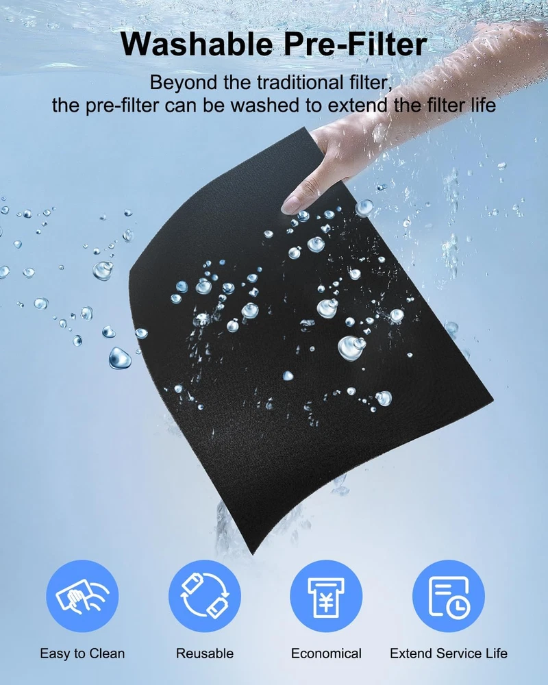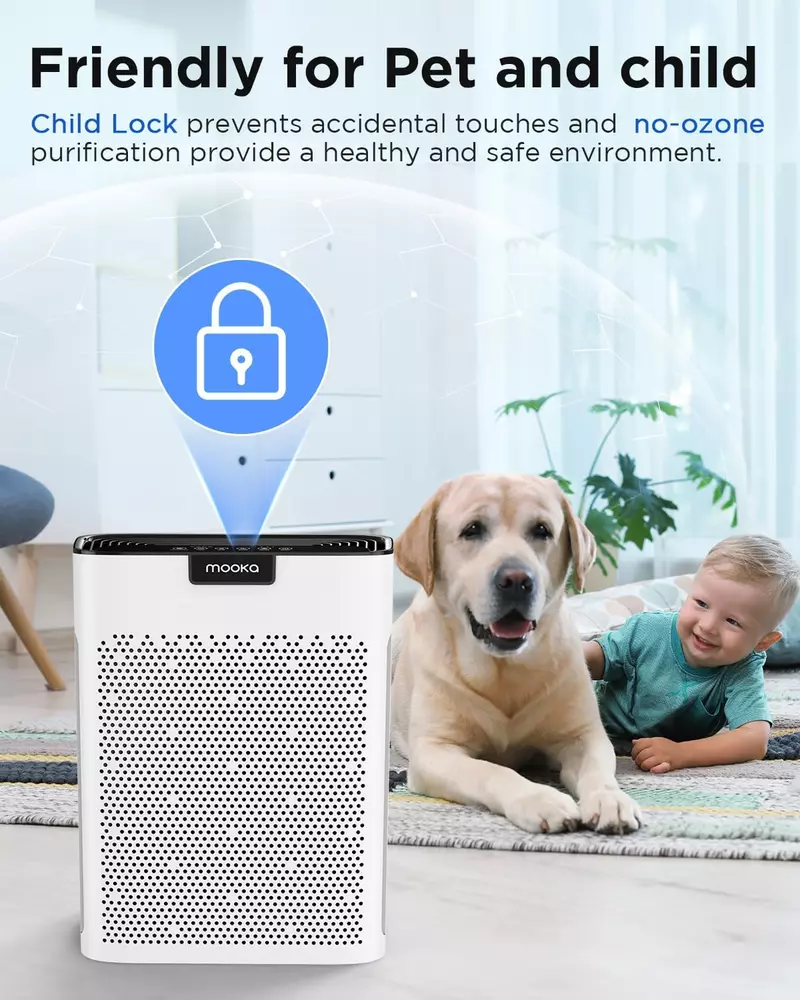 HIGHER AIR INTAKE & LARGER COVERAGE FOR PET LOVERS: this air purifier for home pets is designed with a larger front air inlet and wider dual-side air inlet. Compared to the single air inlet design, it can trap airborne pet hairs and odors more easily. This air purifier for large room can clean up to 2000 ft² per hour WASHABLE FILTER: Equipped with a high-efficiency 3-stage filtration system, the air cleaner for pets can effectively filter airborne particles as small as 0.3 microns, such as pollen, dust, and pet dander. Cleaning the pre-filter with water or a vacuum cleaner will help extend the life of the H13 HEPA filter. More activated carbon pellets help absorb a bad odor such as pet odors, fumes and VOCs 4 TIMER & 4 FAN SPEED: The room air purifier has 4 adjustable fan speeds. You can choose the fan speed according to the air quality. The higher the wind speed, the faster the purification speed. You can also turn on the timer when you sleep or go out, which are 2/4/6/8h QUIET 20DB SLEEP MODE FOR LIGHT SLEEPERS: Worried about your rest being interrupted? Choose our quiet air purifier for bedroom. Noise as low as 20dB in sleep mode. Low noise, low speed and no lights, perfect for a good night's sleep. Even a light sleeper baby or pet can enjoy the fresh and clean air on a quiet night ESSENTIAL OIL DIFFUSER & CHILD LOCK: Add essential oil to the aromatherapy pad on top of the pet air purifiers for home pee smell to give a room a pleasant scent. When you use it for the first time, please moisten the cotton pad with more essential oil. Run it with the maximum wind speed for a period of time to let the fragrance gradually spreads to the entire room with the airflow. The thoughtful child lock design can prevent your baby and fur friends from being injured and accidental touching FILTER REPLACEMENT REMINDER: This air purifier with washable filter has a filter change reminder function. When the filter reaches the end of its service life, the filter indicator lights up to remind you to replace the filter. You can also clean the pre-filter to extend the its service life. After installing the filter, press and hold the filter button for 3 seconds until you hear a beep to reset the filter reminder. Purchase MOOKA official replacement filter on Amazon to keep the optimal purification effect AUTHORITATIVE CERTIFICATION FOR LONG USE AND SAFETY: CARB, ETL, EPA, DOE and FCC certified. No ozone release, No UV light, safe for you and your family. If you have any question, please do not hesitate to tell us. NOTE: Please remove the protective plastic bage from the filter before use Product Description Choose Filter Replacement for KJ190L Add to Cart Add to Cart Add to Cart Add to Cart Add to Cart Add to Cart Add to Cart Customer Reviews 4.6 out of 5 stars 39 4.6 out of 5 stars 7 4.5 out of 5 stars 10 4.4 out of 5 stars 1,111 4.4 out of 5 stars 1,111 4.4 out of 5 stars 1,197 4.4 out of 5 stars 1,111 Price $29.99 $ 29 . 99 $39.99 $ 39 . 99 $39.99 $ 39 . 99 $99.99 $ 99 . 99 $99.99 $ 99 . 99 $39.99 $ 39 . 99 $98.05 $ 98 . 05 Item Dimensions 1.81 x 11.1 x 13.9 inches 3.65 x 11.1 x 13.9 inches 3.65 x 11.1 x 13.9 inches 6.1 x 12.2 x 15.75 inches 6.1 x 12.2 x 15.75 inches 5.91 x 5.91 x 7.87 inches 6.1 x 12.2 x 15.75 inches Pre Filter Washable Washable Washable Washable Washable Non-washable Washable HEPA Filter H13 HEPA H13 HEPA H13 HEPA H13 HEPA, Against Dander H13 HEPA, Against Dander H13 HEPA H13 HEPA, Against Dander Activated Carbon Filter Activated Carbon Pellets Activated Carbon Pellets Activated Carbon Pellets Activated Carbon Pellets Activated Carbon Pellets Activated Carbon Sponge Activated Carbon Pellets Filter Lifespan 4-6 months 4-6 months 4-6 months 4-6 months 4-6 months 3-6 months 4-6 months MOOKA KJ190L Air Purifier, Compact for Large Room, Powerful for Pet Families MOOKA KJ190L hepa air purifier for home pets is preferred for its powerful ability to improve indoor air quality, eliminate odors, capture hair, and operate efficiently and sustainably. Powerful 3-stage Filtration 1 Catch Pet hair 2 Filter Fine Particle 3 Absorb Pet Odor Your All-round Companion: Optimal Air Quality at Your Control Adopts wider air intake, larger air outlet and High-out-put motor , refreshes the air 1 time per hour in rooms as large as 2000 ft² cover. When using for the first time, please moisten the aromatherapy cotton with enough essential oil. 1 4 Fan Speed Fan 2 Safe Child Lock 3 4 Timer Setting 4 20dB Sleep Mode 5 Enjoy the Fragrance 1 Third-party Certification 2 Energy Saving & No Ozone 3 Filter Change Reminder
