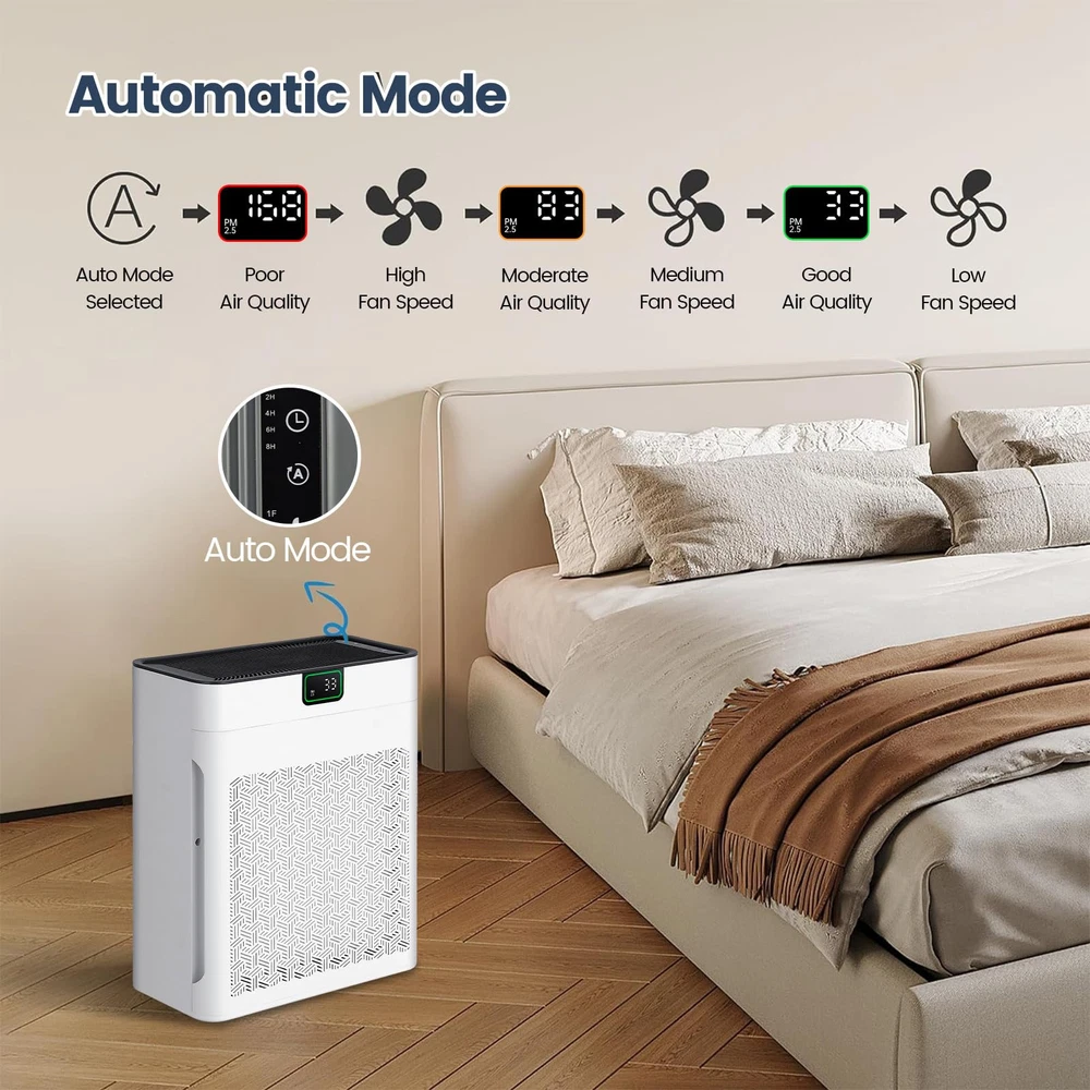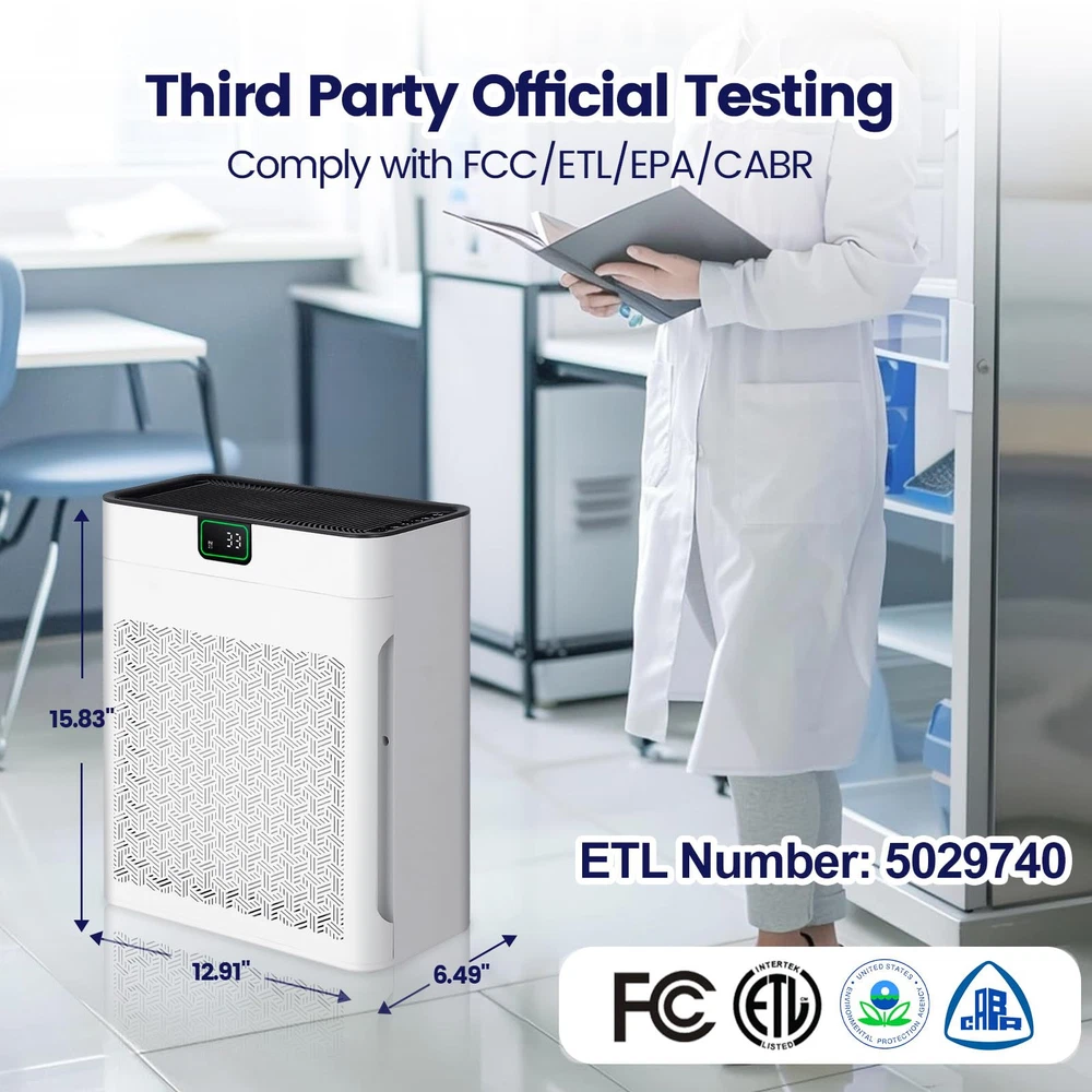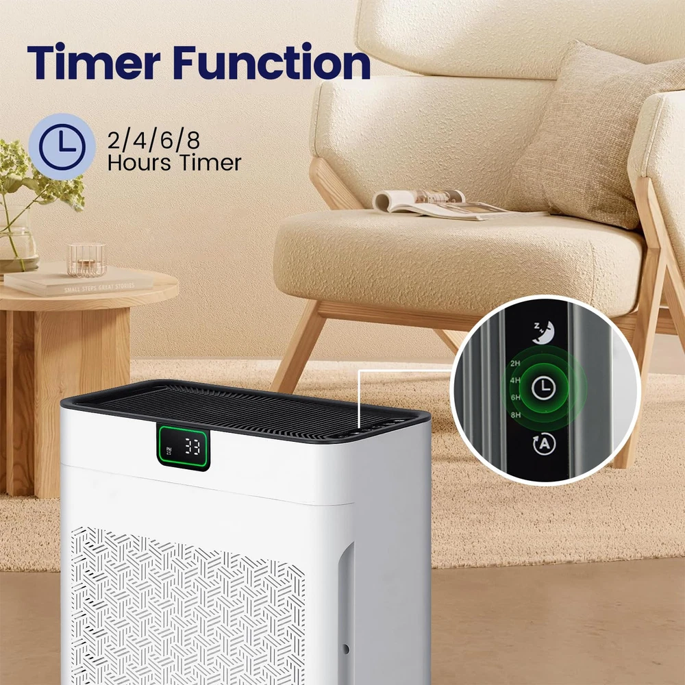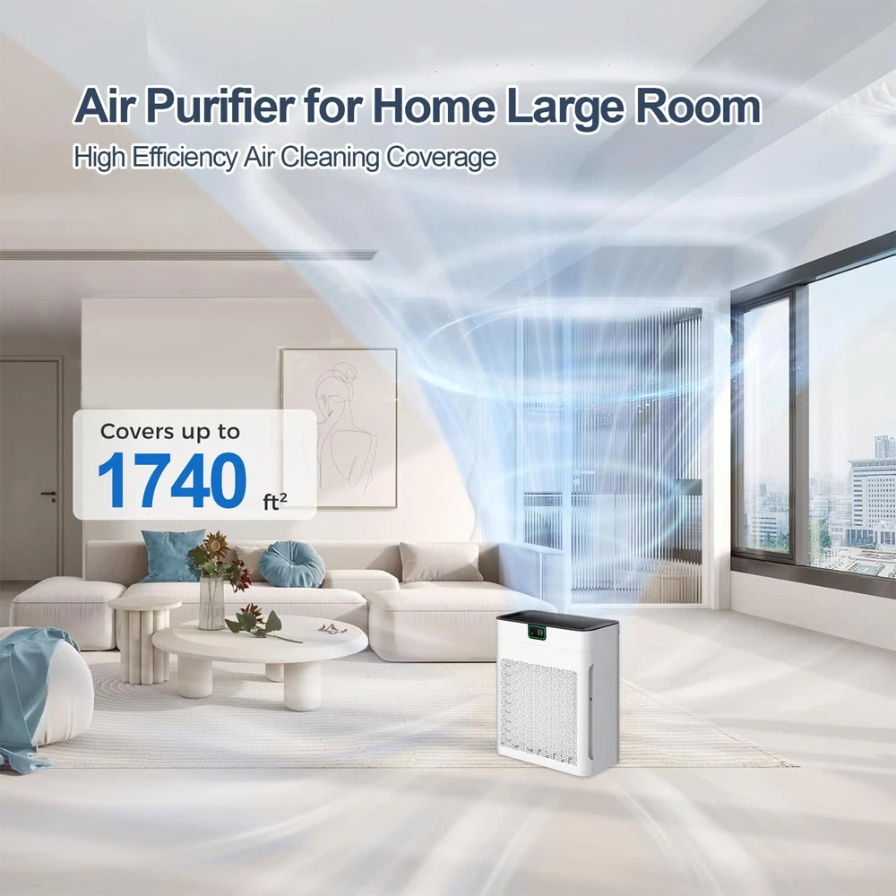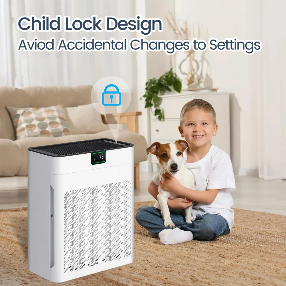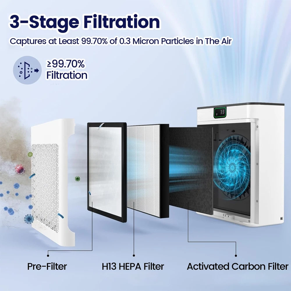 π™„π™ˆπ™‹π™Šπ™π™π˜Όπ™‰π™ π™‰π™Šπ™π™€ – The air purifier comes with a filter, and please remember to remove the filter cover and take out the new filter from the package at the first time use, or the sound is loud when it's working. 𝙃𝙄𝙂𝙃 π™‹π™€π™π™π™Šπ™π™ˆπ˜Όπ™‰π˜Ύπ™€ – Air purifier has a powerful filtration that can remove particles as small as 0.3 microns, including dust and pollen. It covers spaces up to 1740ftΒ² and refresh the air in a room every hour. π™Žπ™ˆπ˜Όπ™π™ π™Žπ™€π™‰π™Žπ™„π™‰π™‚ – The sensor in the air purifiers for pets hair detects air quality, the indicator light changes from green to yellow or red and the fan speed adjusts accordingly when the air quality worsens. 𝟯-π™Žπ™π˜Όπ™‚π™€ π™π™„π™‡π™π™π˜Όπ™π™„π™Šπ™‰ – The air purifier contains H13 HEPA filter and 30% more carbon. Decompose odor and filter particles such as PM 2.5 efficiently. The pre-filter reduces clogging and extends filter life. π™π™„π™ˆπ™€π™ π™π™π™‰π˜Ύπ™π™„π™Šπ™‰ – You could effortlessly set the purifier to operate for a specified duration (2/4/6/8H), so you have the freedom to schedule the air purifier’s operation according to your daily routine. π™Œπ™π™„π™€π™ π™Žπ™‡π™€π™€π™‹ – With an operating sound as low as 23 dB and a display light, you can enjoy the uninterrupted fresh air while you sleep. Plus, you could turn on the pet / children lock for extra peace of mind. π™π™π™π™Žπ™π™€π˜Ώ π˜Ύπ™€π™π™π™„π™π™„π˜Ύπ˜Όπ™π™„π™Šπ™‰ – This air purifiers for large room is 100% no ozone with ETL & EPA & FCC certification to ensure your safe use, which also complying with the California Air Resources Board (CARB).