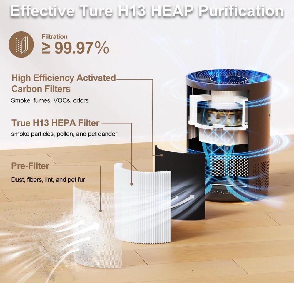 $ 63.36Compact H13 HEPA Air Purifier for Small Bedrooms with 3 Modes & Essential Oil Diffuser