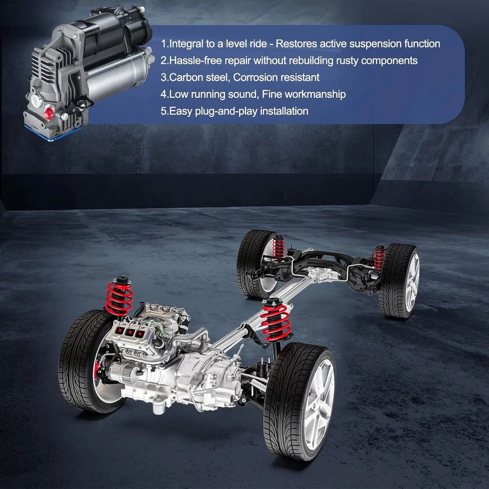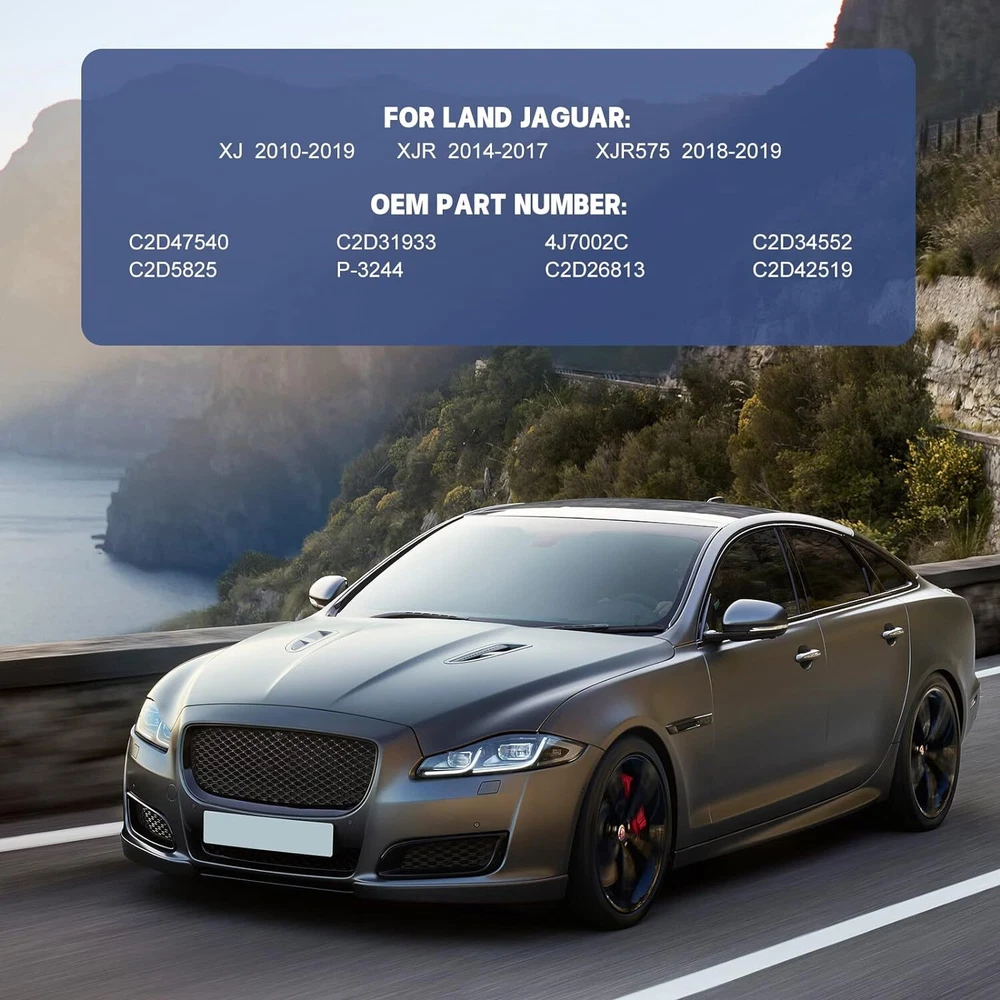 Reference OEM Number C2D5825 C2D31933 C2D26813 C2D34552 C2D42519 C2D47540 P-3244 P3244 Fits for the Following Vehicles: 2013 - 2016 Jaguar XJ Base 2010 - 2012 Jaguar XJ Base 2010 - 2011 Jaguar XJ L 2013 - 2019 Jaguar XJ L Portfolio 2012 - 2014 Jaguar XJ L Portfolio 2010 - 2019 Jaguar XJ L Supercharged 2010 - 2013 Jaguar XJ L Supersport 2013 - 2013 Jaguar XJ L Ultimate 2018 - 2019 Jaguar XJ Portfolio 2011 - 2015 Jaguar XJ Portfolio 2014 - 2015 Jaguar XJ Premium Luxury 2011 - 2012 Jaguar XJ Premium Luxury 2016 - 2019 Jaguar XJ R-Sport 2010 - 2019 Jaguar XJ Supercharged 2010 - 2013 Jaguar XJ Supersport 2019 - 2019 Jaguar XJ XJ50 2019 - 2019 Jaguar XJ XJ50 2014 - 2017 Jaguar XJR Base 2014 - 2017 Jaguar XJR L 2018 - 2019 Jaguar XJR575 Base Installation Instructions: 1. Disconnect ground cable of battery. 2. Remove bottom plastic noise encapsulation at front. 3. Remove front section compartment paneling 4. Disconnect pressure line connection from Airmartic compressor unit . NOTE: If pressure line connections or pressure lines are damaged, repair Airmatic pressure line connection. 5. Disconnect intake hose from air cleaner. 6. Unscrew nuts (arrows) and remove Airmatic compressor unit. 7. Unplug electrical coupling from drain valve. 8. Unplug electrical connector 9. Transfer rubber isolators to new pump bracket. 10. Install in reverse order 11. Replace relay provided in fusebox. 12. Test Airmatic system for leaks. Attention: This Brand New after market air suspension compressor is made of high quality components Replaces the original air compressor of your car and equal the original quality Please double confirm the compatibility as well as the OEM number before purchasing. Feature: 100% Brand New and 100% fully tested. High quality standards Integrated Dampening Control Sensors Proven gas pressure technology Improves Ride & Handling, Guaranteed Exact Fit for easy installation