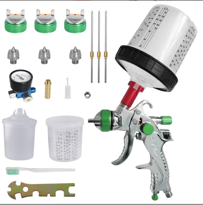 Air Spray Gun1.4/1.7/2.0mm Nozzles & Air Regulator, 2008 Paint Guns green