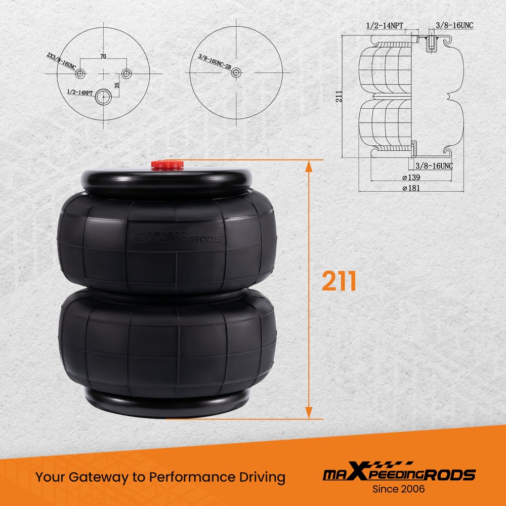 YRMAP Air Tow Assist Rear Bag Kit for GMC Sierra for Chevy Silverado 1500 1999-2006 Air Suspension Bags Kit maXpeedingrods Air Suspension Bags Kit Fitment for Chevrolet Silverado 1500 1999-2006 2WD &4WD for GMC Sierra 1500 1999-2006 2WD &4WD (Will Not Fit Trucks With Rear Sway Bar) Package Includes 2 x Standard 2500lbs Air Spring Bags 2 x Upper Bracket Mounts 2 x Lower Mounts Top Of Axle 2 x Under Axle Brackets Mounting Brackets Hardware Air Line With Fittings And Valve Features 1、Stress Test Over 5,000,000 Times:Durable and Safe 2、Burst Pressure≥2.0MPa:High Compressive Strength and Less Noise 3、24 Hours Air Tightness Test ≤ 0.02MPa:100% Air Tightness Guarantee 4、Temperature Range ≥ -40℃/ ≤ 70℃:Premium Natural Rubber Material 5、Use high-quality steel with high load-bearing capacity and long life. 6、Excellent and practical bolt-on installation. 7、Safe carrying capacity and stability 8、Restore the original ride height and improve ride quality 9、Ensure our driving comfort and reduce tire wear. Specifications Condition Brand New Internal Jounce Bumper include No Stroke 135 mm Placement on Vehicle Rear left and right Load capacity 2500LBS Material Cured Natural rubber maXpeedingrods Air Suspension Bags Kit Solves These Common Problems Other items you might also like Air Suspension Spring Bag Kit For GMC Silverado Sierra 1500 4WD 2019-24 Rear Air Suspension Spring Bag Kit 5000lbs For Dodge Ram 2500 3500 2003-2018 4WD Air Suspension Spring Kit 5000 lbs For GMC Sierra Chevrolet Silverado 1500 99-07 2x Cab Air Suspension Spring Bags for Peterbilt 379 W02-358-7036 29-03200 Rear Air Helper Spring Leveling Kit For Ford F250 F350 Super Duty 2005-2010 Air Suspension Spring Kit 5000lbs For Dodge Ram 1500 4 Wheel Drive 2019-24 Air Suspension Spring Kit For GMC Sierra 1500 Chevrolet 1500 4WD 2019-2024 Rear Air Spring Leveling Kit for Ford F250 F350 Super Duty Pickup 4WD RWD 99-07 Pair Rear Air Ride Suspension Shock for Chevrolet GMC Cadillac Escalade 25979393 Air Spring Bag Tow Assist Rear 5000lbs For GMC Sierra Chevrolet 1500 2007-2018 Air Suspension Spring Bag Kit Rear For F250 F350 Super Duty 2WD 4WD 2011-2016 Air Suspension Bag Kit 7500 lbs For Ford F250 F350 F450 Super Duty 4WD 2017-22 Shipping Terms of Sales Payment Contact us All orders will be shipped within 1 business day after payment has been processed. For orders placed before 5:30 AM PST on business days, most items will be shipped out on the same day. All orders will be shipped with a tracking number via USPS, UPS, or FedEx Express and delivered within 2-6 business days We do not ship to P.O. Boxes, APO/FPO addresses, or Military Mail Boxes. Please ensure your address is confirmed by PayPal before checkout, as we only ship to confirmed addresses. 30-day free return and money back guarantee If you are not satisfied with your purchase, you can return the item with its original packaging to us for a full refund with no restocking fee. Please note that the return cost should be paid by the seller. One Year Unlimited Mileage Quality Guarantee If you receive incorrect items, items that are damaged during transportation, or defective items, we will accept returns and cover the return freight. Please note that the return cost should be prepaid by the buyer. After inspecting the faulty item, we will issue a refund of the return cost to the buyer. We offer a full refund or replacement for all faulty items, which includes the cost of original shipping. Please contact us before initiating a return. Our representatives will provide you with detailed instructions on how to proceed. Our guarantee covers only the cost of the item. We are not responsible for installation or other fees, such as labor, towing, additional repairs, or related expenses. We only accept payment through Paypal for all orders, which should be made through eBay. Paypal offers various payment methods, including credit card, direct debit, VISA, and others. For more information, please visit Paypal. Our customer service center is open 24 hours a day, seven days a week. If you have any questions, please don't hesitate to contact us. We are dedicated to providing excellent customer service and will do everything we can to ensure your satisfaction.