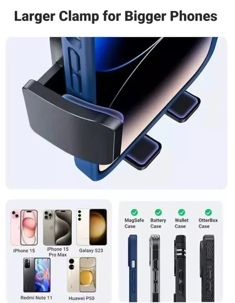 Car Vent Phone Holder - [2024 Spring Clip] Quick Release Car Phone Mount with Metal Hook, Universal Air Vent Cradle for iPhone16 15 14 13 12 11 Pro Max Plus Mini Xs, Samsung S24, 4-7” Phone 【Quick Install Device】 Thanks to a marketing unique and innovative spring mechanism, the metal hook can be quickly extended and installed directly on the vent by simply pulling inwards, instead of other products tediously slow screwing in. Finally, the car phone mount can be locked perfectly with a single twist. 【Sturdy Metal Hook】 Lamicall 2024 Upgraded phone mount for car vent clip adopts stable Strong Elastic Hook. Compared with clip and plastic hook, this metal hook can catch strip blade of air vents ❗❗(not fits round vents) more firmly, ensuring the phone keeping steady even on turns, potholes, speed bumps and bumpy roads. Gives you more peace of mind when driving. 【Airbag Rubber Pad】 The innovative airbag silicone pads on both sides of the arms deform when they come into contact with the phone, thus clamping it tightly. Together with the anti-slip pads on the support plate and the feet, it not only increases the grip of the phone to ensure safe driving, but also effectively protects the phone from knocks and scratches. 【Translucent Design】 The delicate semi-transparent design of the support plate and compact structure make the vent phone holder a stylish decoration in the car. It can be released in 1 second by pressing the yellow button on the back, making it easy to insert and remove the phone with one hand. The flexible 360 rotation allows you to choose the best viewing angle. 【Wide Compatibility】 This phone holder for car fits all 4-7 inches mobile phones even with thick case cover. Compatible for iPhone 16, 16 Plus, 16 Pro, 16 Pro Max, iPhone 15, 15 Plus, 15 Pro, 15 Pro Max, iPhone 14 Pro Max, iPhone 14 Pro, iPhone 14 Plus, iPhone 14, iPhone 13 Pro Max, 13 Pro, 13, 13mini, 12 11 X XR XS Pro Max Mini, 8 7 7s 6 6s Plus SE SE2, android devices, Galaxy S24, S24 Ultra, S23, S23 Ultra, S23+, S22, S22 Ultra, S21 Ultra S21 S20 S10 S9 S8 A72 A71 A52 A51, more telephones.
