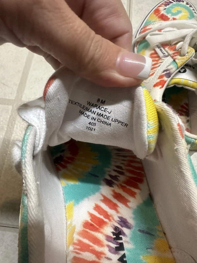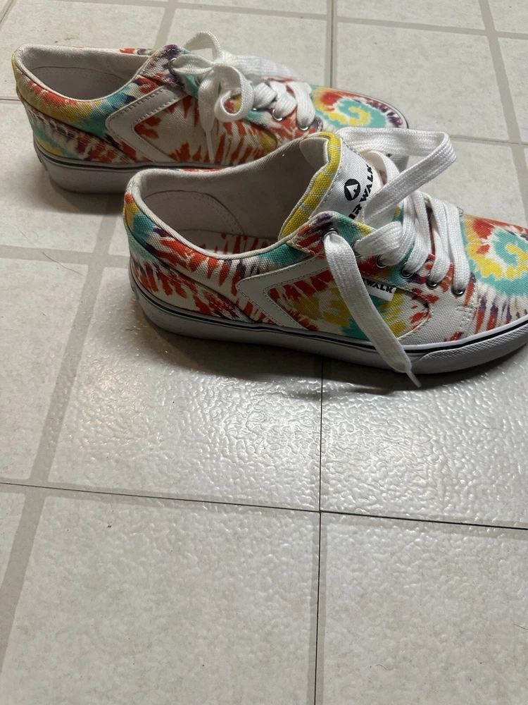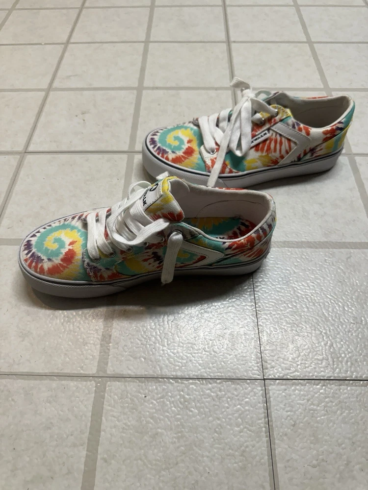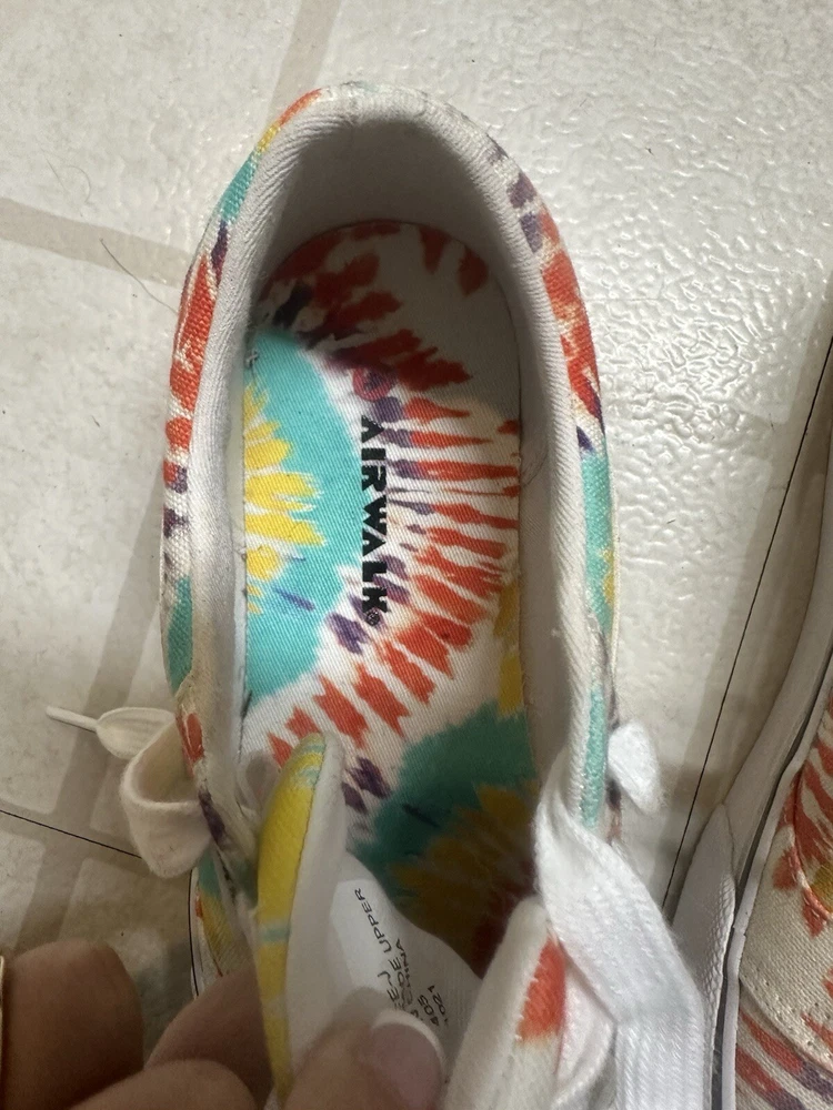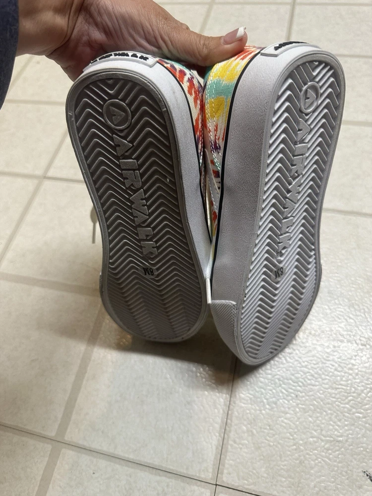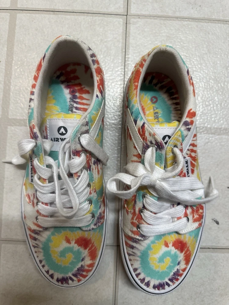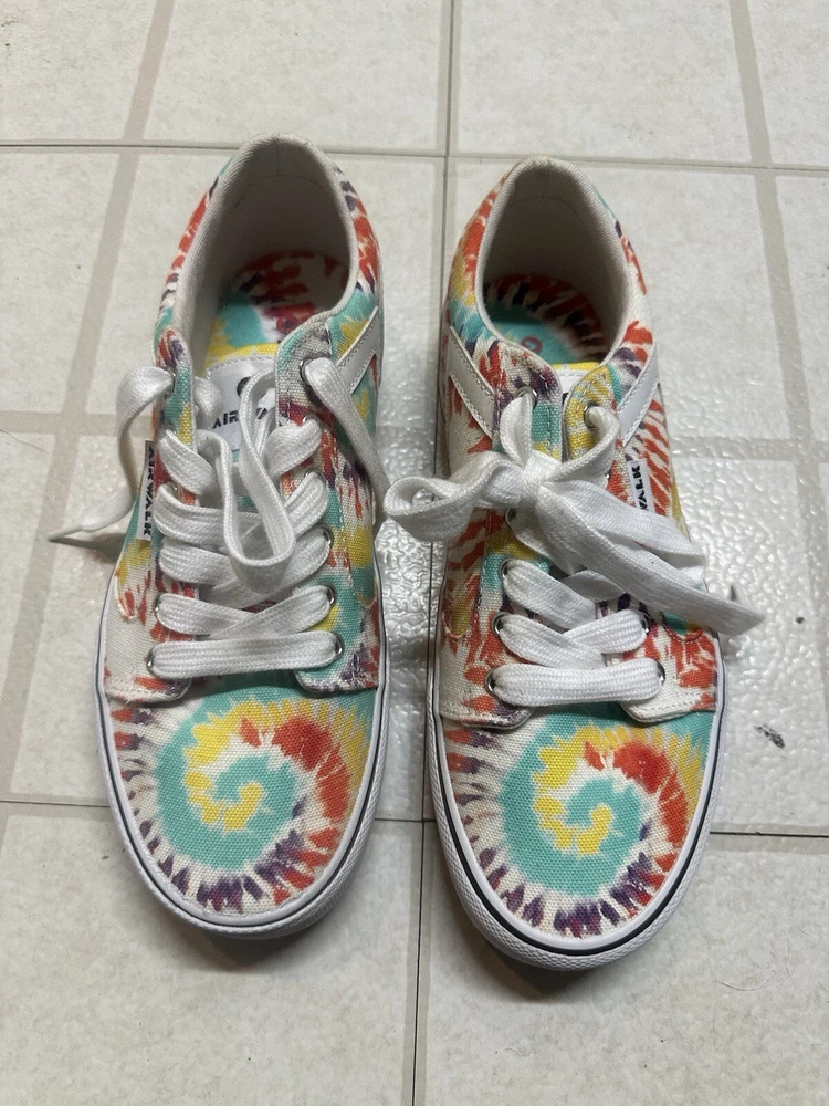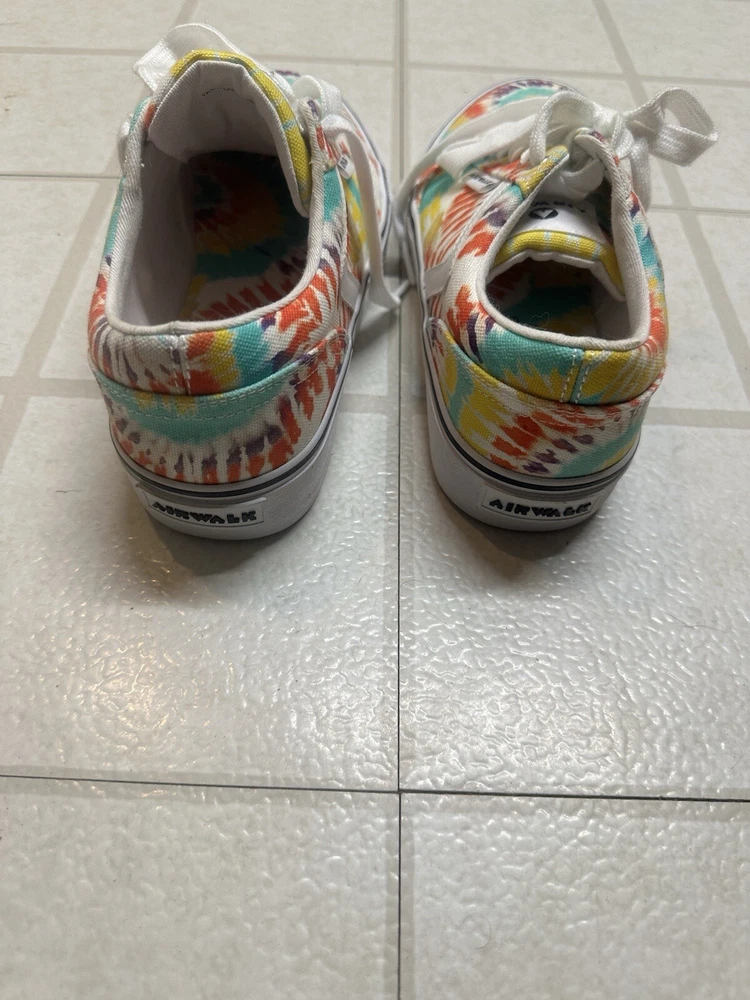Elevate your style and comfort with these Air Walk Women's Tie Dye Low Top Sneakers in size 8 M. The trendy tie-dye pattern and lace-up closure add a touch of personalization to these athletic shoes. The canvas upper material and rubber outsole provide durability and breathability, making them perfect for walking and other activities. These sneakers are designed with a fabric lining and foam insole for added comfort. They are not vintage and have not been customized. The Air Walk brand is known for its quality and performance, and this model, Kaharley J, is no exception. Made in China, these sneakers are perfect for women who want to combine fashion and function.
