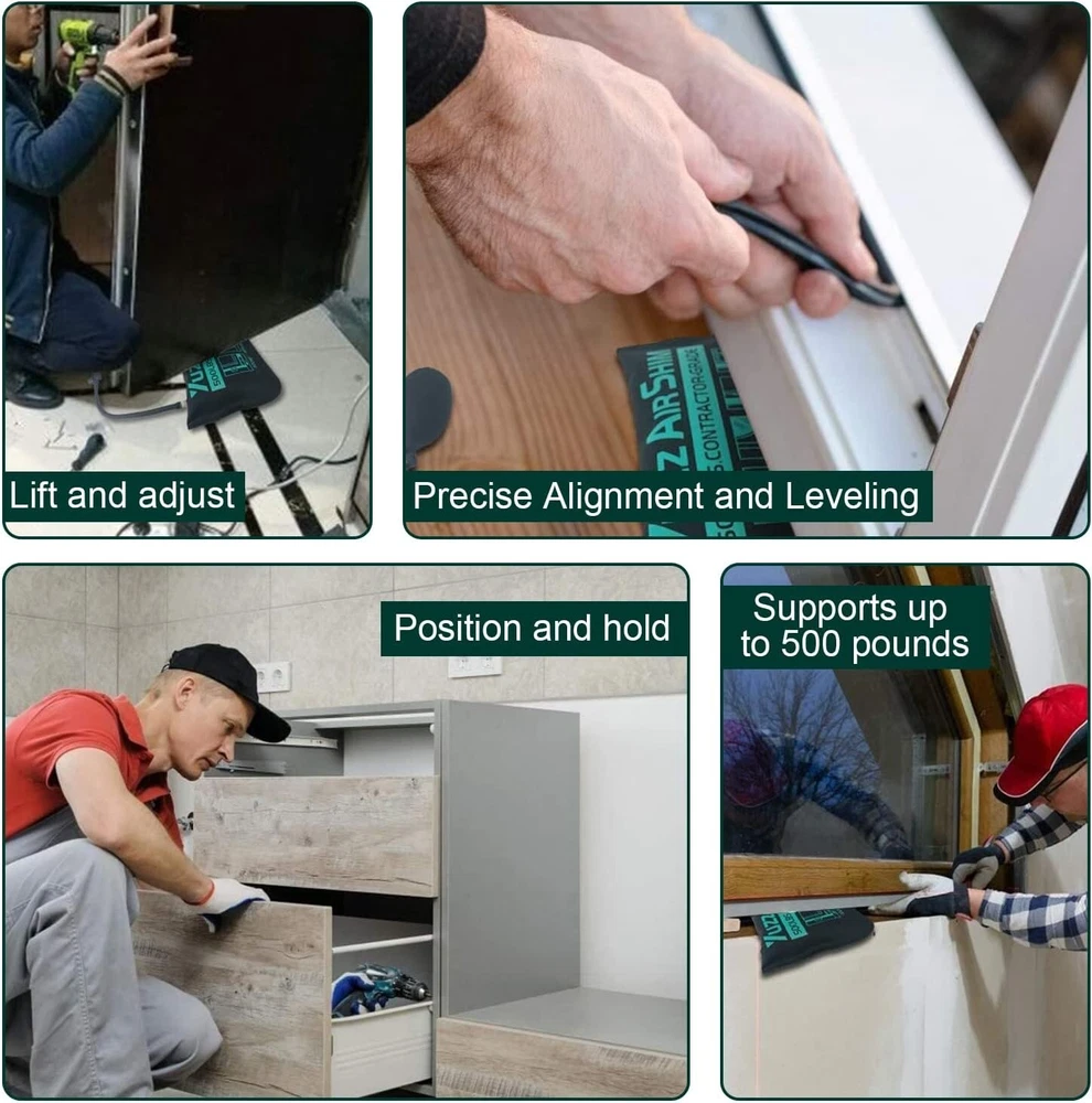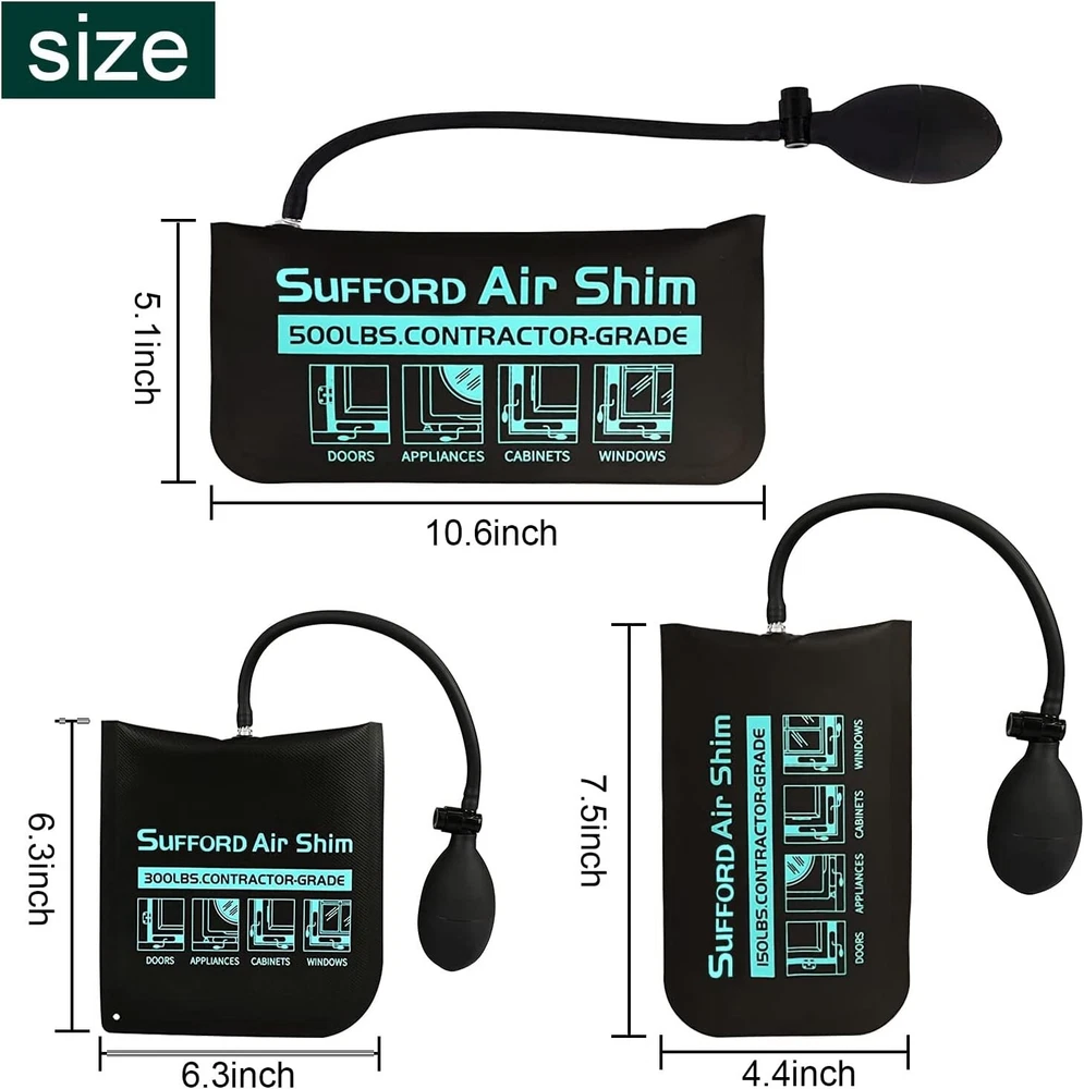 Air Wedge Bag Pump Kit Inflatable Leveling Tool For Window Door Alignment 300LB Work done by many people may only need one person to finish. Our inflatable lifting bag, 2 sizes, are Great for multiple jobs, including holding in place and leveling window frames, door frames,countertops, cabinetry, furniture and more! The inflatable air bag come with easy carry storage bag & 3 Piece free auxiliary tools. Our air wedge bag fit into tight 2/32 inch gaps and opens to 3 1/2 inches wide with one hand pump operation. Quick easy push button for precise leveling with one hand. 300 LB load rating↑ Quicker and easier release push button↑ Interior side TUP durable material PP board insertion↑ Exterior side 840D Nylon material↑ Durable, precise leveling The rounded corners, stiff durable edges, smooth exterior and INTERNAL STIFFENER make it easier to insert, The inflatable jack won’t fold under pressure; Unlike other tools or wood wedge, car air wedge bag will not damage or wear the surface of the object during use. , no-scuff cover leaves no marks. Nice Tool. Return Policy: We offer a 30 day return policy from the receiving date. Please contact us for a Free Return Label. Please use our return label so it will go back to our supplier and we can do a refund or replacement afterwards. Feedback: Your satisfaction is very important to us! If you have any problem with your order, please contact us and we will do our very best to make you satisfied. As long as you are happy with your purchase, please leave a positive feedback for us. We will always leave you a positive feedback in return. If you have any problem with your purchase, please do not leave a negative feedback. Please Contact us ... and your issue will be solved quickly and positively We are a small family-owned business trying to make a living, not a huge company that does not care ... We will ALWAYS do our best for you!
