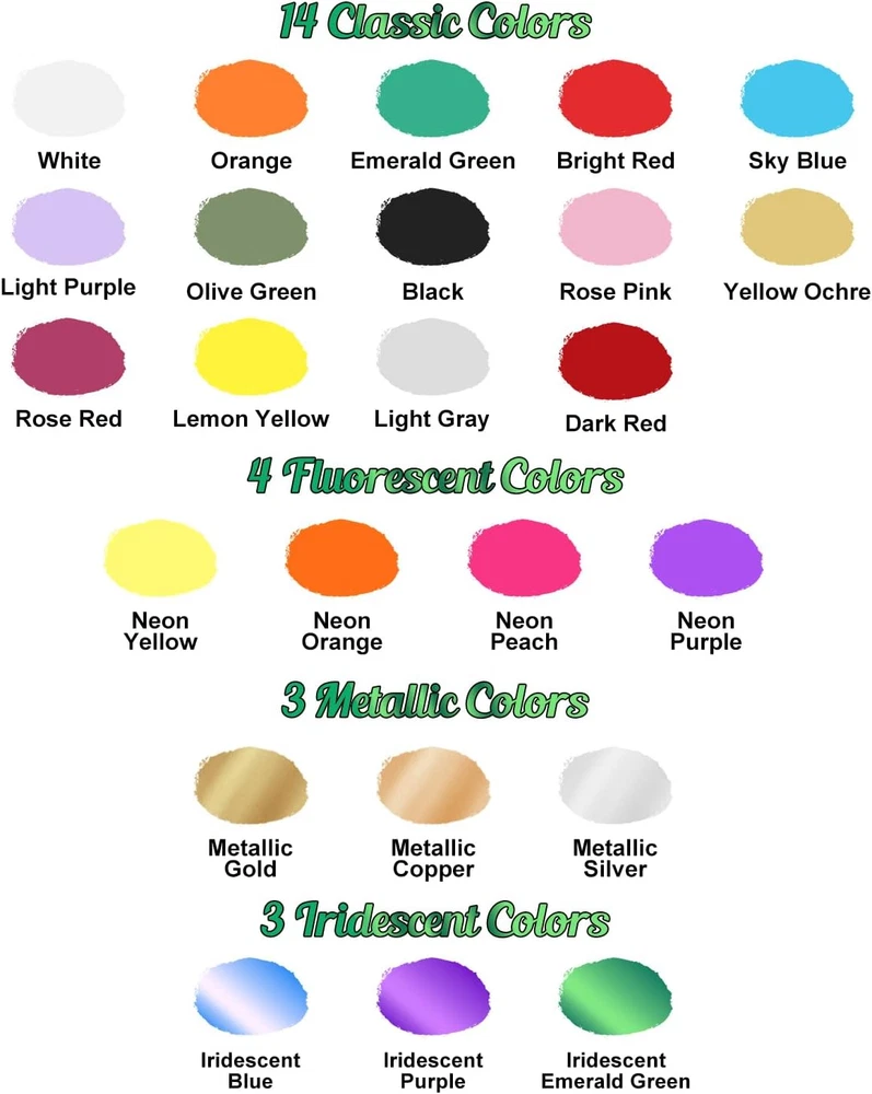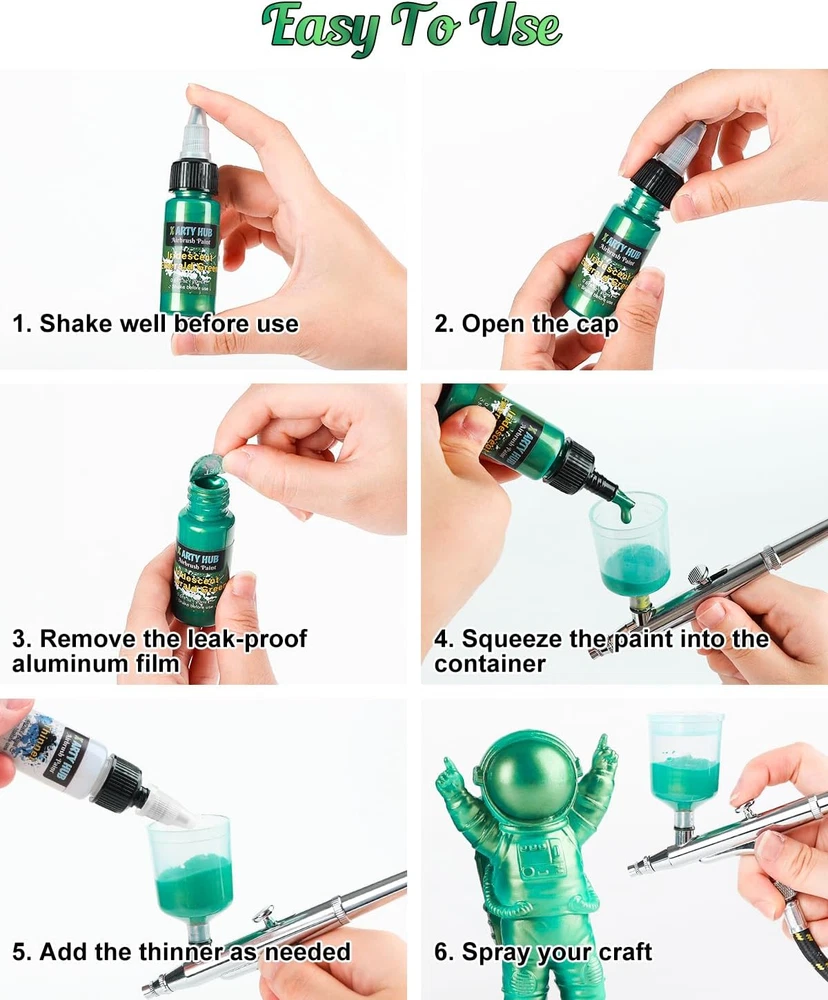 Store New Arrivals Add to Favorite View Feedback Contact Fast deliveries to the customer's home Quality customer service John Make the customers happy! Airbrush Paint - 24 Colors with 2.03 Fl Oz Thinner, Iridescent, Neon and Metallic Air Brush Paints Acrylic Ready to Spray, Water-Based Painting Set for Artists Beginners Description Variety Color with Thinner: X ARTY HUB offers a wide range of options with 27 bottles airbrush paint set, including 14 vivid common colors, 4 fluorescent colors, 3 metallic colors, and 3 iridescent colors, each bottle contains 0.67 fl.oz of paint. You'll also receive 3 pcs / 2.03 fl oz airbrush thinners, you'll have the perfect palette for your artistic creations Ready to Spray: Our air brush paint are formulated for easy spraying. They have excellent flow characteristics and proper ratios, ensuring compatibility with your airbrush. Achieve smooth, consistent results without worrying about clogging. The included airbrush thinners improve color flow through small airbrushes, and allow for precise detailing Water-Based Acrylic Paint: Our airbrush painting set is water-based and dries to a waterproof finish, ensuring long-lasting results. Cleaning up is a breeze with just water and soap when color not dry. The water-based formula also helps minimize paint accumulation. Keep your airbrush nozzle clean before and after use to prolong its lifespan Wide Application: Our acrylic airbrush paint is suitable for artists, beginners, and students alike. It delivers permanent results on various surfaces, including paper, shoes, canvas, wood, fabric, leather, plastic, metal, ceramics, models, and more. Explore endless possibilities with our versatile airbrush paint set Usage Tips: It's normal for the paint to have slight sedimentation. Remember to shake the paint well before use to ensure a consistent texture. To achieve the desired consistency, add 1-2 drops of the included thinner to 10 drops of paint if the air flow of the compressor is below 20 L/min. After use, tightly close the bottles to prevent drying Product Description Item model number XAP27-NA Part Number XAP27-NA Batteries Required? No Finish Metallic Item Package Quantity 1 Color 24 colors with 2.03 fl oz thinner Product Dimensions 0.95 x 0.95 x 3.63 inches Country of Origin China Warranty Description 12 Months Item Weight 2.01 pounds Special Features Non Toxic Size 18.11 Fl Oz (Pack of 1) ABOUT US We offer the best prices around on high quality products. Our E-store includes media such as books, movies, music and games while offering electronics, toys, sporting apparel, clothing, tools, general home, garden items and more. SHIPPING We are always working hard to ensure your package arrives as soon as possible. Please understand that some factors like weather, high postal traffic, and the performance of shipping companies are outside of our control. We offer free shipping to the lower 48 states and ship within 2 business days of payment, usually sooner. We do not accept P.O. Boxes. Please provide a physical address. For shipping outside of the continental USA, we only use eBay's Global Shipping Program. The item is shipped to KY and then sent to the rest of the world. International customers are responsible for all duties and taxes. Continue to 'check out' to calculate costs for shipping the item to your country. Messages regarding eBay's Global Shipping Program MUST be directed at eBay EXCLUSIVELY. RETURNS We offer a 30-Day Return Policy on items in which you are not completely satisfied with. You have the option of a full-refund or an exchange of the item. No returns are available on items shipped outside of the USA PAYMENT We accept PayPal. CONTACT US This page content is yet to come Please ad us to your favorite seller and visit again later Thank You CUSTOMER SATISFACTION We try our very best to make sure every customer is completely satisfied. If there's a problem, message us! We're happy to help. WE ACCEPT
