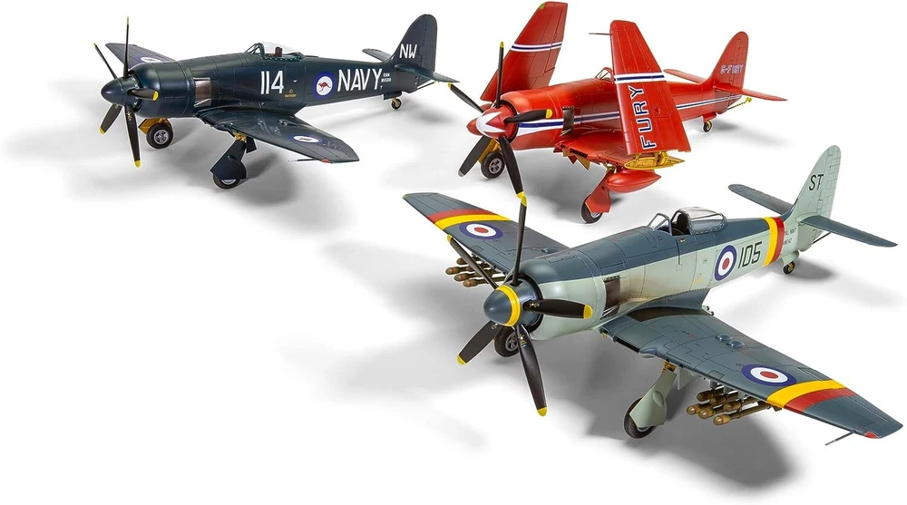 Further Details Title: Airfix Model Set - A06105A Hawker Sea Fury FB.II Model Building Kit - Plastic Model Plane Kits for Adults & Children 8+, Set Includes Sprues & Decals - 1:48 Scale Model Condition: New Type: Aircraft Brand: Airfix Color: Dark Sea Grey, Beige Green, Khaki, Traner Yellow Theme: Military Material: Keep Indoors Release Date: 06/19/2023 Language: English Age Level: 8 years and up Dimensions: 36.2 x 19.05 x 5.08 cm; 200 g Min. Number of Players: 1 Number of Pieces: 122 Item Length: 362mm Item Width: 190mm Item Height: 50mm MPN: A06105A Number of Items: 122 Character: Airplane Assembly Status: Yes Description: DESCRIPCIÓN DEL PRODUCTO Airfix Model Set, A06105A Hawker Sea Fury FB.II Model Building Kit, Kits de avión modelo de plástico para adultos y niños mayores de 8 años, el juego incluye bebederos y calcomanías, Modelo a escala 1:48. Item Weight: 200g Country/Region of Manufacture: Indien Style: Hawker Sea Fury FB.II Plane Model Kits: With Airfix's precision-engineered aircraft kits, you can effortlessly create highly detailed and authentic plane models, offering a satisfying experience in assembling and painting iconic plane replicas Hawker Sea Fury FB.II: One of the most capable piston-engine fighter aircraft ever produced and the last to enter service with Britain’s Fleet Air Arm, the Hawker Sea Fury represented the pinnacle of piston-engine fighter design. Introduced after the end of the Second World War, the Sea Fury would see combat against some of the early jet fighters during the Korean War, where it would perform extremely well Airfix Aircraft Set: Build this iconic Hawker Sea Fury FB.II model with intricate details and precise scaling, designed for beginners and advanced modellers alike. Please note that this model set does not include paint or glue which are required for assembly About this Model: Skill Level 2 (where 1 is for the beginner and 4 is for the more experienced modeller). This set has 122 Parts Total. This model set includes 1:48 Scale Model of the Hawker Sea Fury FB.11, Instruction Sheet, Paint Layout Sheet and Decals About Airfix: UK's oldest plastic model kit manufacturer since 1952, offers a diverse range of iconic aircraft models, plastic model car kits, figures, buildings, diorama kits, historical ships, vehicles, and innovative Quickbuild starter models for beginners Missing Information? Please contact us if any details are missing and where possible we will add the information to our listing.