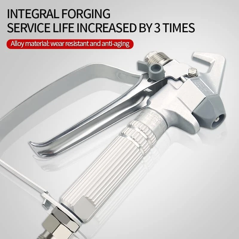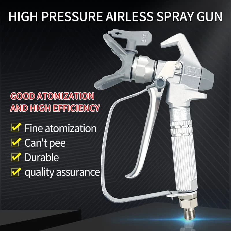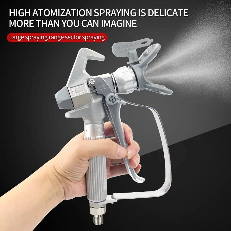 Airless Paint Spray Gun Sprayer High Pressure 3600 PSI 517 Nozzle Tip for Sprayer [No Leakage]High degree atomizing paint, spray width 10inch.Thumb engaged safety lock allows you to lock the handle when not spraying.Promise that the paint will not leak, will not drip, keep your clean working environment and better than the rest of the market [Cost-effective] Model JW-G3. The airless paint spray gun made of high quality aluminum alloy, strong wear resistance, with GDO gun needle imported from Germany.A variety of coatings including primers can be sprayed [More Professional] Industrial grade XTR high pressure airless gun. Maximum operating pressure of 3600 PSI and easily cope with various working environments [Flexible Partner] Strict and standardized quality control to maintain the best feel. Replaceable in-handle paint filter reduces tip clogging and improves the finish. Replaceable gun needle keeps maintenance simple [Security] Airless spraying is high pressure spraying. If there's a blast, it's enough to hurt people. The airless paint spray gun for 4 level safety factor, bursting pressure is 4 times of the nominal pressure, to ensure your safety