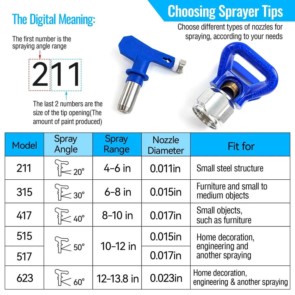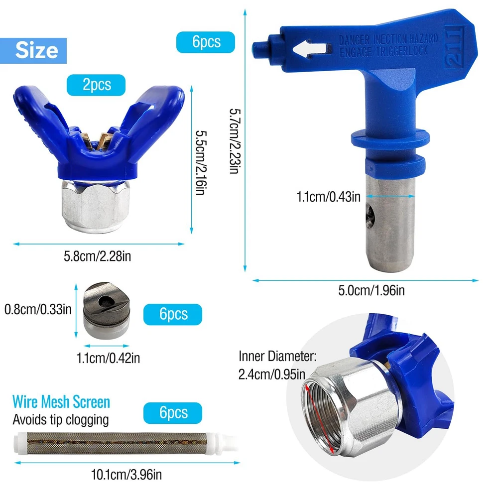 Product Description Dear Friend If your area is located in PR,HI,VI,AE,AP,AK,GU,AS,MP area, Please don't place an order. We can't ship the product to PR,HI,VI,AE,AP,AK,GU,AS,MP area. Thanks for your understanding. Sincerely! Airless spray gun accessories,Nozzle protection seat,Spray Paint Machine Parts About this item Practical: Our reversible spray paint nozzle set can be sprayed stably, the coating is uniform and delicate, which can effectively reduce the loss. It is a must-have painting accessory for painters and decorators. Model: Our airless paint sprayer has 6 models: 211, 315, 417, 515, 517, 623. The spraying angle is 20° - 60°, the range of spray width of paint sprayer gun can be seen in the 5th picture. Material: Our airless paint spray gun tip set is made of high -hardness tungsten steel. It is strong and durable, not easy to wear, and has a long service life. High precision, spray stable. Easy to use and clean: Upgrade airless paint spray nozzle can be installed quickly in a short time without using tools. After use, you only need to rotate the nozzle to clean it, which is convenient and fast. Applicable scenario: We provide you with 6 spray paint nozzles, 2 protective seats, and 6 filters. It can be used for house renovation, hull painting, car painting and other scenarios to meet your daily painting needs. You will receive 5 models of nozzles, each with a nozzle seal that prevents paint penetration. Installation steps (refer to the 7th picture) Step 1: Insert the nozzle seal into the protective base. Step 2: Insert the nozzle into the protective base and rotate it to secure it. Step 3: Attach the protective base to the air spray gun and it is ready for use. Note: After use, the nozzle can be rotated for cleaning. Payment Policy Shipping Policy Returns Policy 1. Paypal ONLY . 2. We ONLY ship to your PAYPAL verified address for more safely, so please make sure your shipping address is correct before you buy item. 3. Buyer need ship to other address (not Paypal confirmed address) should contact us before buy item. Order will be handled within 3 working days ( Excluding Weekends and Public Holidays) after your payment clear.And Your items will be delivered without tracking number,it means the delivery time takes about 1 -5 working days to reach you. please note this. We ship to Paypal confirmed address ONLY. Please make sure your address in PayPal is matched with your shipping address before you pay. Sellers are not responsible for service transit time. Transit times are provided by the carrier, exclude weekends and holidays, and may vary with package origin and destination, particularly during peak periods. Attention: Please contact us via ebay message like the way shown above before starting a returnrequest, so we can deal with your issue quickly and efficiently. 1.Return this item. 2. Select a reason: please choose"It's the wrong size or doesn't fit" 3. 30 days Warranty from the date of purchase covering manufacturing defects, but doesn't cover items that have seen abused, burned and damaged in any form.Please contact us if you have NOT received item beyond 5 working days, we will check it with post office and resend any missing item 4. If you return an item purchased from us, it must be back in Factory Condition. This includes packaging, inserts, manuals etc. Please allow up to 5 Working Days for us to process your returned item.Thanks!