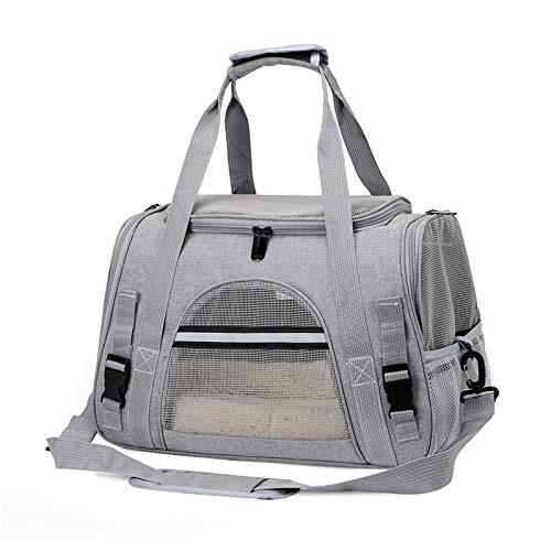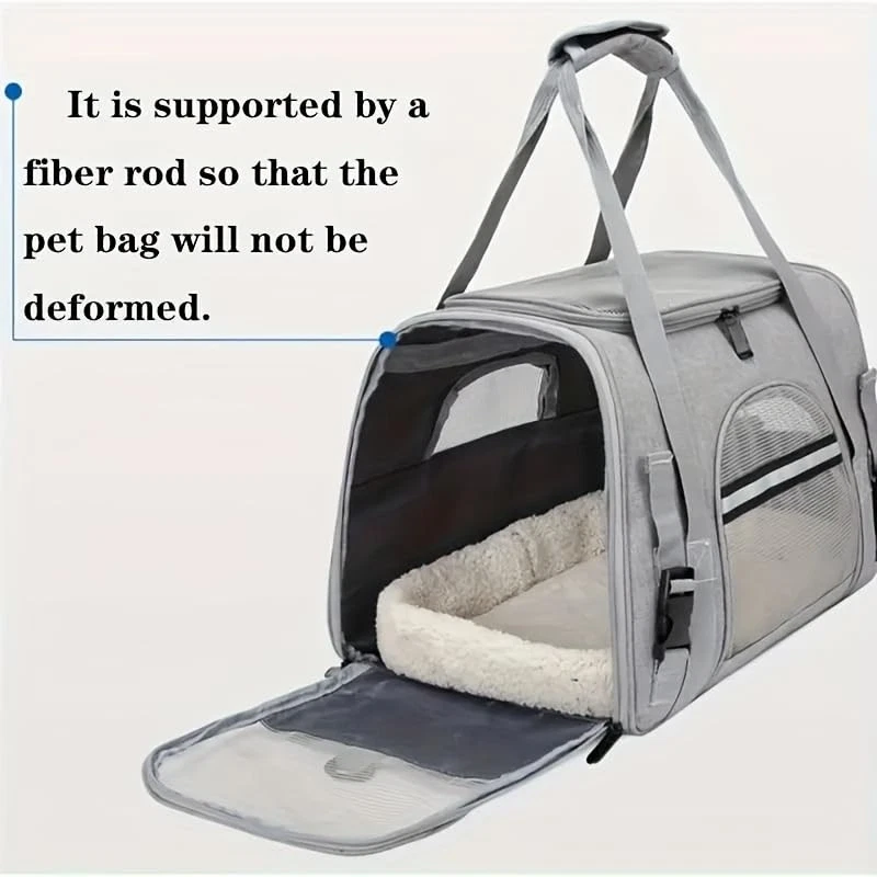 Durable & Breathable Build:Crafted from lightweight yet sturdy polyester fabric, this carrier withstands daily use. Four-sided mesh panels promote optimal airflow, providing a comfortable environment for your pet while allowing you to easily monitor their well-being. Size & Weight Guide:The medium-sized carrier accommodates small to medium pets up to 15 lbs. For the best fit, always consider your pet’s length and height—dimensions should be smaller than 15" x 9" x 9". A proper fit ensures maximum comfort and safety during travel. Ultra-Portable & Space-Saving:Effortlessly carry and store the carrier with its padded shoulder strap and handles. When not in use, it folds flat, making it perfect for small spaces or on-the-go storage. Enhanced Safety & Hands-Free Convenience:The adjustable shoulder strap allows hands-free carrying, reducing the risk of accidental drops. Ideal for busy travelers, it combines safety with convenience, keeping your pet close and secure throughout your journey. Airline-Approved & Travel-Ready:Designed to meet airline regulations, this carrier lets you take your furry friend on any adventure. Dual loop handles double as seat belt or luggage strap attachments, ensuring secure transport during flights, car rides, or train trips. 1. All-Day Comfort with Breathable Ventilation:Crafted from durable yet lightweight polyester, this pet carrier features 4-sided mesh panels for maximum airflow—keeping your pet cool, calm, and visible. Say goodbye to overheating and travel anxiety. 2. Perfect Fit for Pets Under 15 lbs:Worried if your pet will fit? This medium carrier is ideal for small pets up to 15 lbs. For maximum comfort and safety, make sure your pet's size is under 15" x 9" x 9". A great solution for cats, puppies, or rabbits on the go. 3. Foldable & Space-Saving for Daily Convenience:Tired of bulky carriers? This fold-flat design fits easily under beds or in closets when not in use. Soft handles and padded shoulder straps make every trip—from vet visits to vacations—lightweight and hassle-free. 4. Secure, Hands-Free Travel for Peace of Mind:Busy travelers will love the adjustable strap that lets you carry your pet hands-free, reducing strain and minimizing accidental drops. Travel smarter and safer with your furry friend right by your side. 5. Approved for Airlines, Ready for Every Journey:Flying with your pet? No worries—this bag meets most U.S. airline requirements. With dual handles that attach to seatbelts or luggage, it’s designed for stress-free trips by air, car, or train.